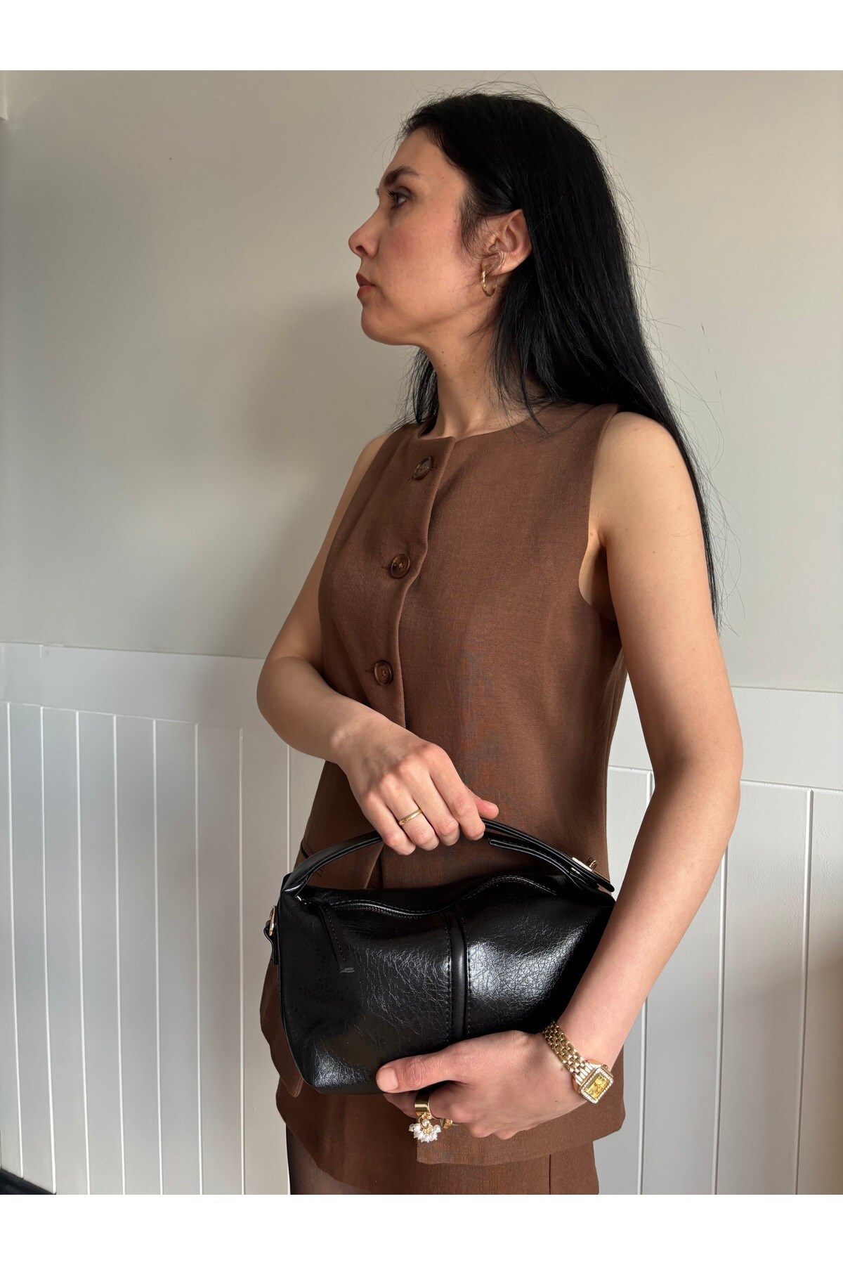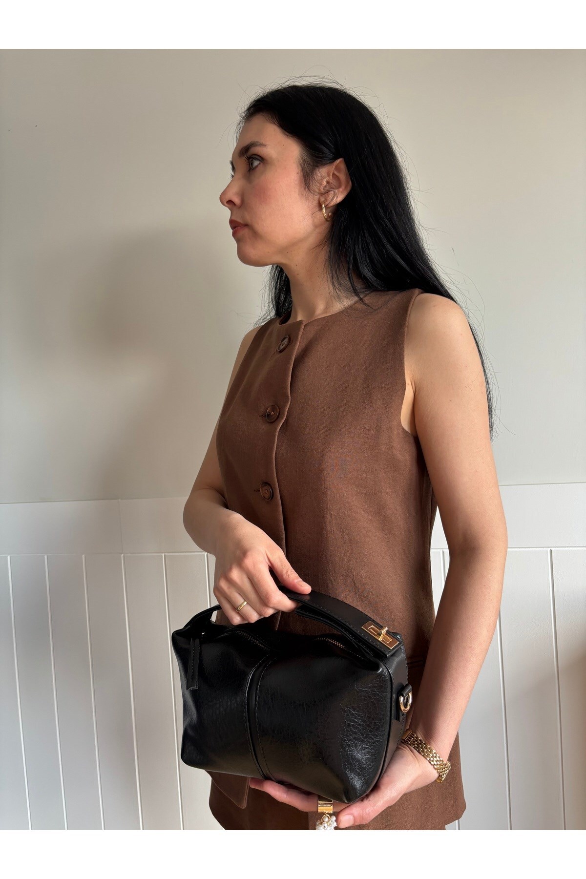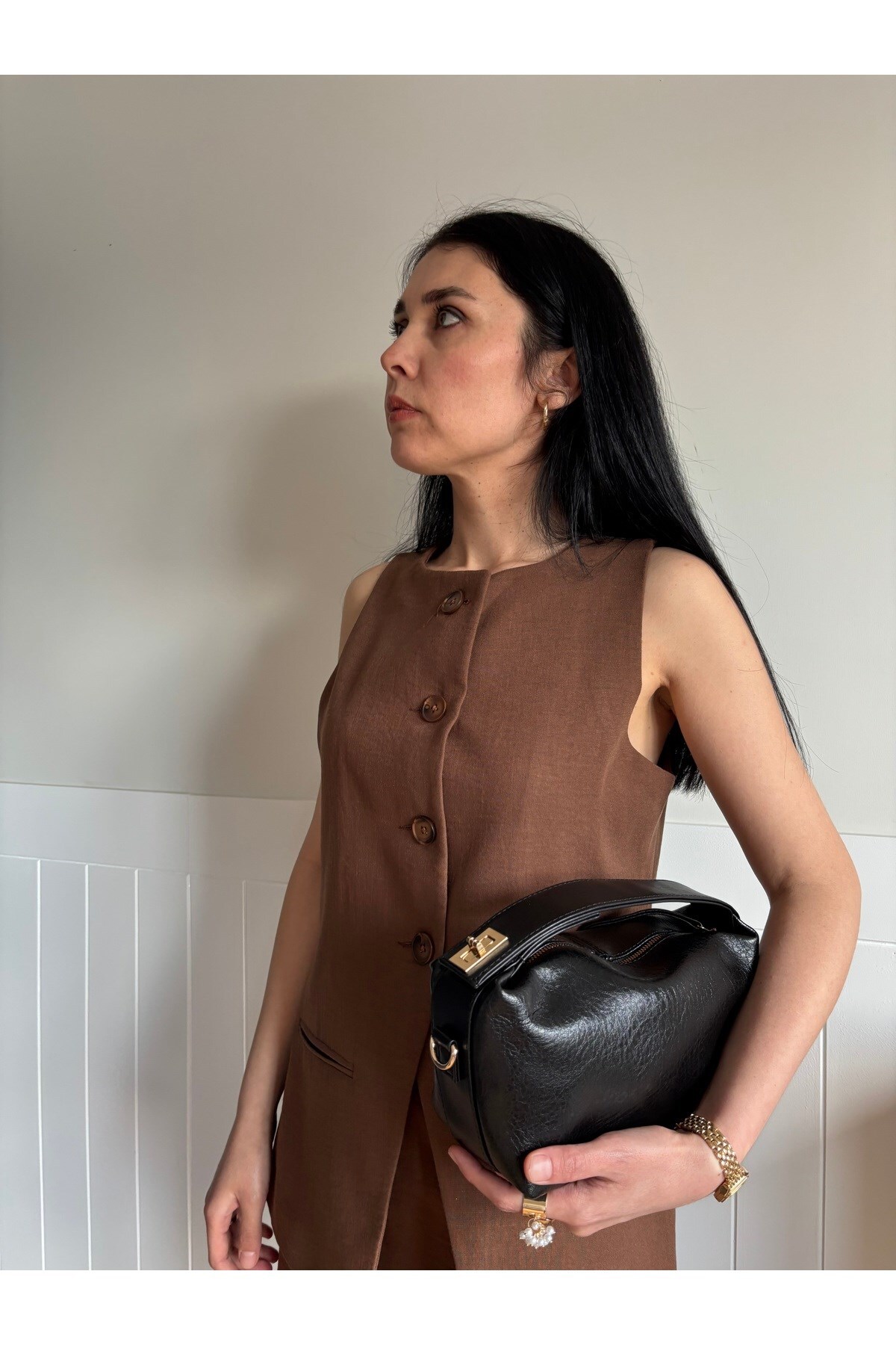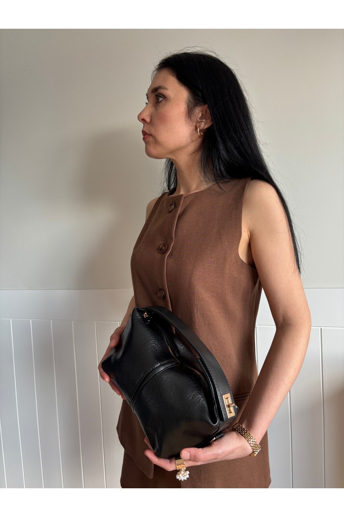 Attracting attention with its elegant design, the Lilyum model bag offers a black color option to match every outfit.