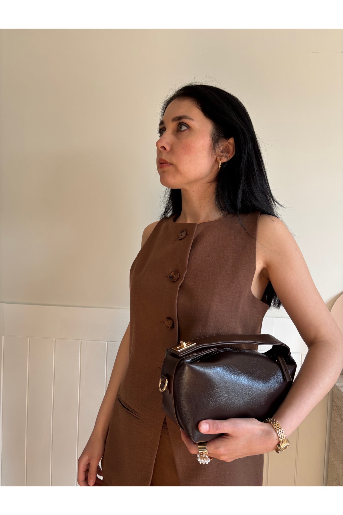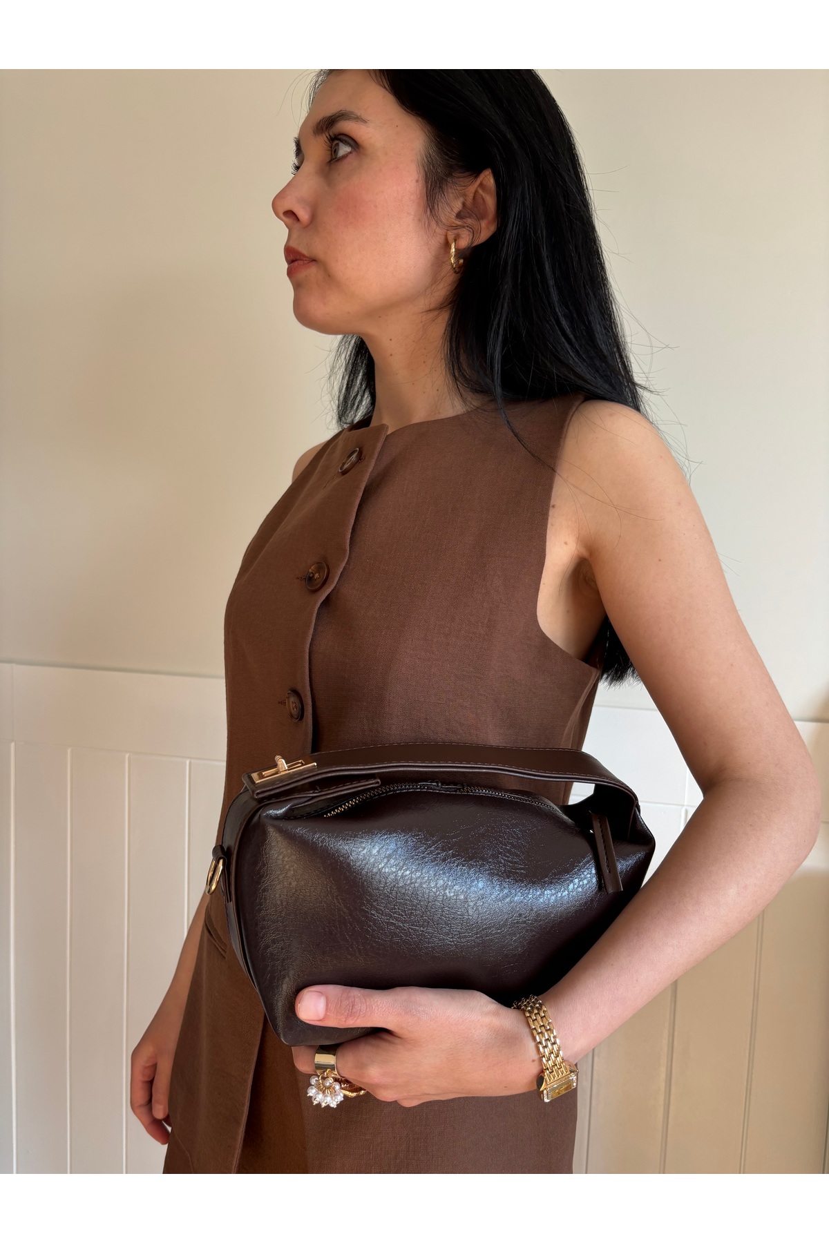 Women's shoulder bag model Lilyum, which adapts to every outfit with its elegant brown tone.