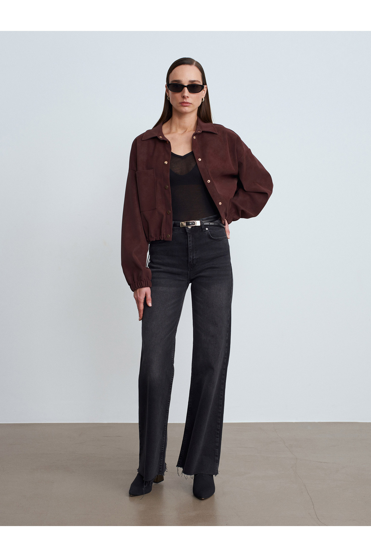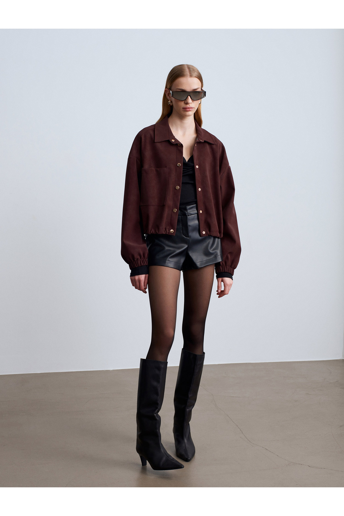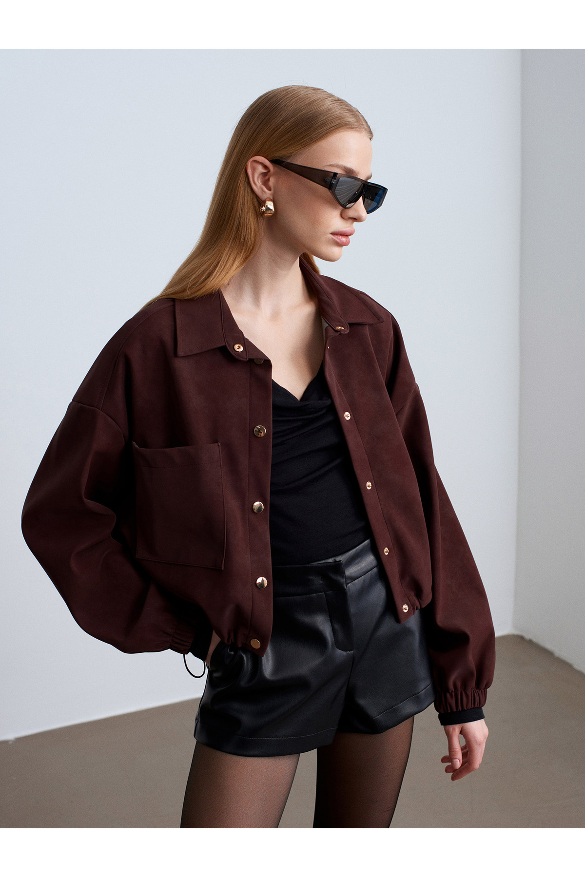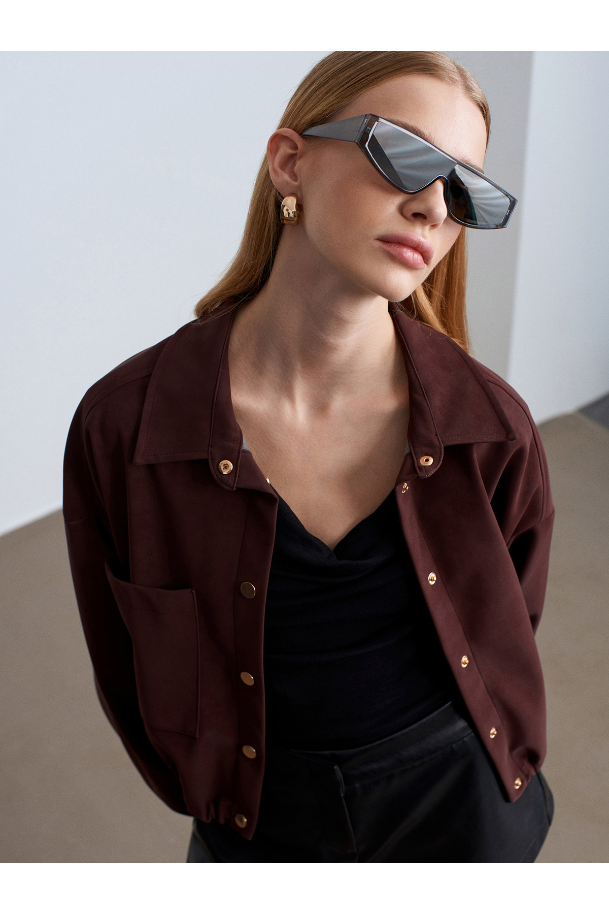 Dilvin 60781 Suede Bomber Jacket-Burgundy | ByTR