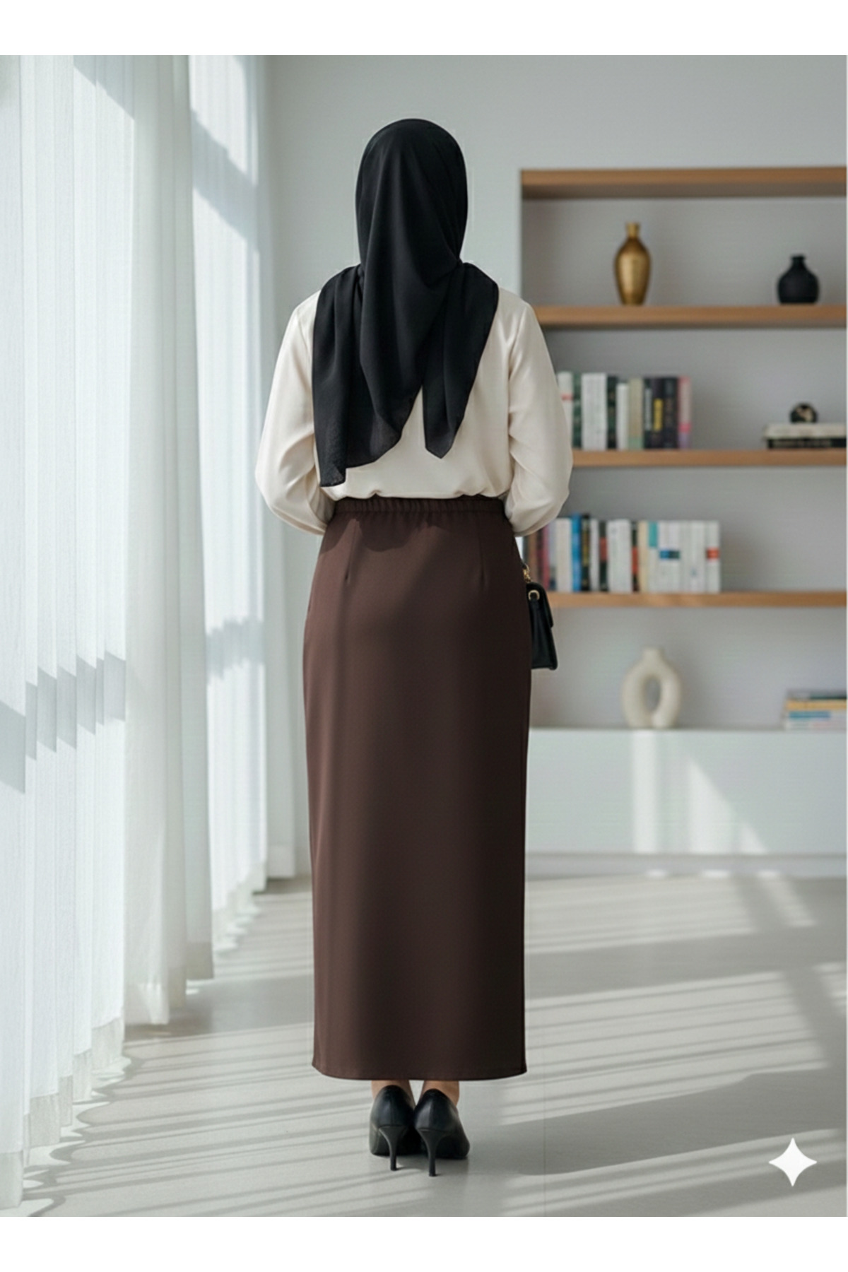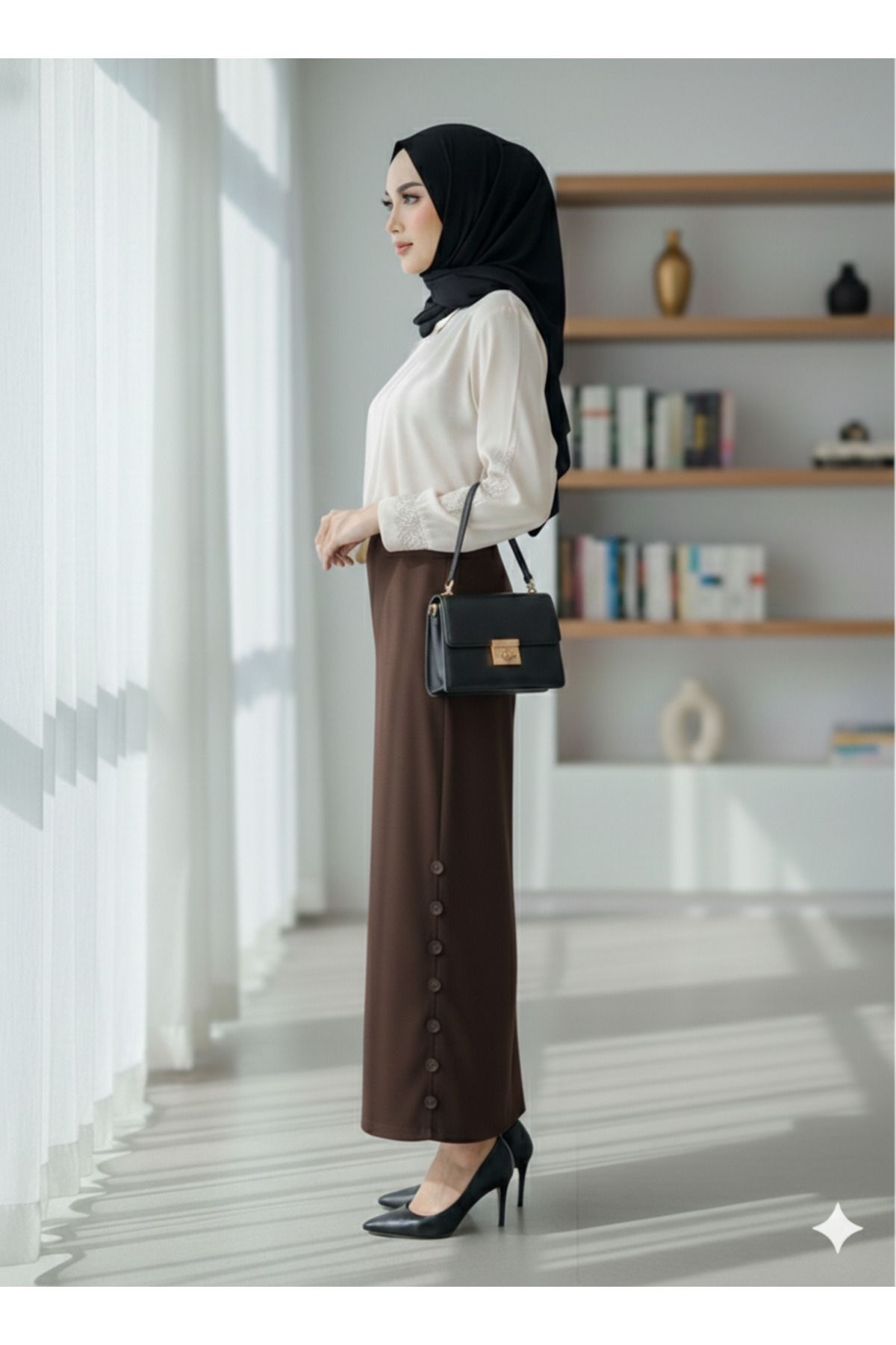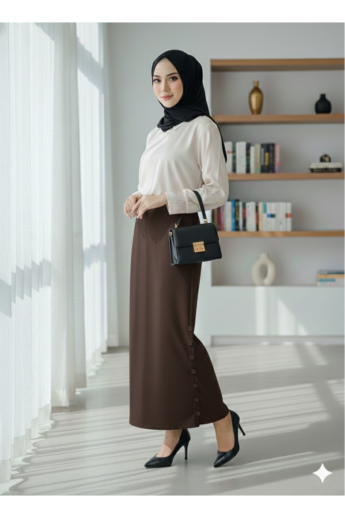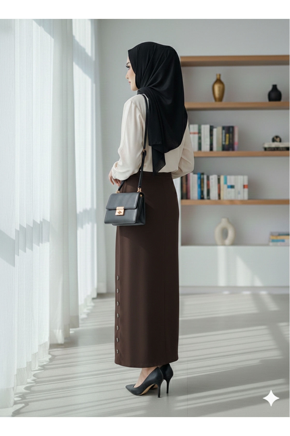Marina Trend Side Button Detailed Brown Hijab Pencil Skirt - High Waist Stylish Office Skirt | ByTR