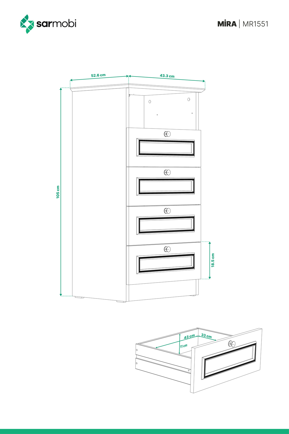 Designed in ideal sizes with a height of 105 cm, a width of 52 cm and a depth of 43 cm.