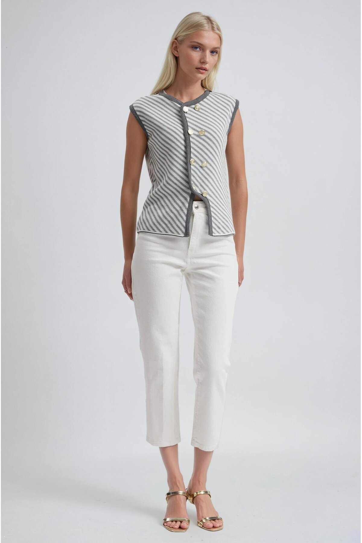 The striped pattern adds a dynamic atmosphere to your daily combinations.