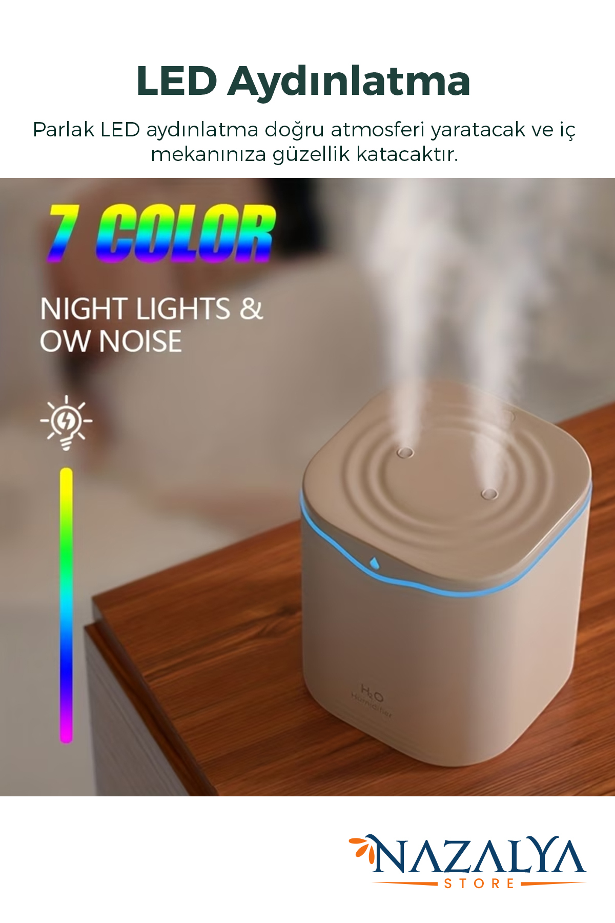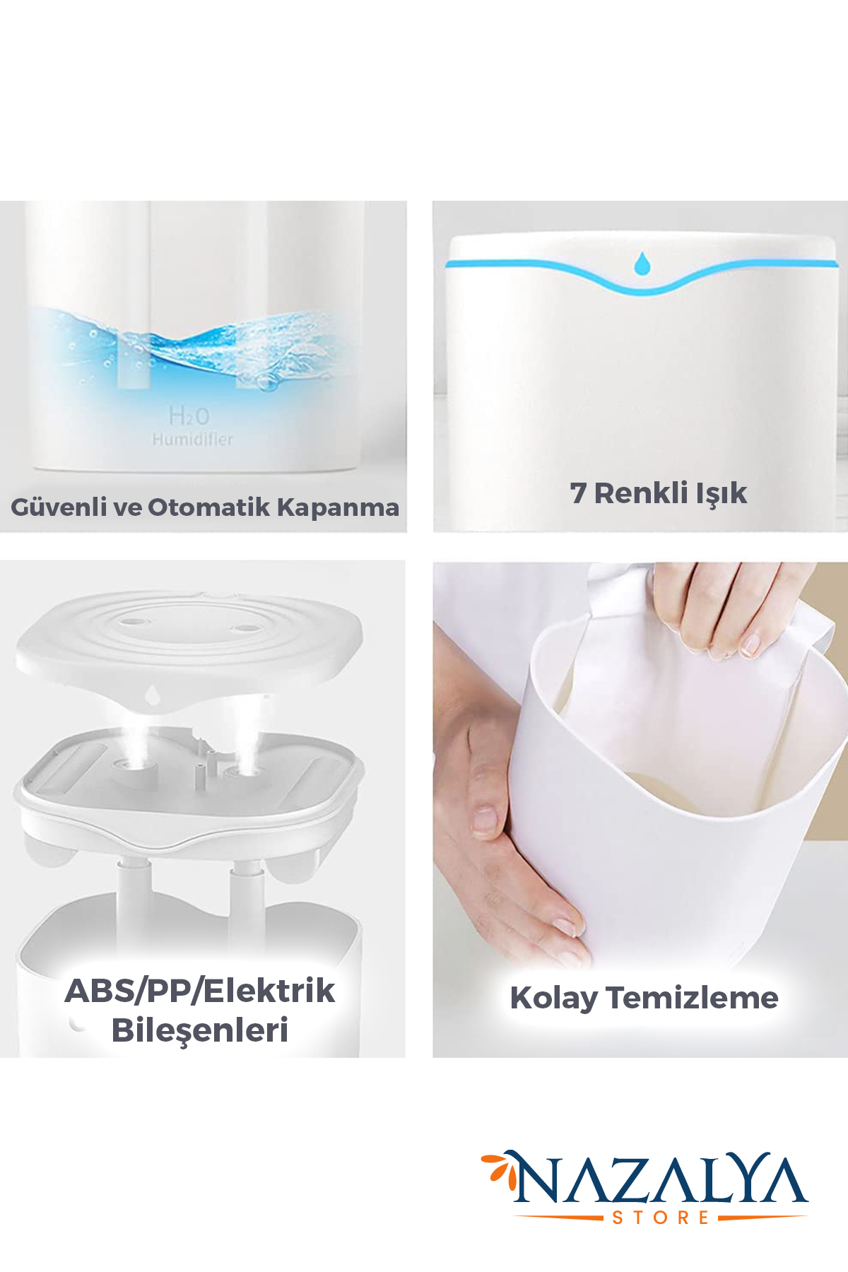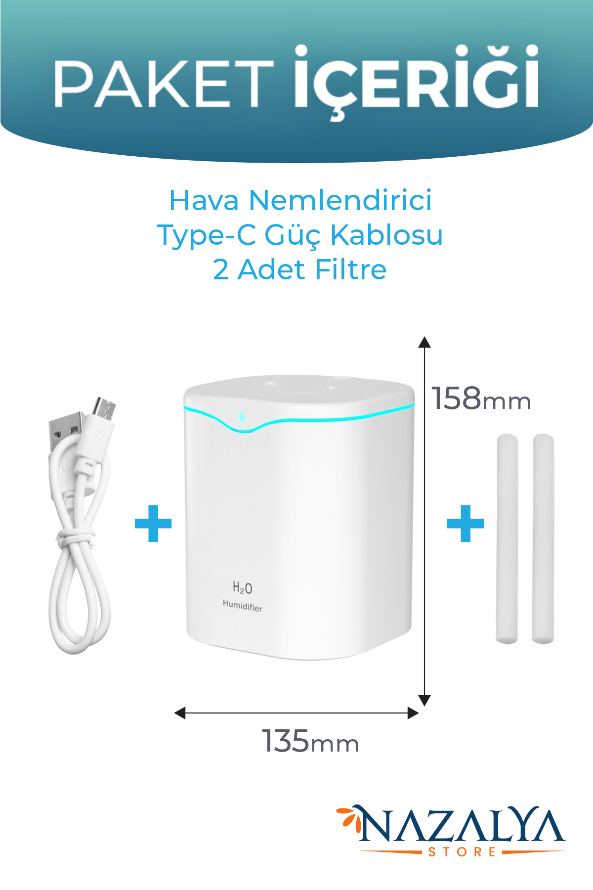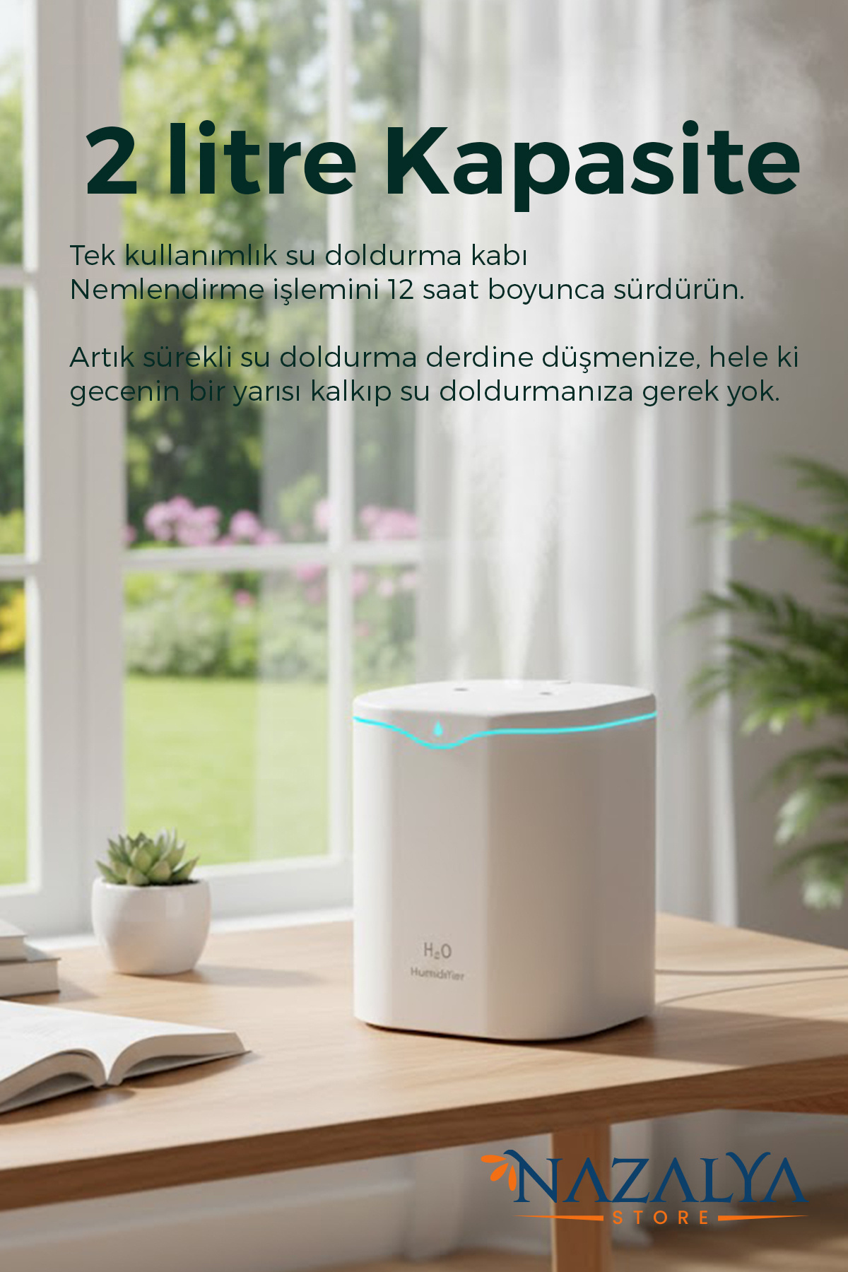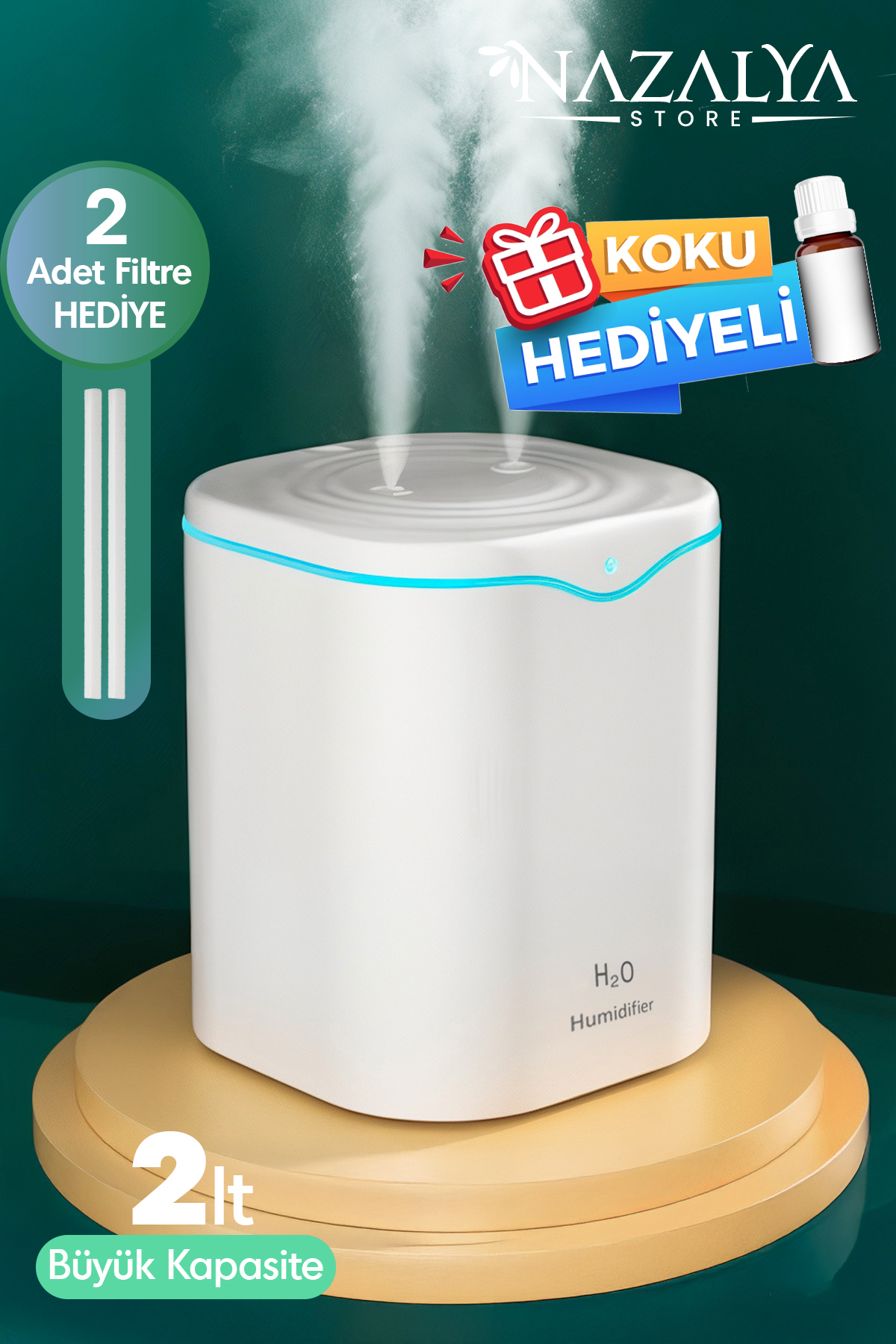 Nazalya Double Spray Ultrasonic Air Humidifier Steam Machine with 2 Liter Typ-c Inlet | ByTR