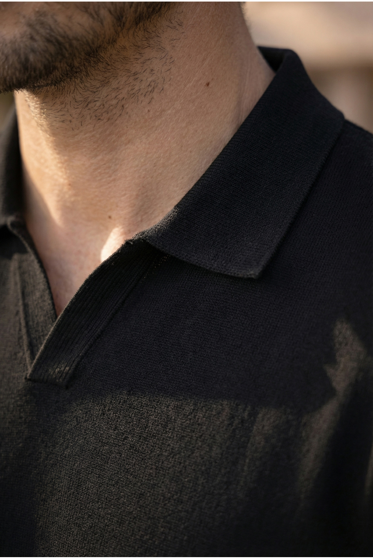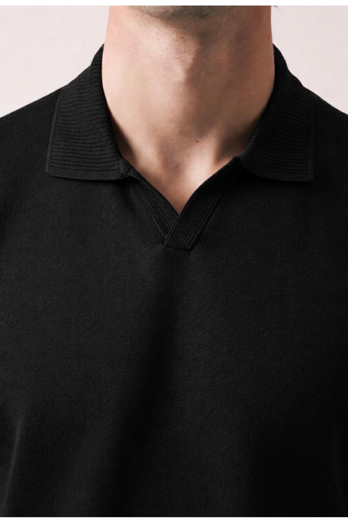 Valiberta Dawson Polo V-Neck Buttonless Short Sleeve Sleeveless Fabric Knitwear Men's T-Shirt- Black | ByTR