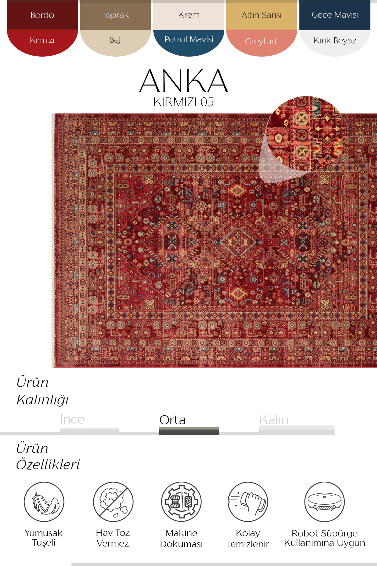 Cool Halı Phoenix Red Ethnic Pattern Colorful Vintage Soft Authentic Easy to Clean Living Room Living Room Rug | ByTR