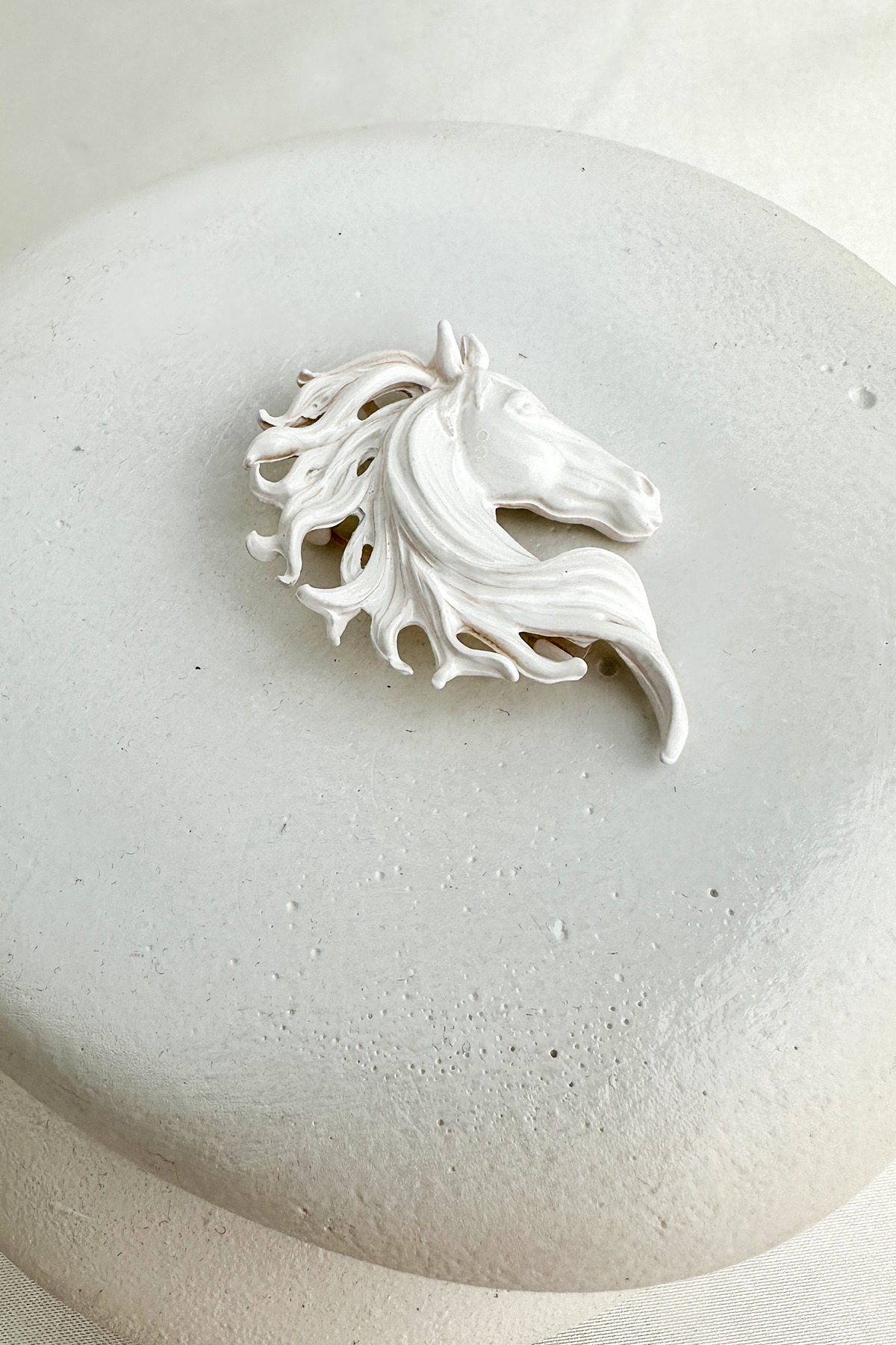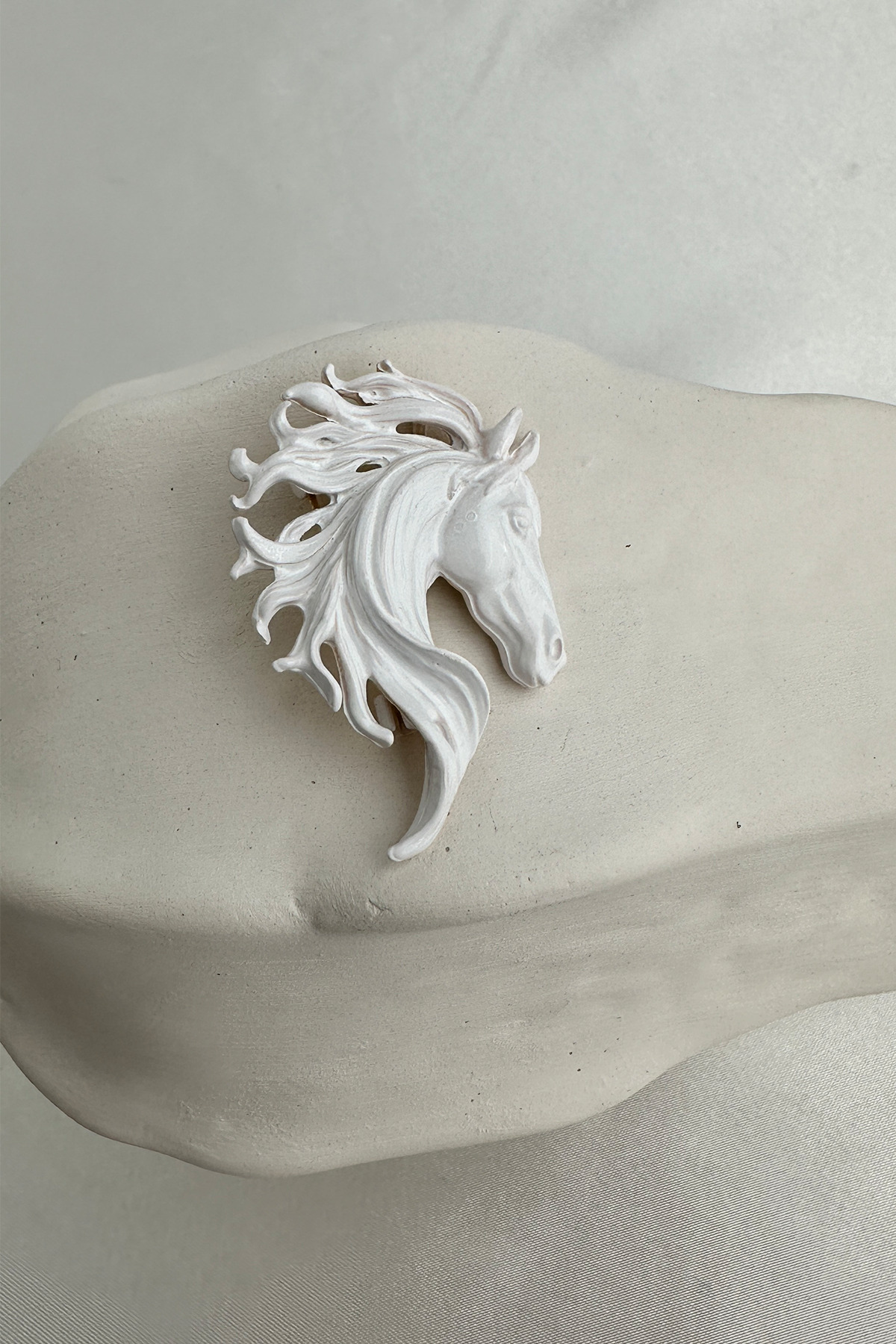 Modex White Glossy Surface Custom Design Horse Figure Brooch (5cm) | ByTR