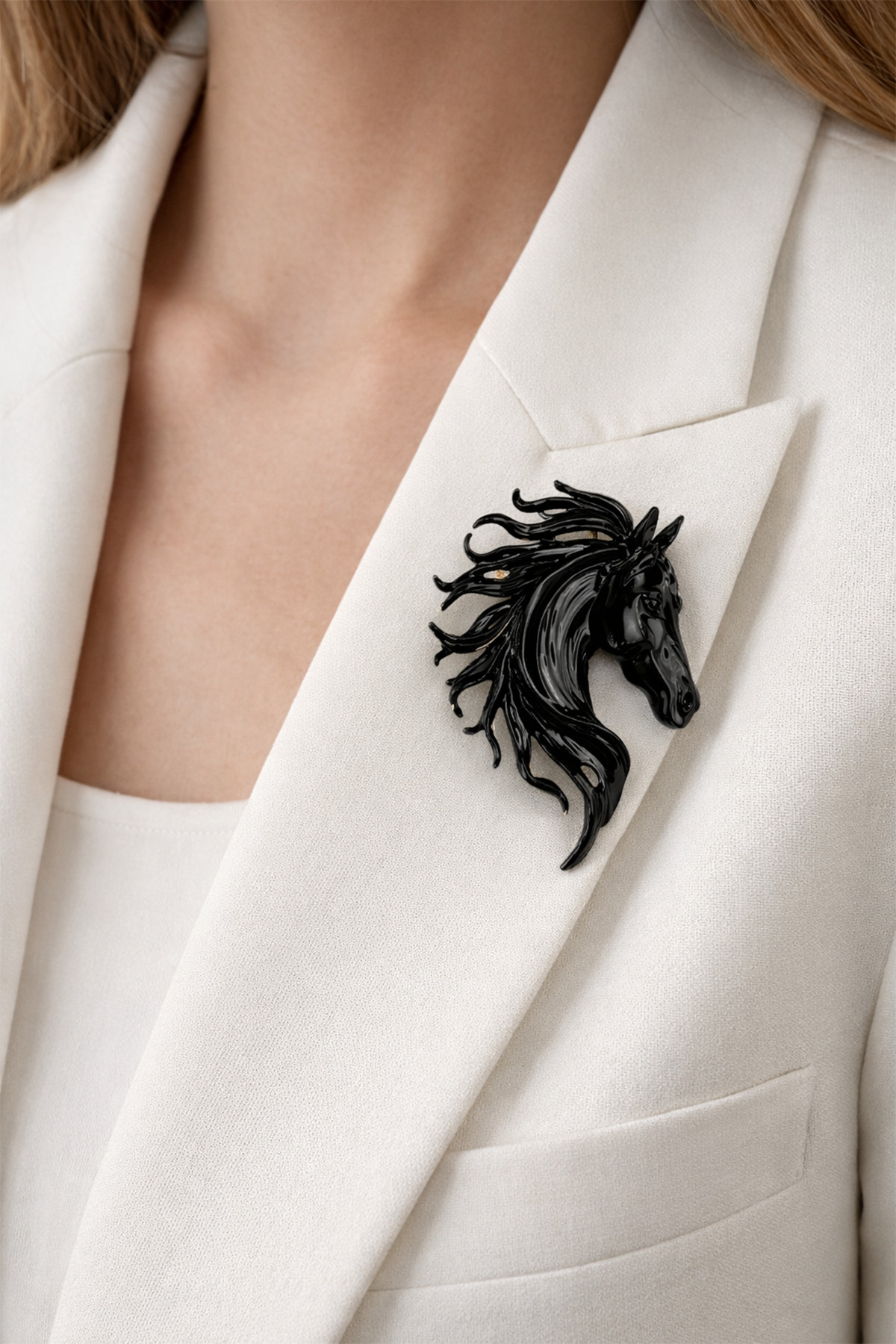 Modex Black Glossy Surface Custom Design Horse Figure Brooch (5cm) | ByTR