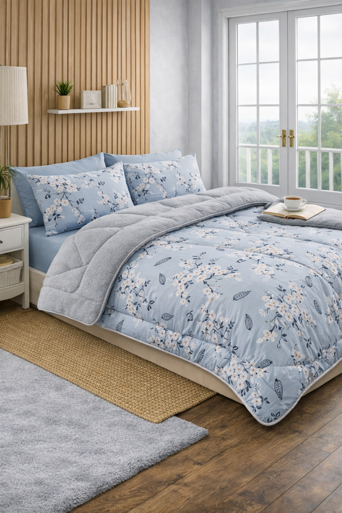 Double Welsoft Duvet Cover | 2 Pillowcases Gifted, Double-Sided - Ethnic Blue
