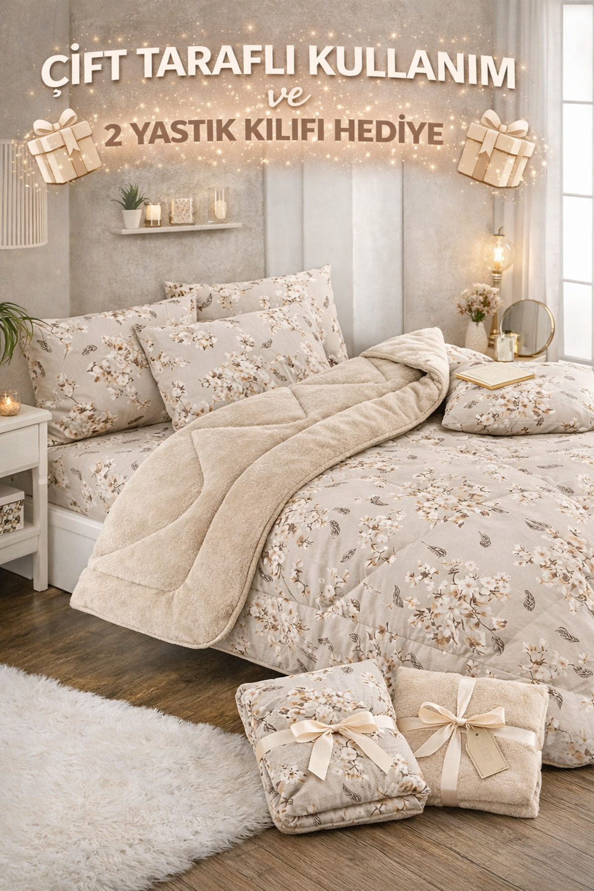 Double Welsoft Duvet Cover | Double Sided with 2 Pillowcases - Ethnic Beige