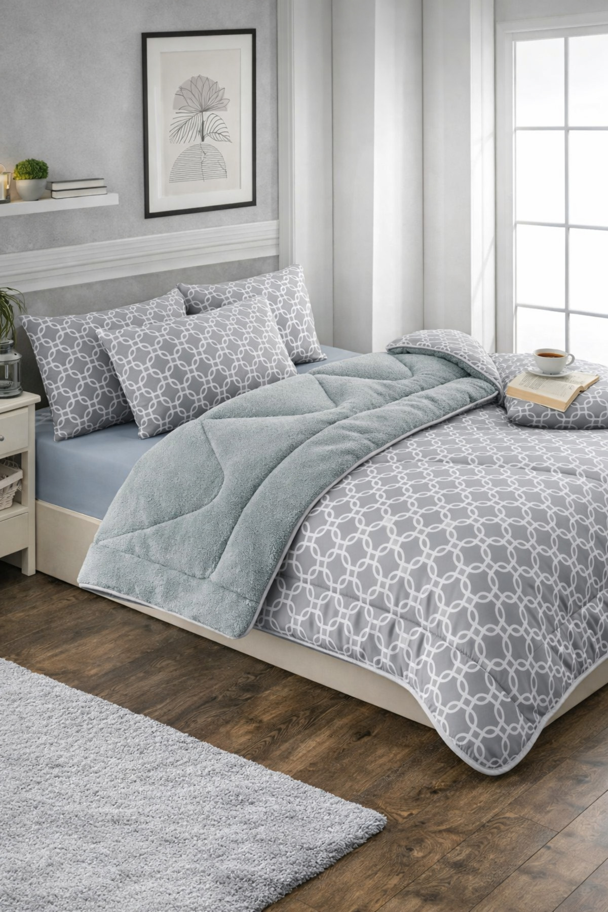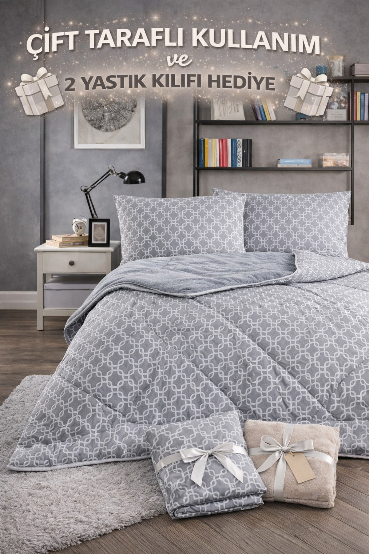 Double Welsoft Duvet Cover | Double-Sided-Grey Chain with 2 Pillowcase Gifts