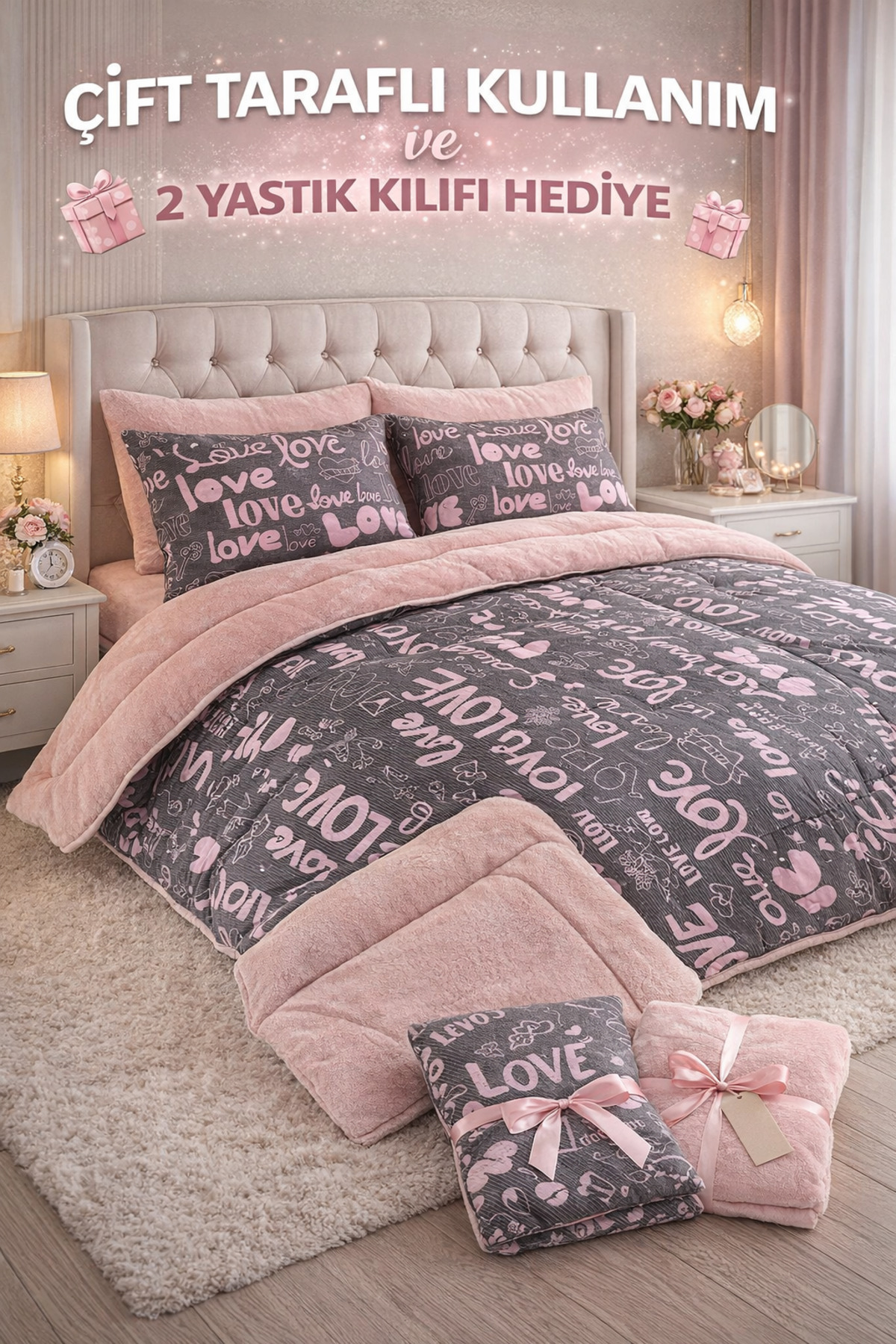 Double Welsoft Duvet Cover | 2 Pillowcases Gifted, Double-Sided - Love Powder