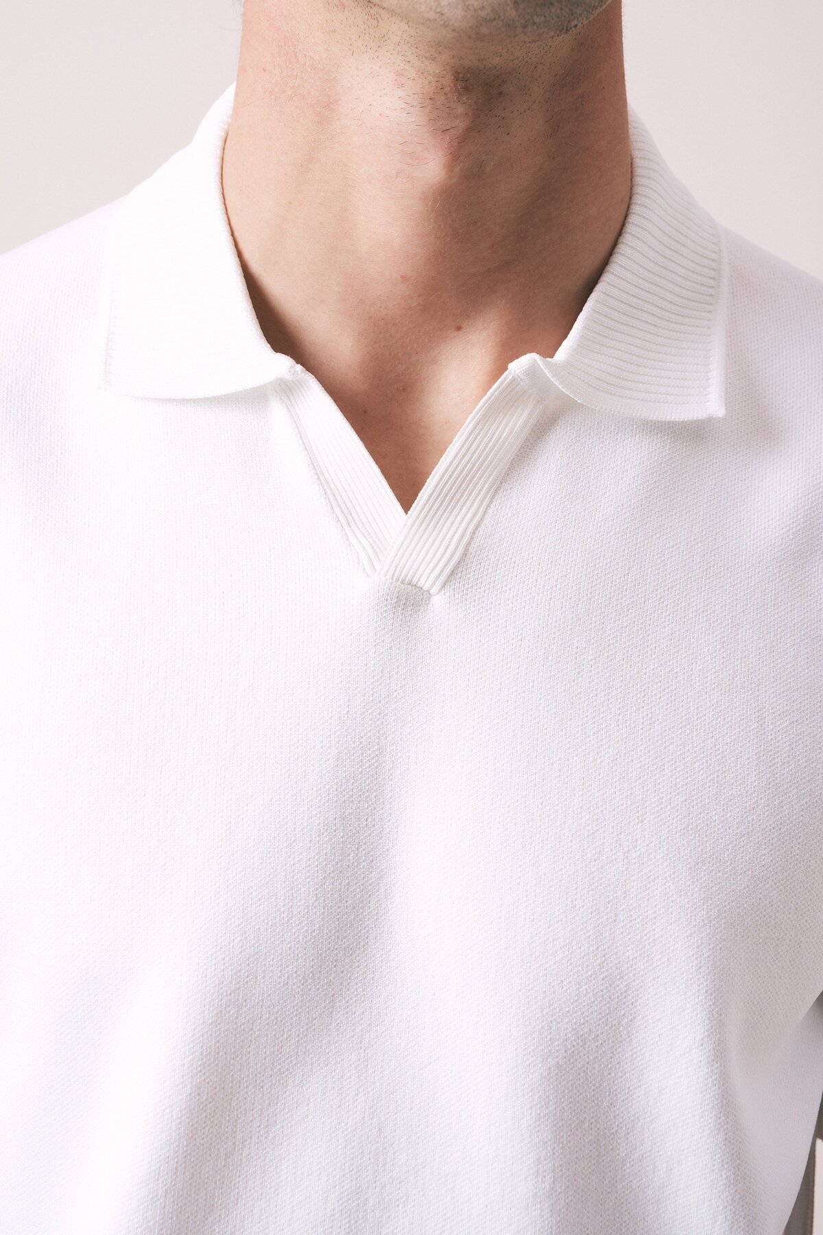 Dawson Polo V-Neck Buttonless Short Sleeve Slim Knitwear Men's T-Shirt reinterprets the classic polo neck form with a modern V-neck detail.