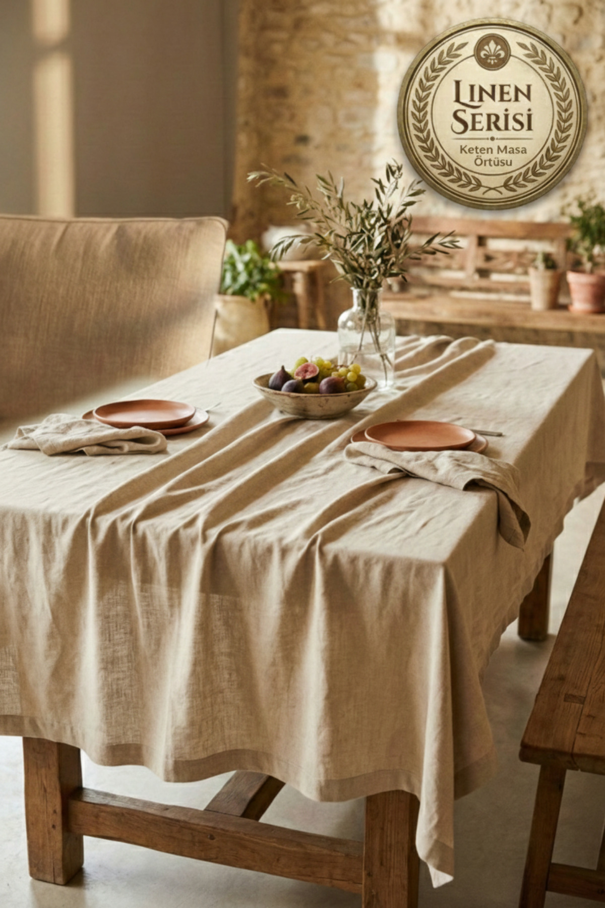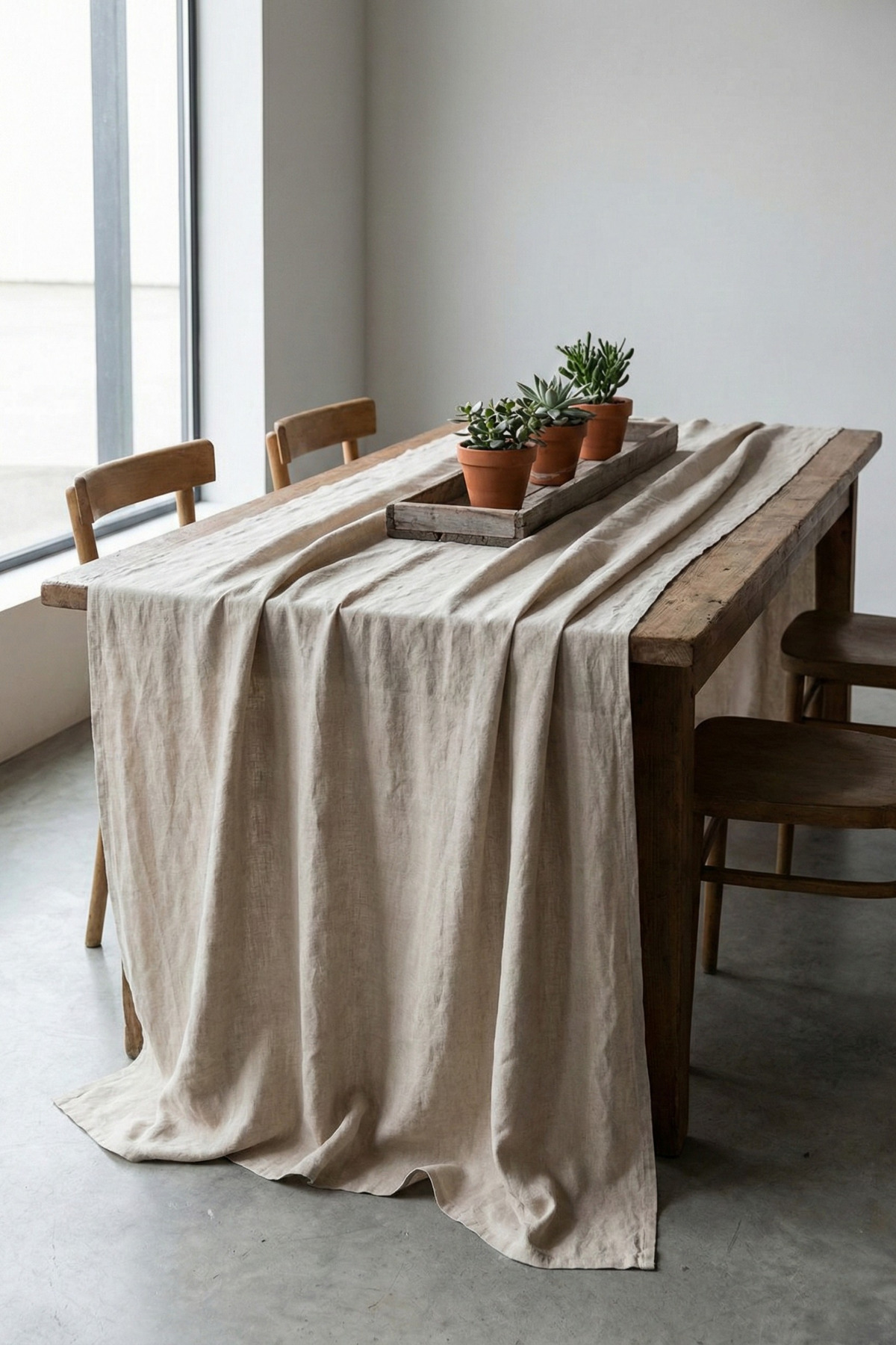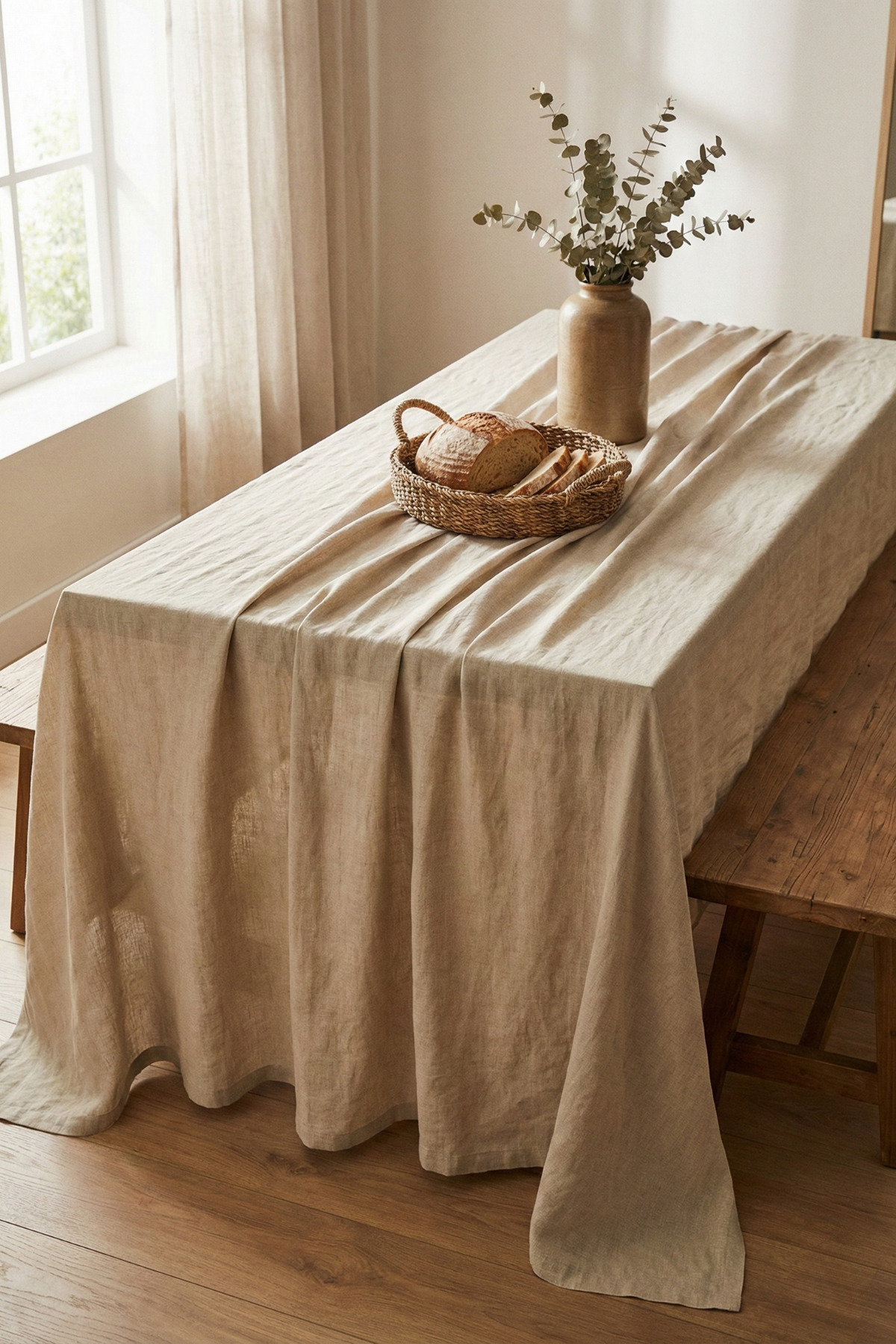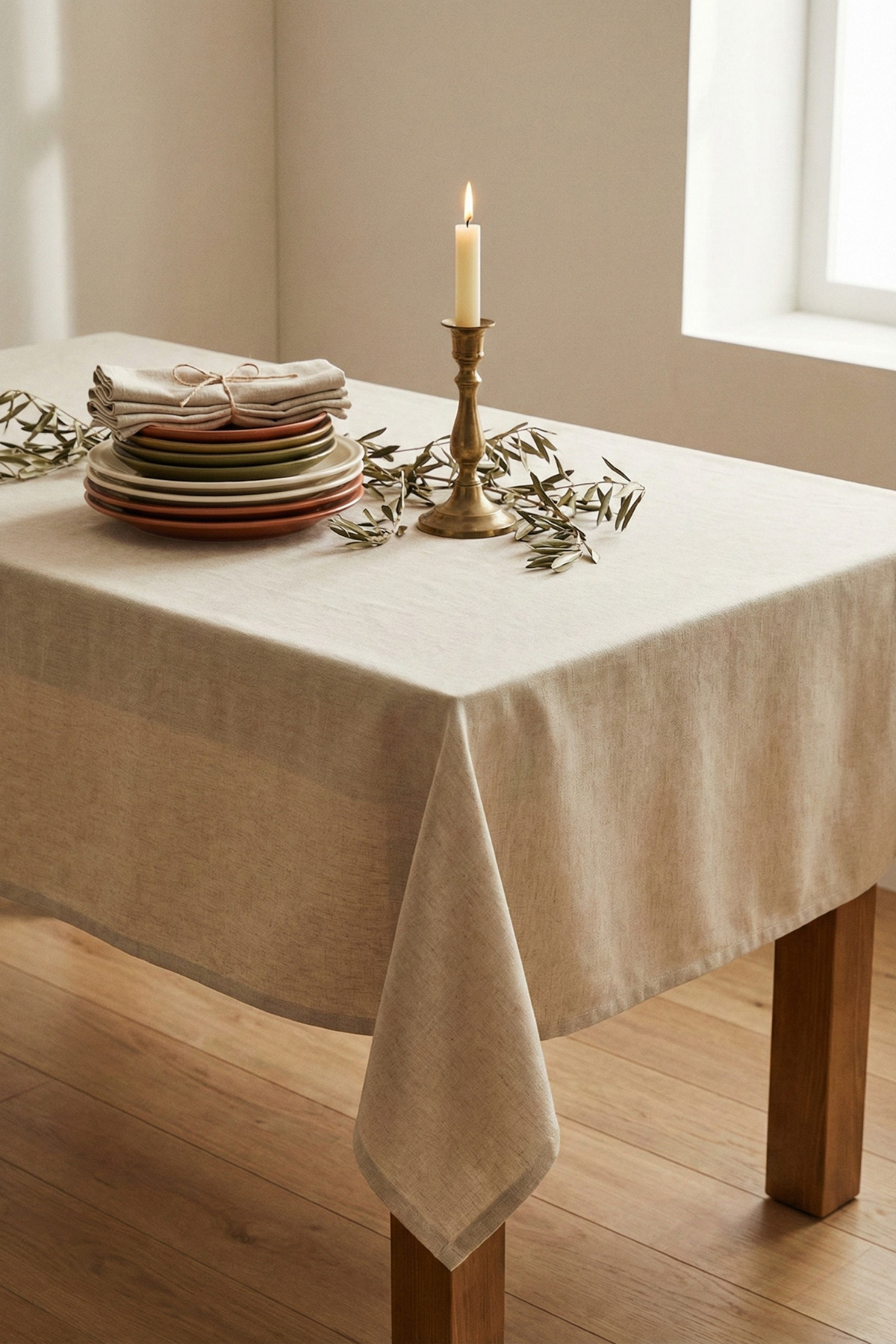 Morlay Linen | Vintage Natural Linen Tablecloth - Raw Beige Washed Linen Bohemian Tablecloth (80 x 80)