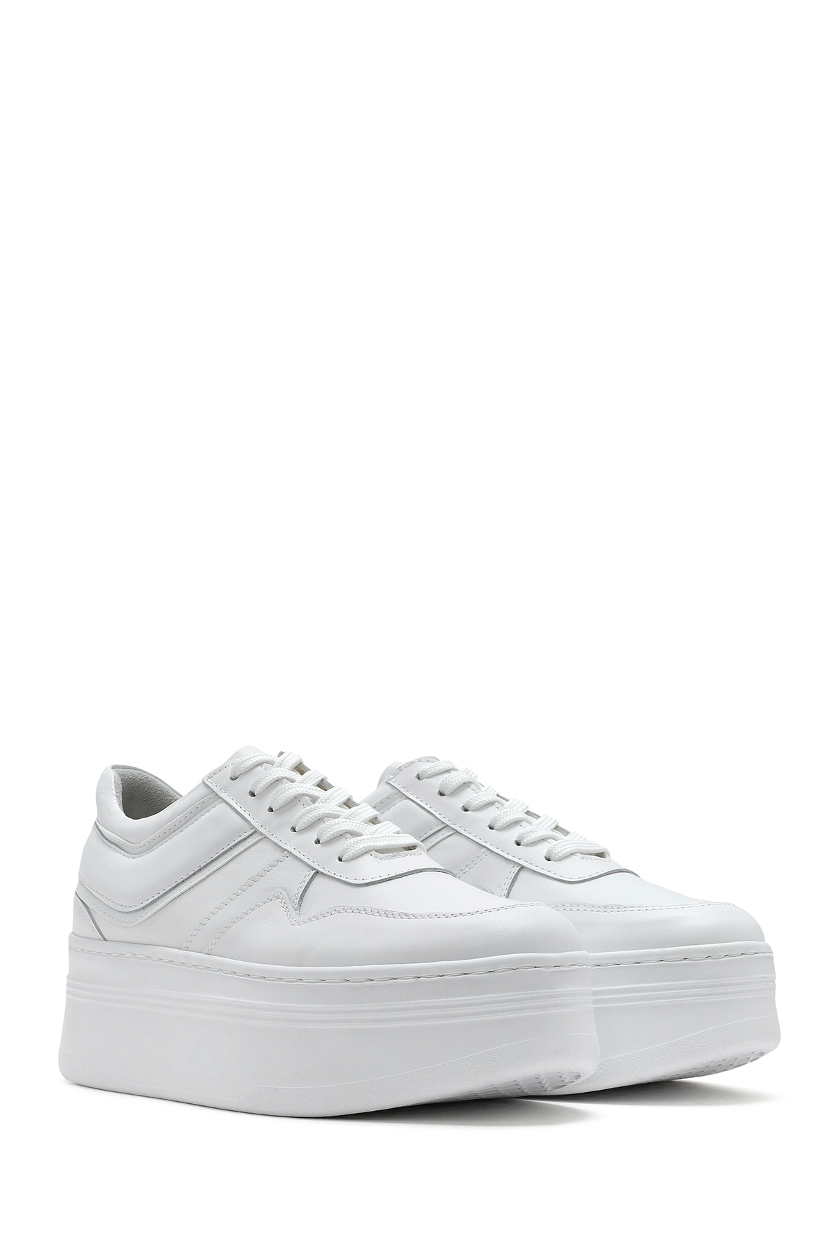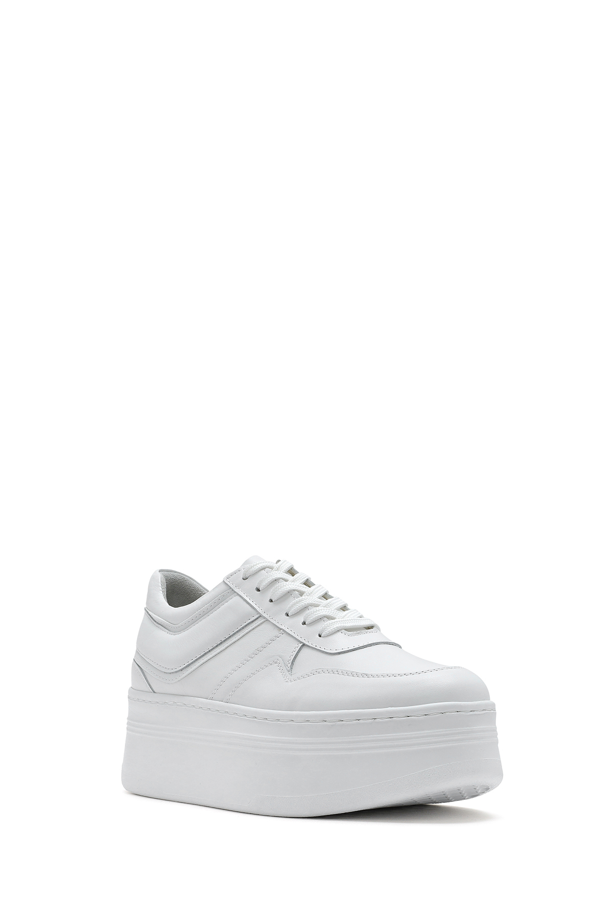 Derimod Women's White Lace-Up Thick Sole Sports Shoes, Leather Sneaker 26PFD370018 | ByTR