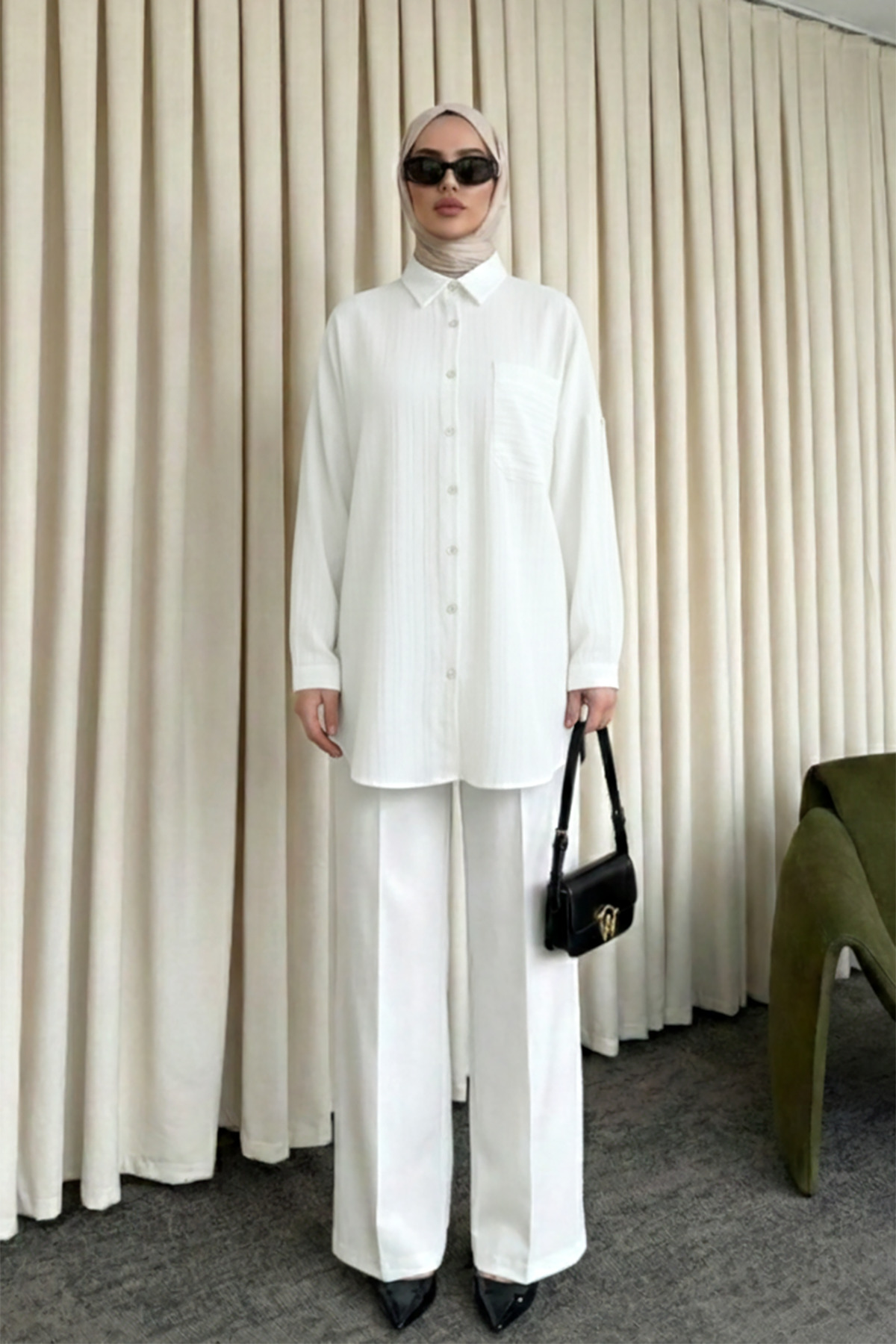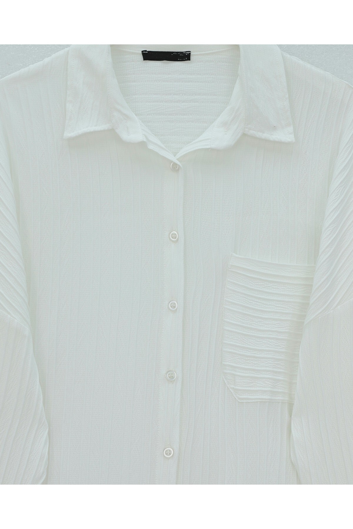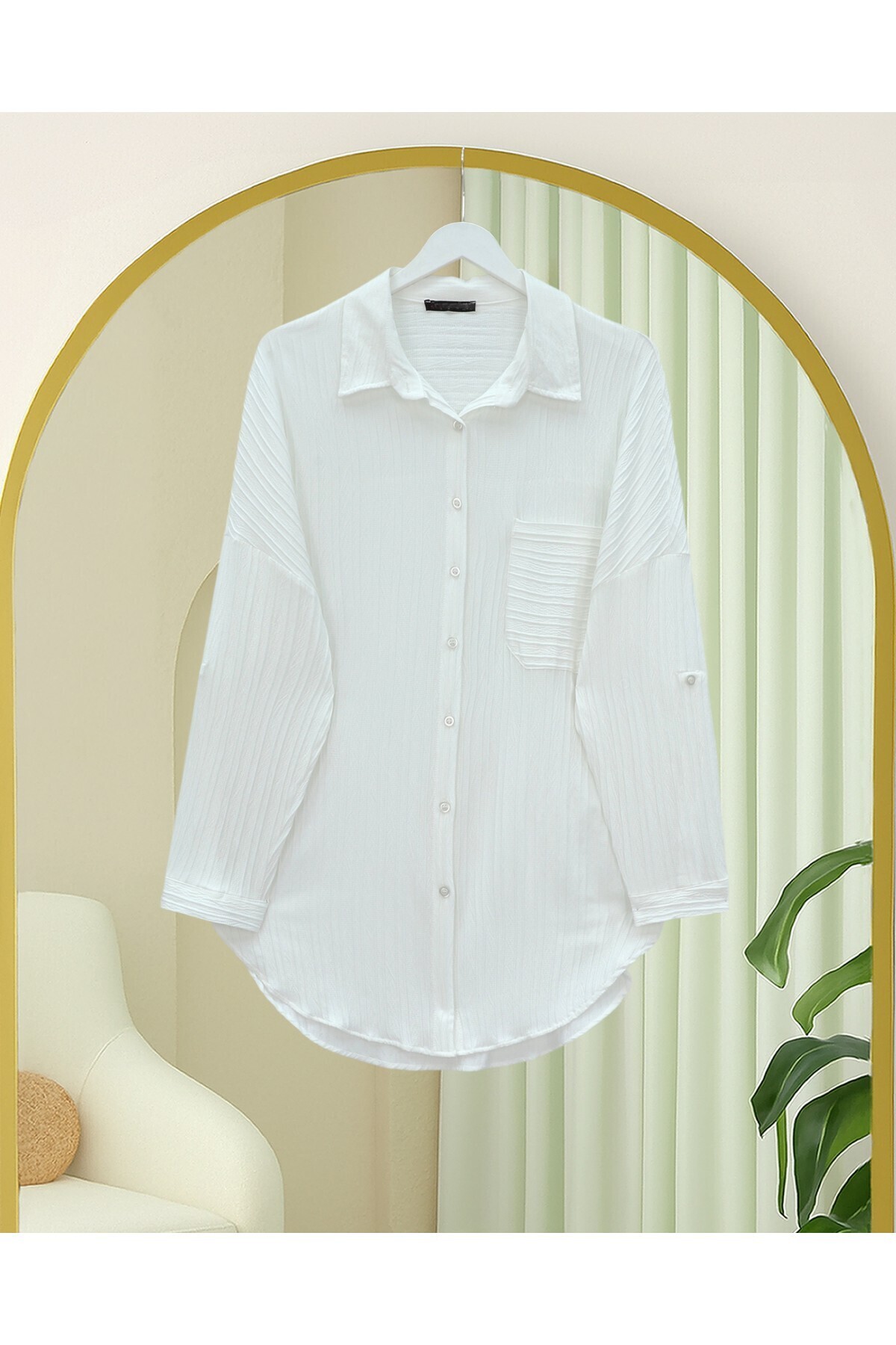 MODAQU Buttoned Crinkle Shirt Tunic - White | ByTR