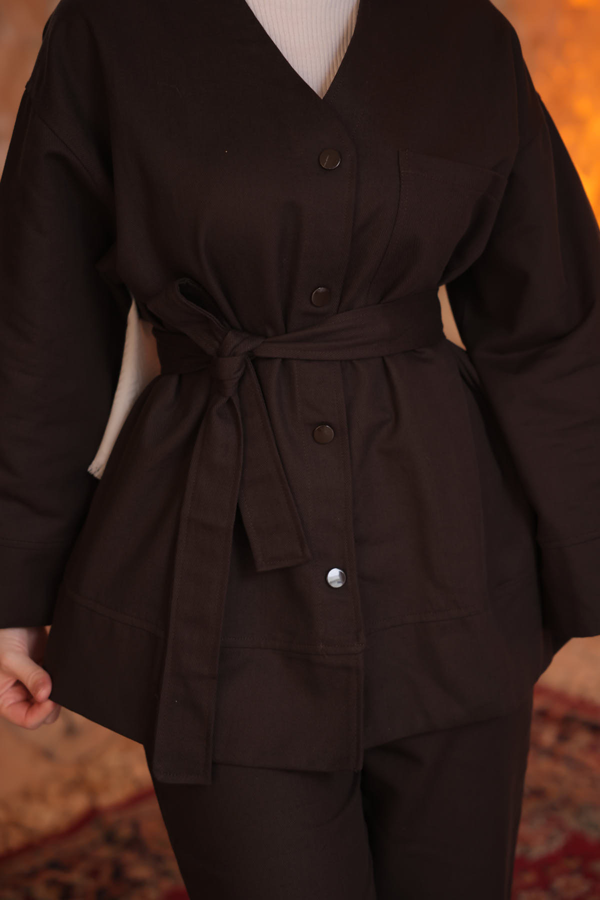 İmajButik Brown Belted Jacket Pants Gabardine Set | ByTR