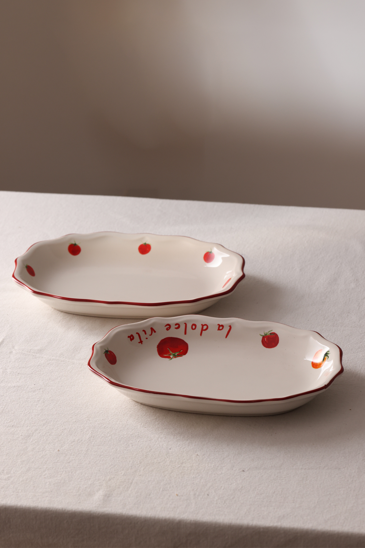 - Dishwasher Safe Volume: 25 cm Color: Stoneware Material: 100% Stoneware Package Included: 2 x Kayak Serving Plates Product Size Height: 3.7 cm Width: 25 cm Width: 17.7 cm