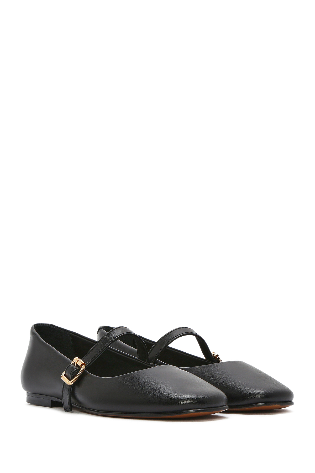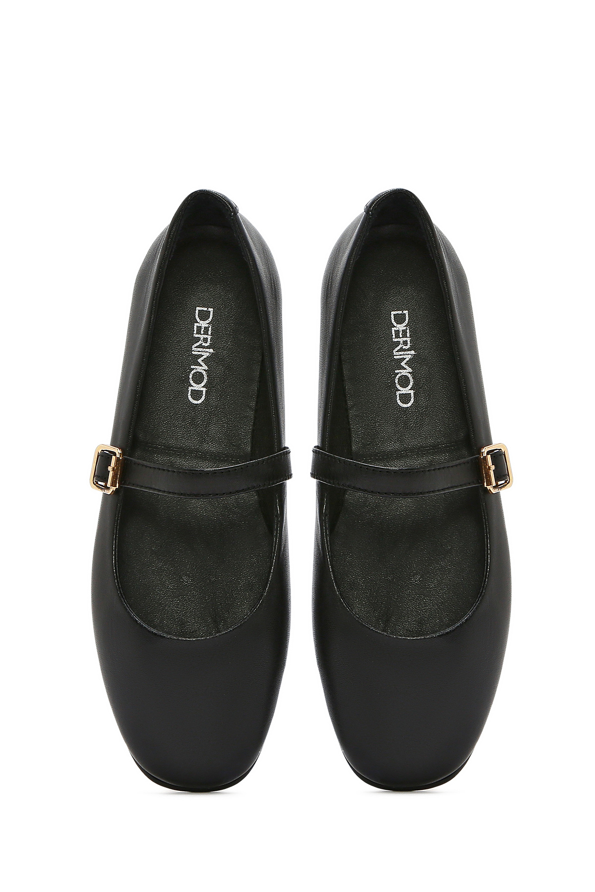 Derimod Women's Black Banded Shoes, Leather Flats 26PFD420118 | ByTR