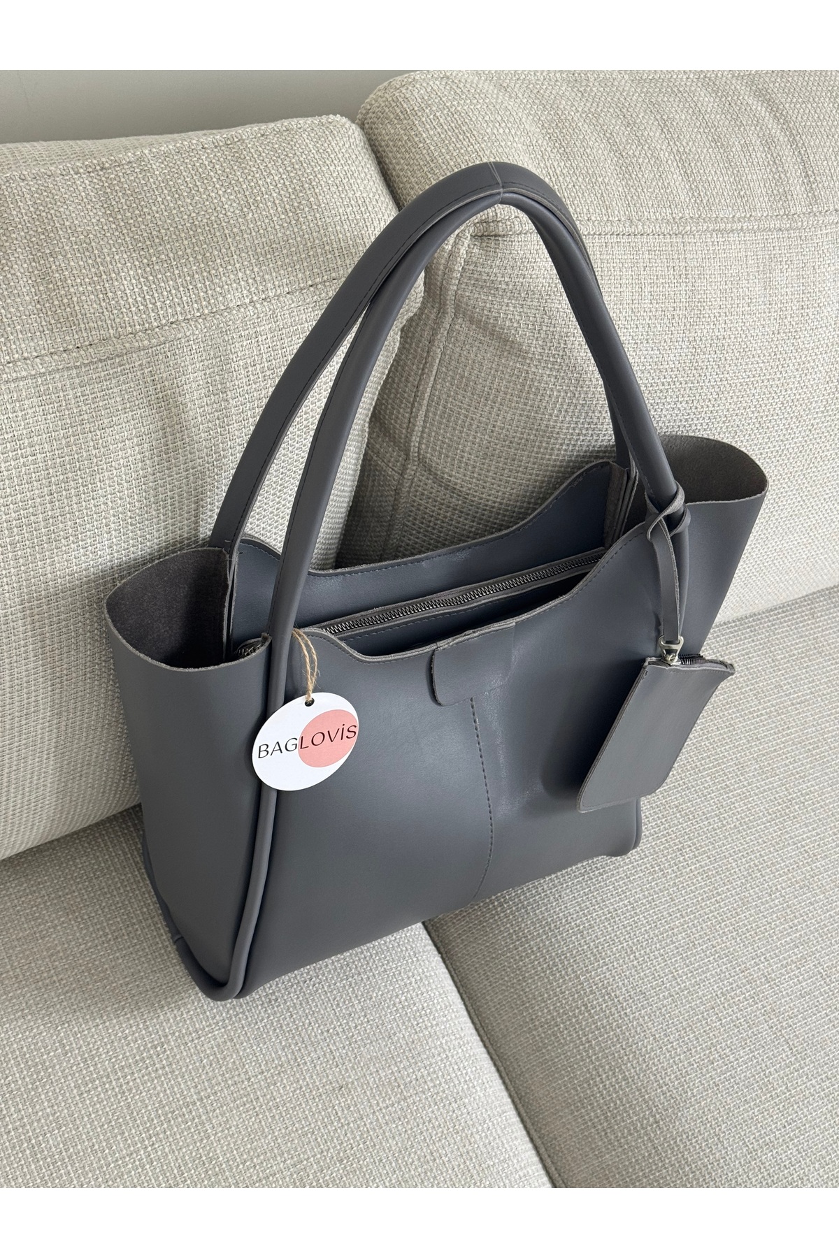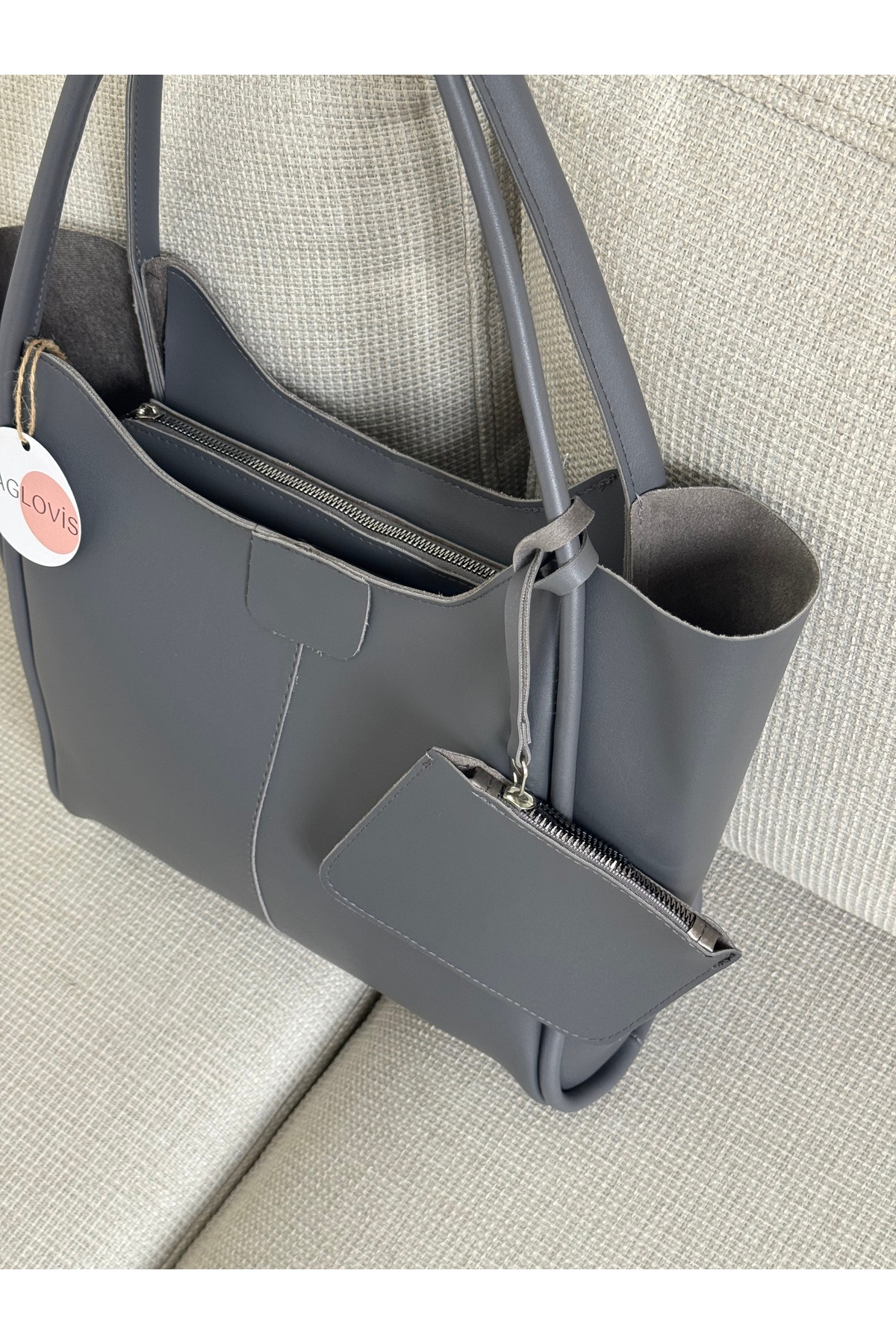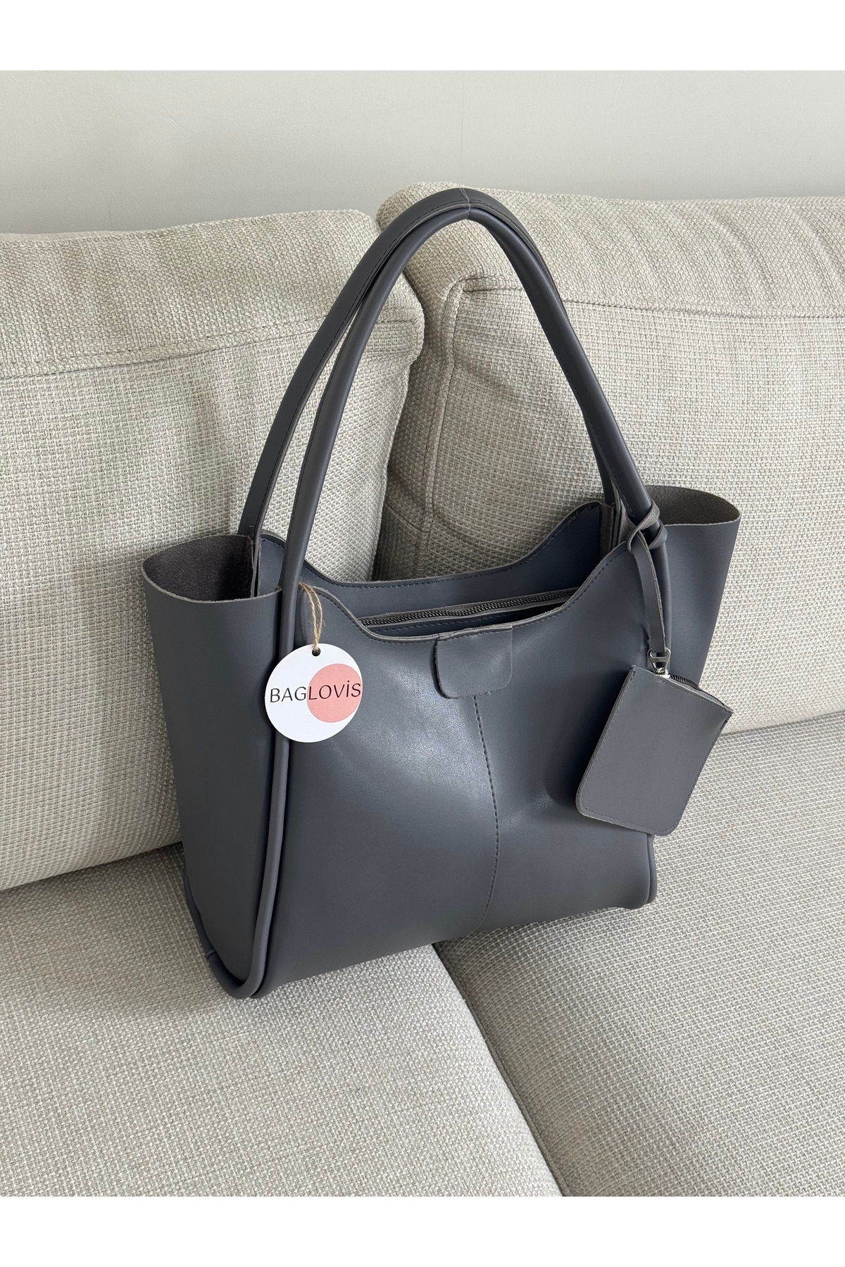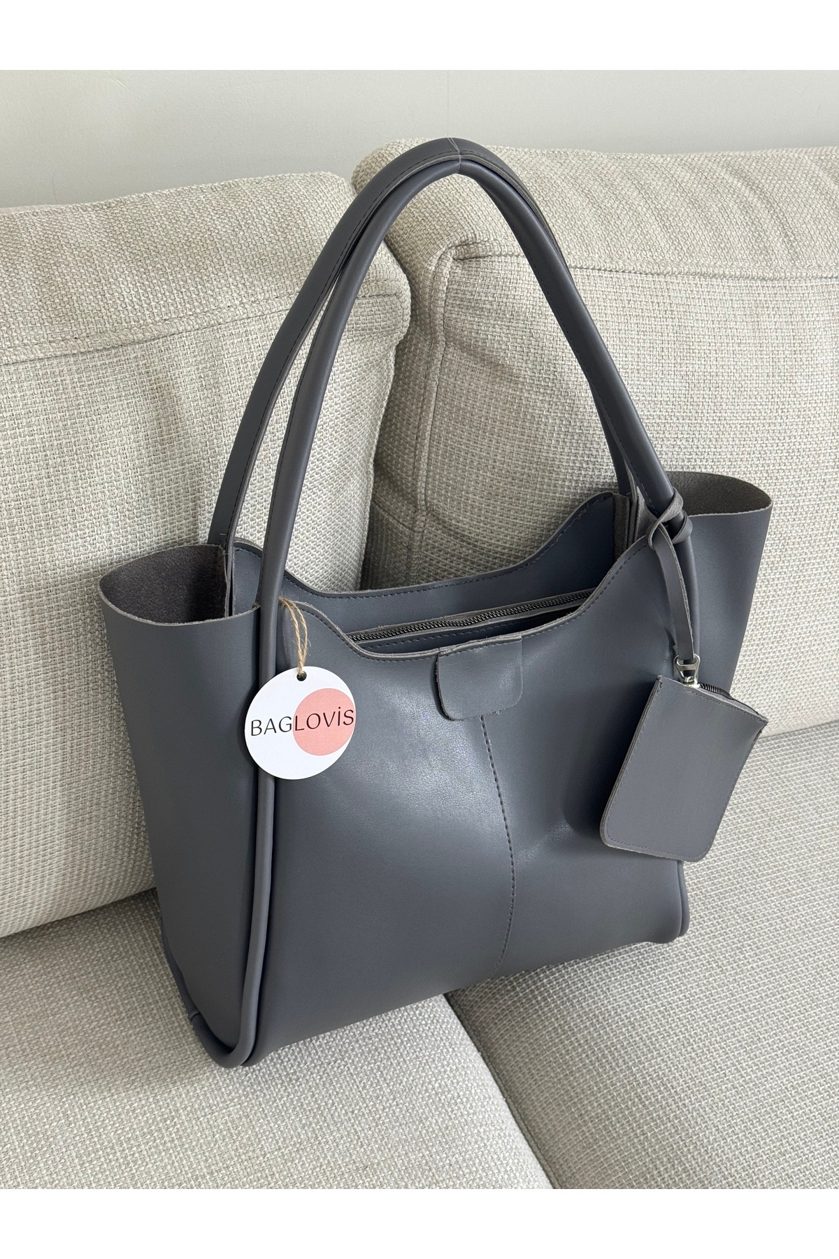 BAGLOVİS Dark Grey Sunny Women's Large Shoulder Bag with Extra Wallet Zipper Closure EN41 UZN28 | ByTR