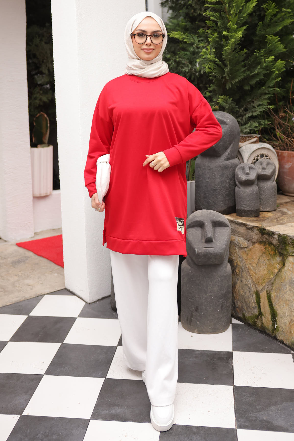 İmajButik Red Crew Neck Badge Tunic | ByTR