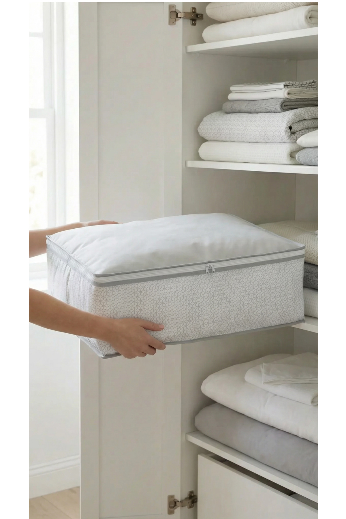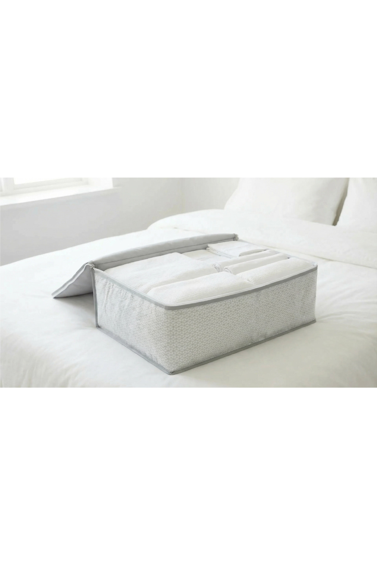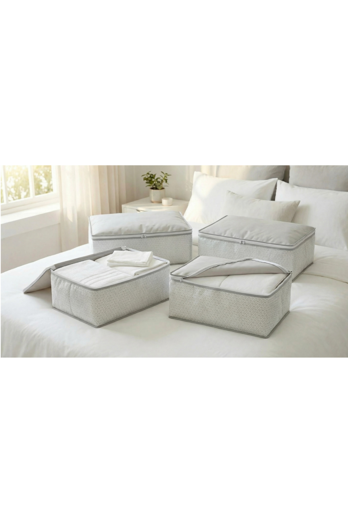 EVSELLA 4-Piece White Geometric Striped Under Bed Base Sofa Bed Hatch Organizer 60×40×22 cm | ByTR