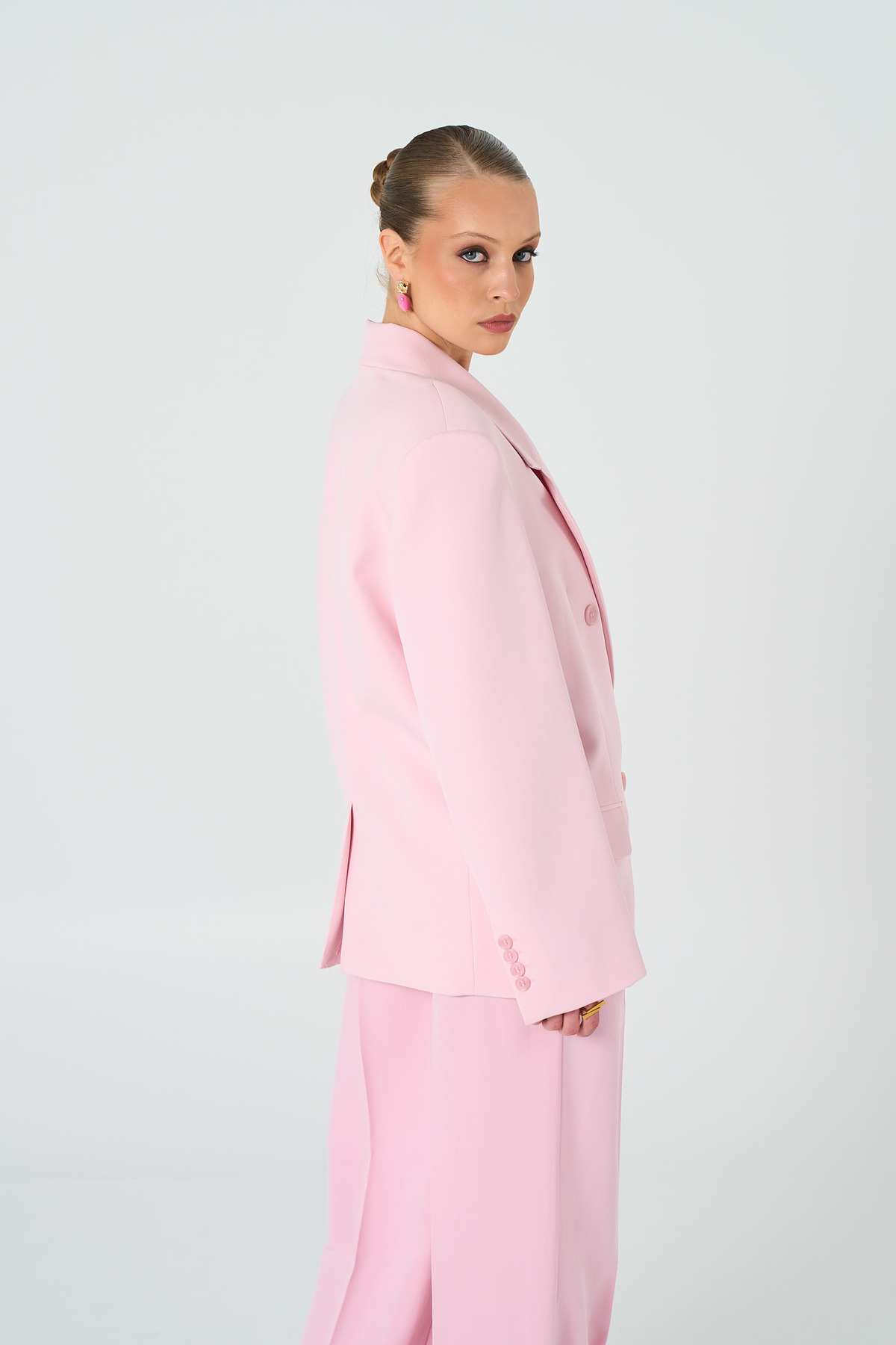 Pink Oversize Blazer With its comfortable oversize pattern and blazer collar form, it adds an elegant energy to modern city style