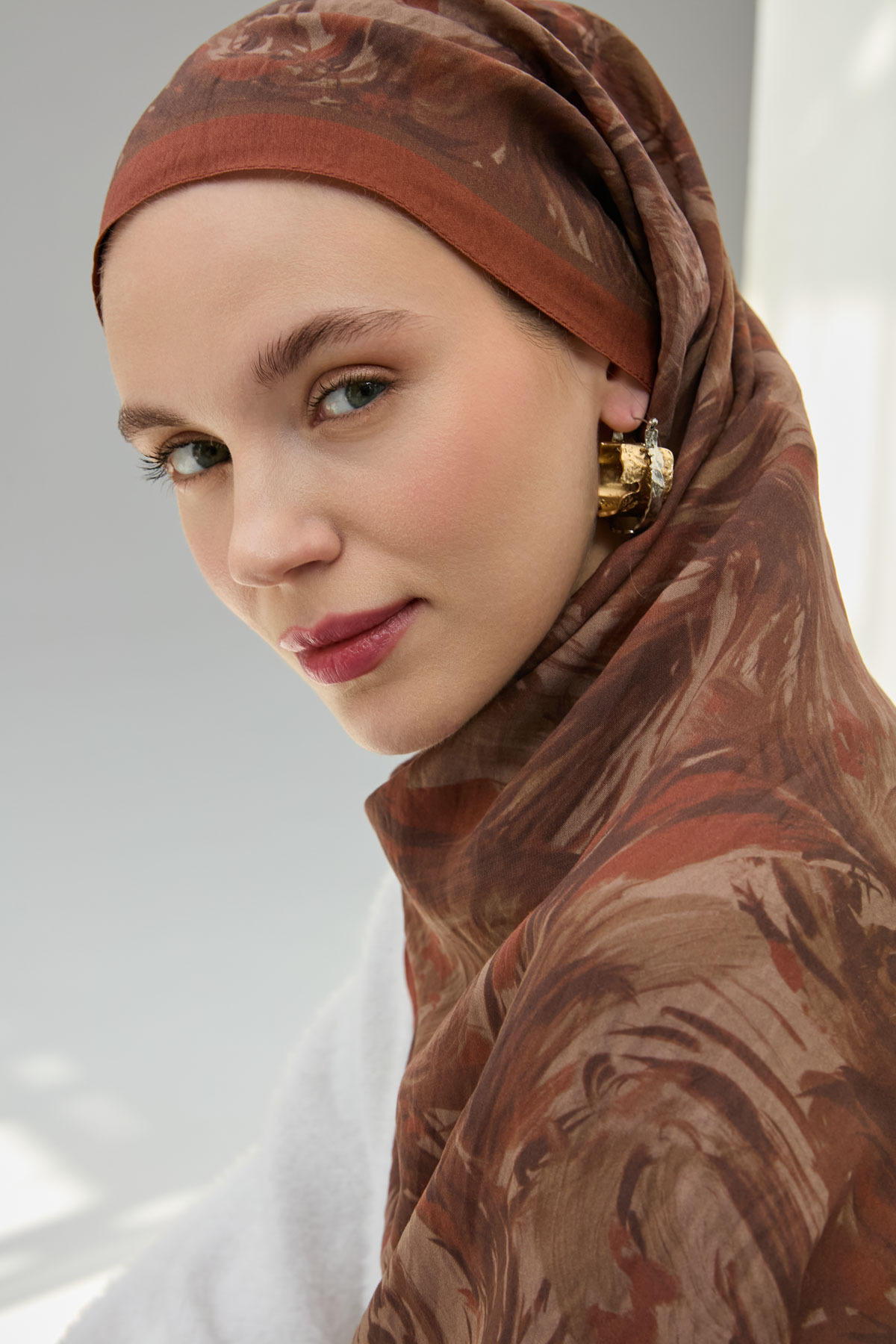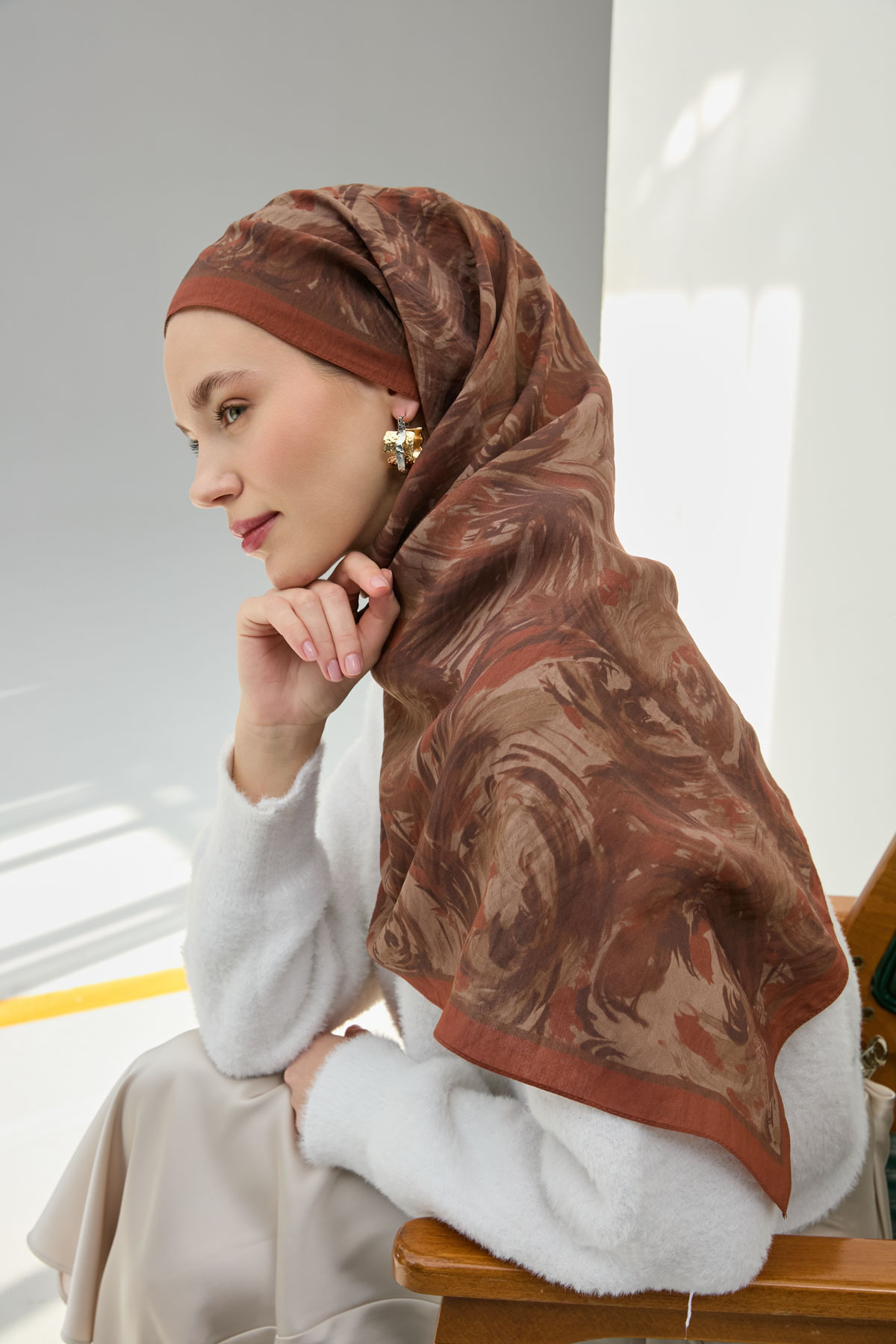 While the breathable natural structure of viscose prevents sweating, thanks to the polyester mixture, the front of your scarf is easily shaped and does not deteriorate during the day.