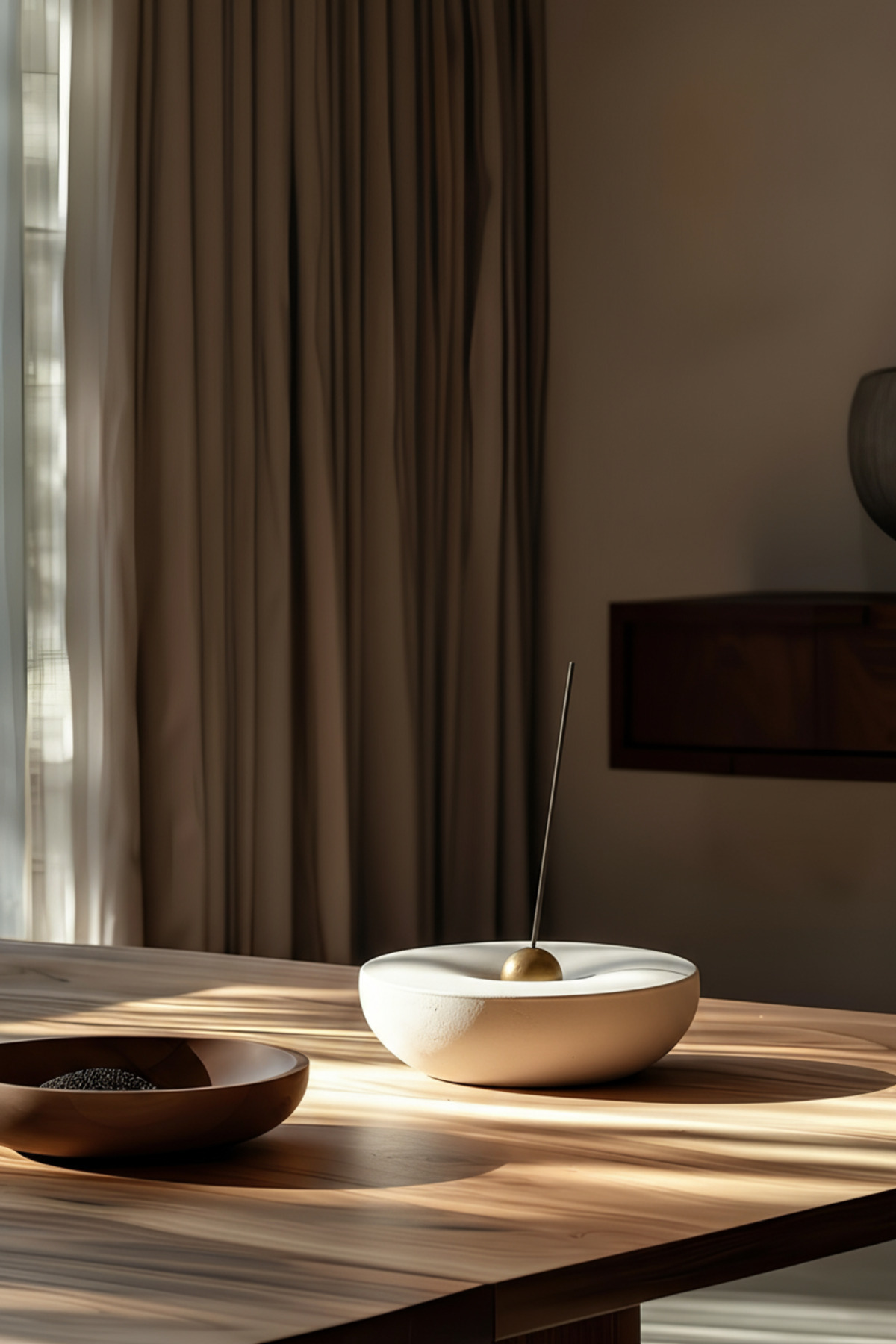 Thanks to the minimal form language: It can be positioned as a sculptural object in modern halls, a strong center in meditation areas, an atmosphere complementary in concept cafes and showrooms, and a characteristic detail on office desks.
