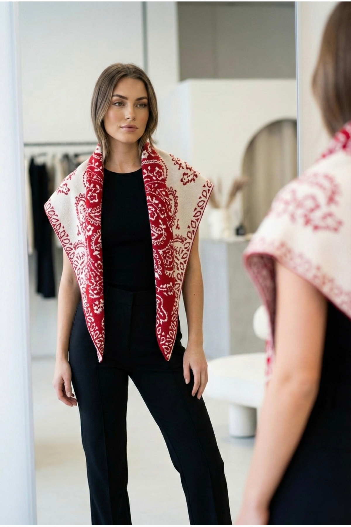 Attracting attention with its retro patterns, Marita Premium Shoulder Shawl adds a vintage touch to every outfit.