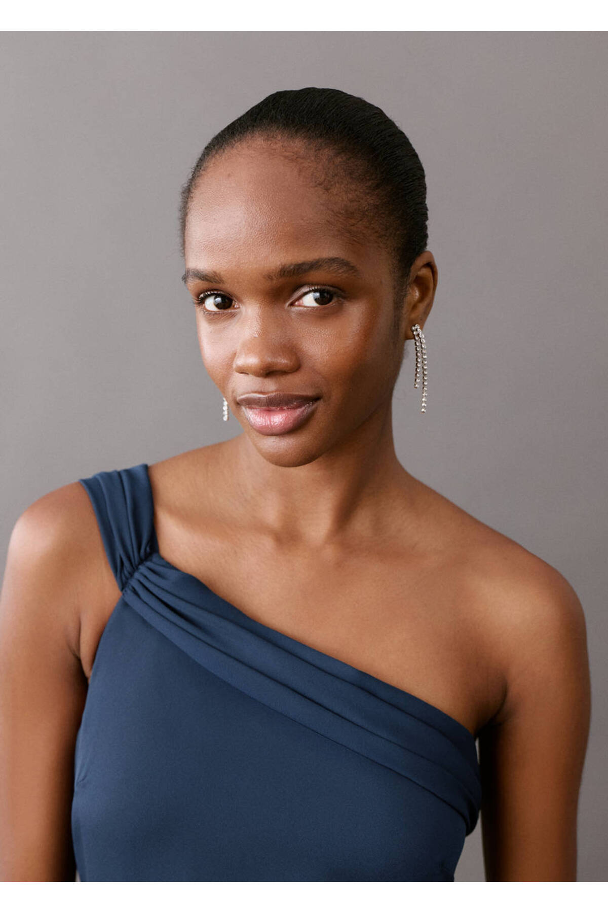 Fluid fabric, Plain design, Asymmetric design, Long design, Cut out detail, Party and event collection.