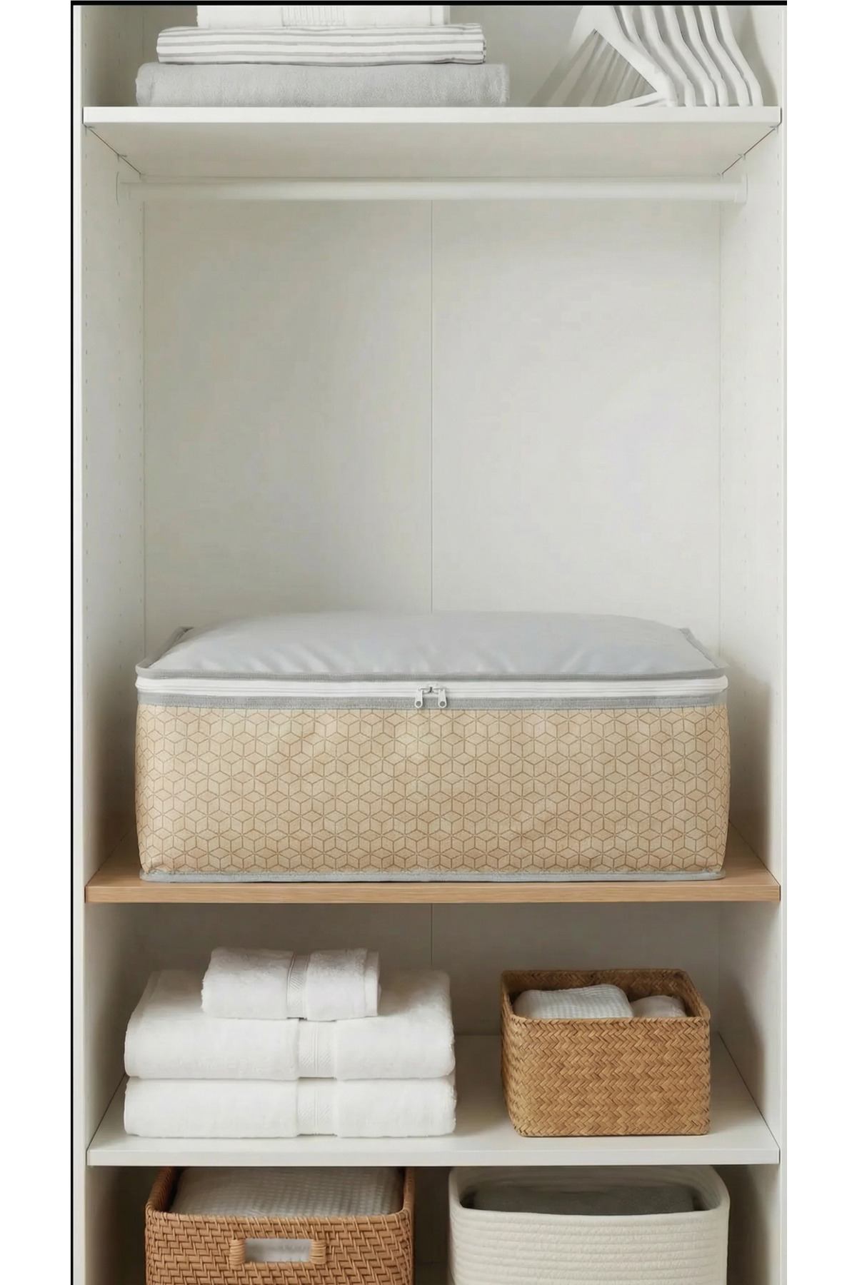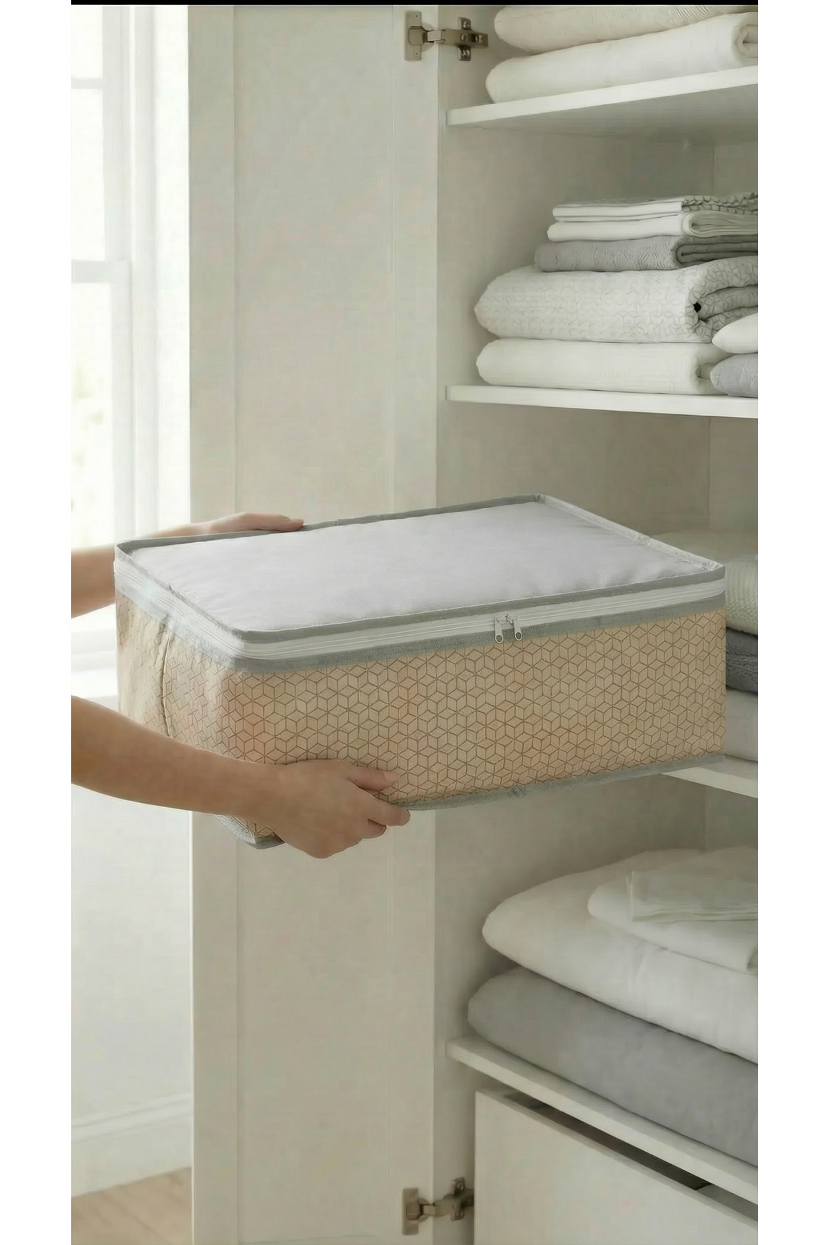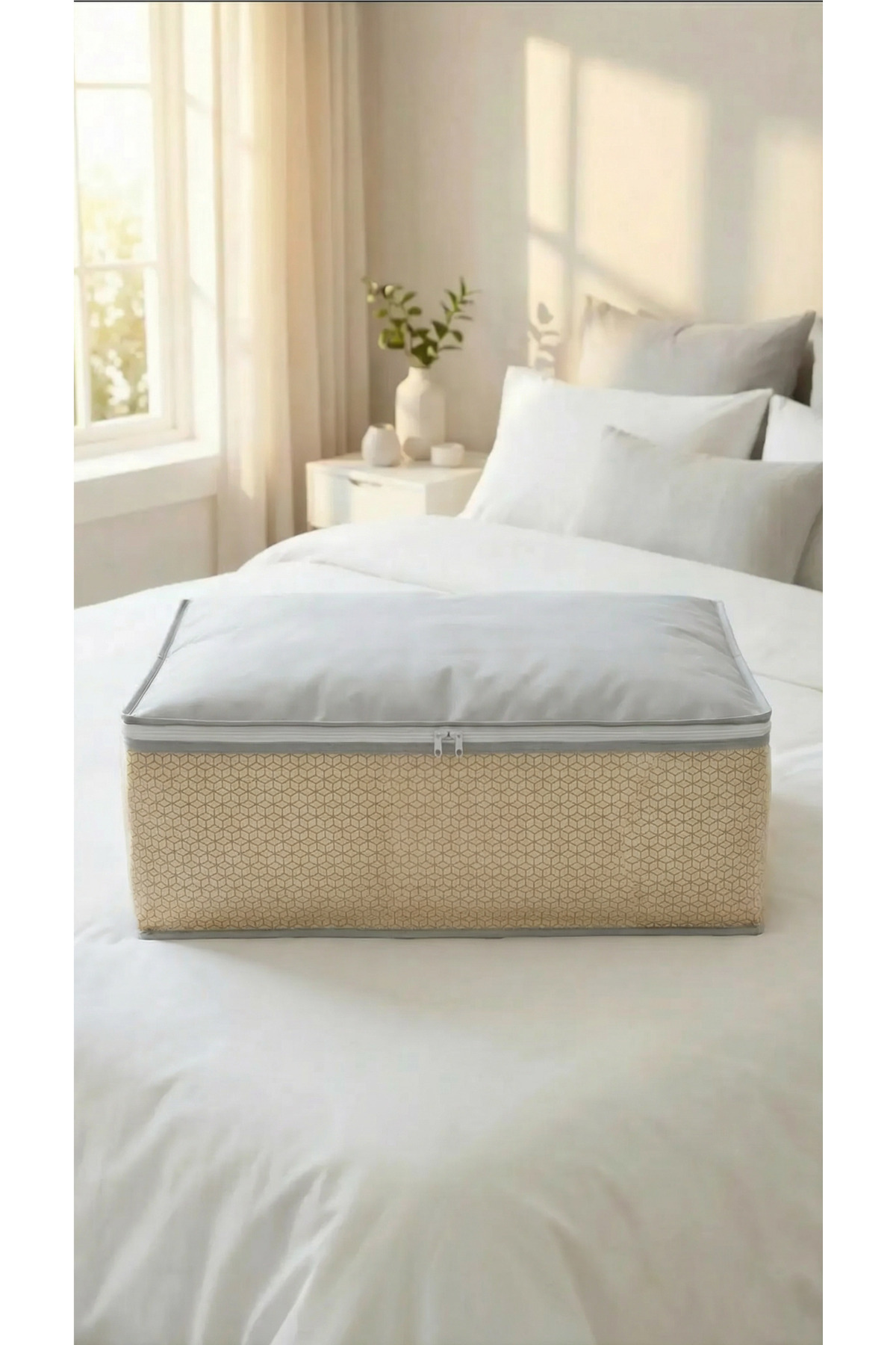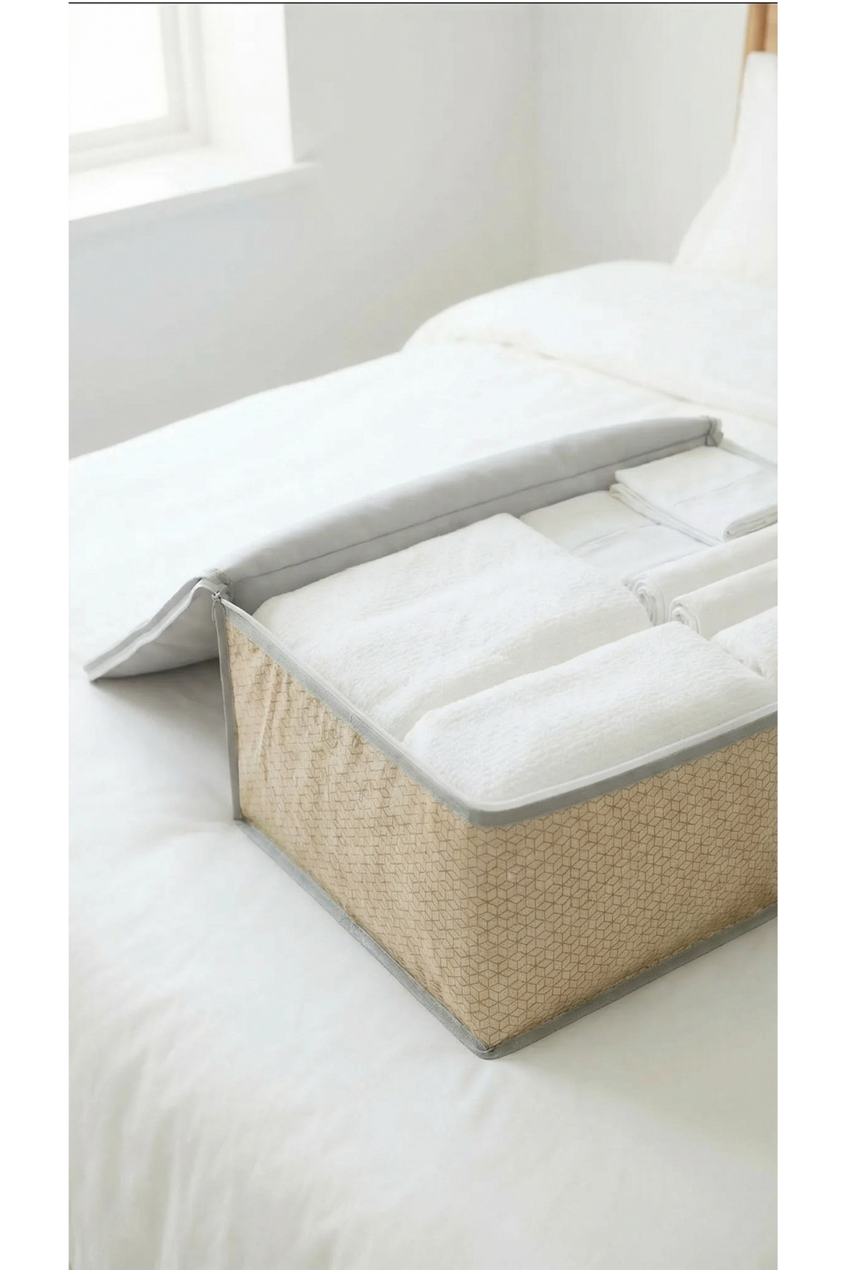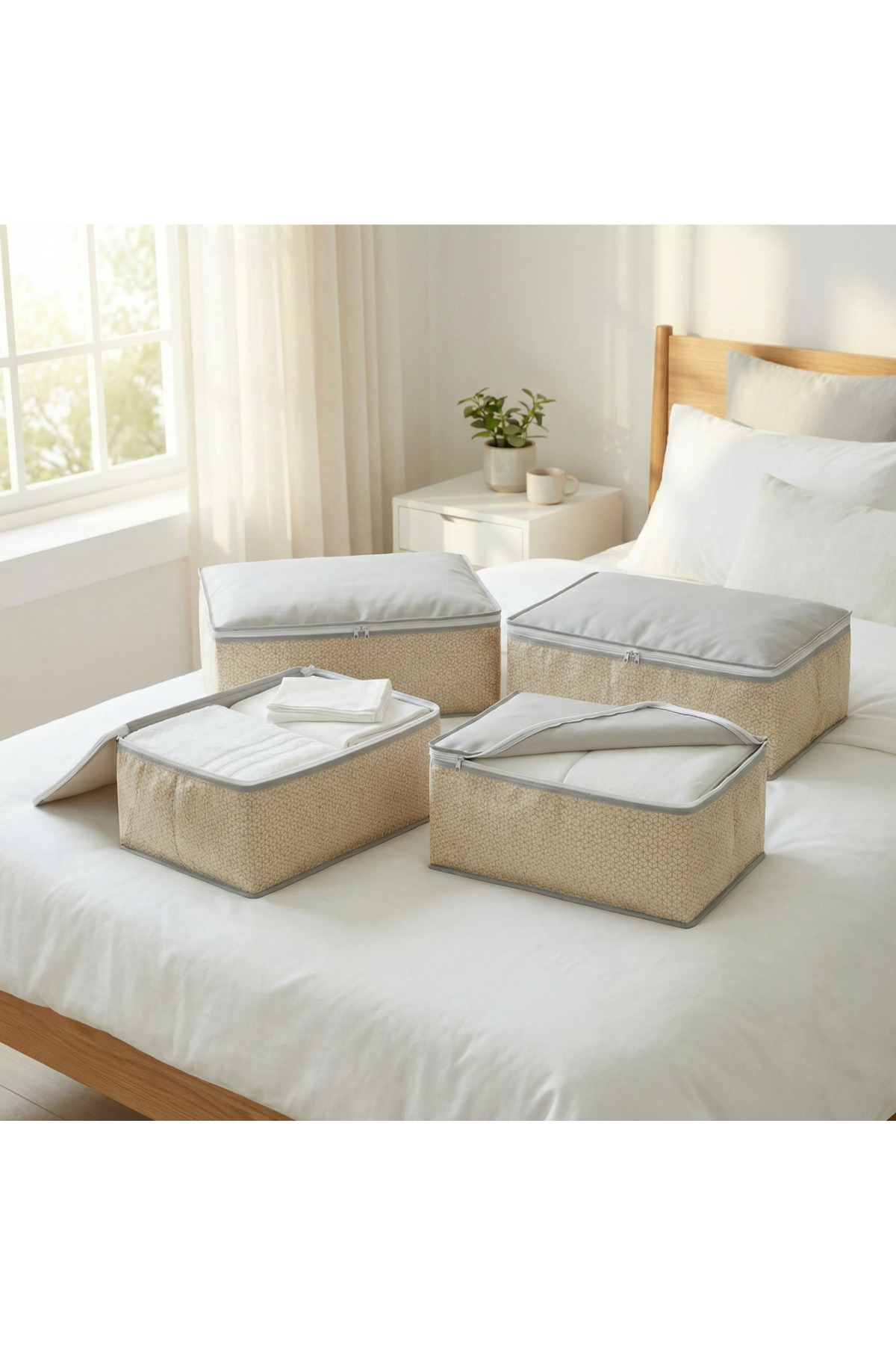 EVSELLA 4-Piece Beige Geometric Striped Under Bed Base Sofa Bed Hatch Organizer 60×40×22 cm | ByTR
