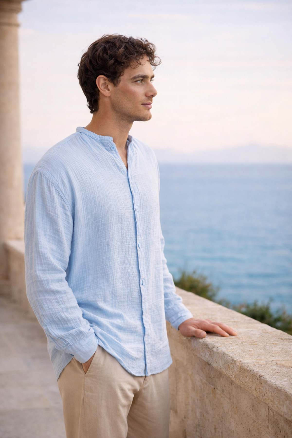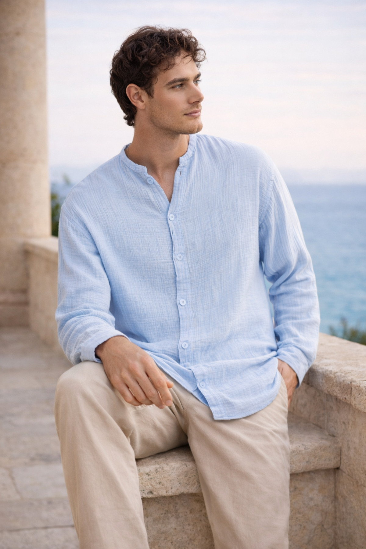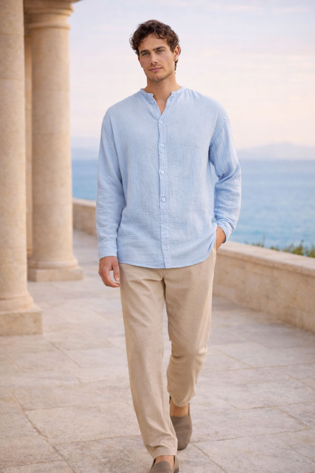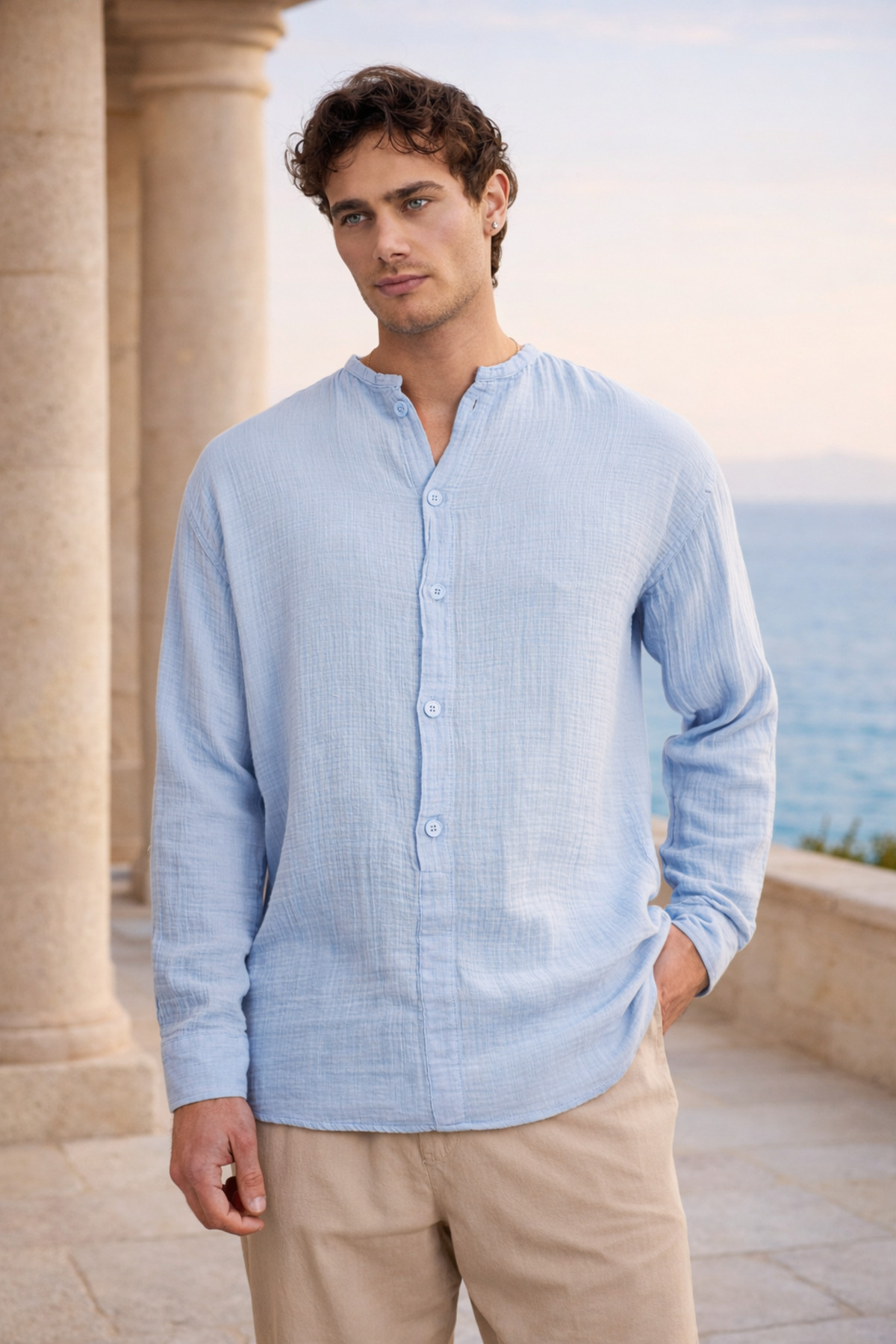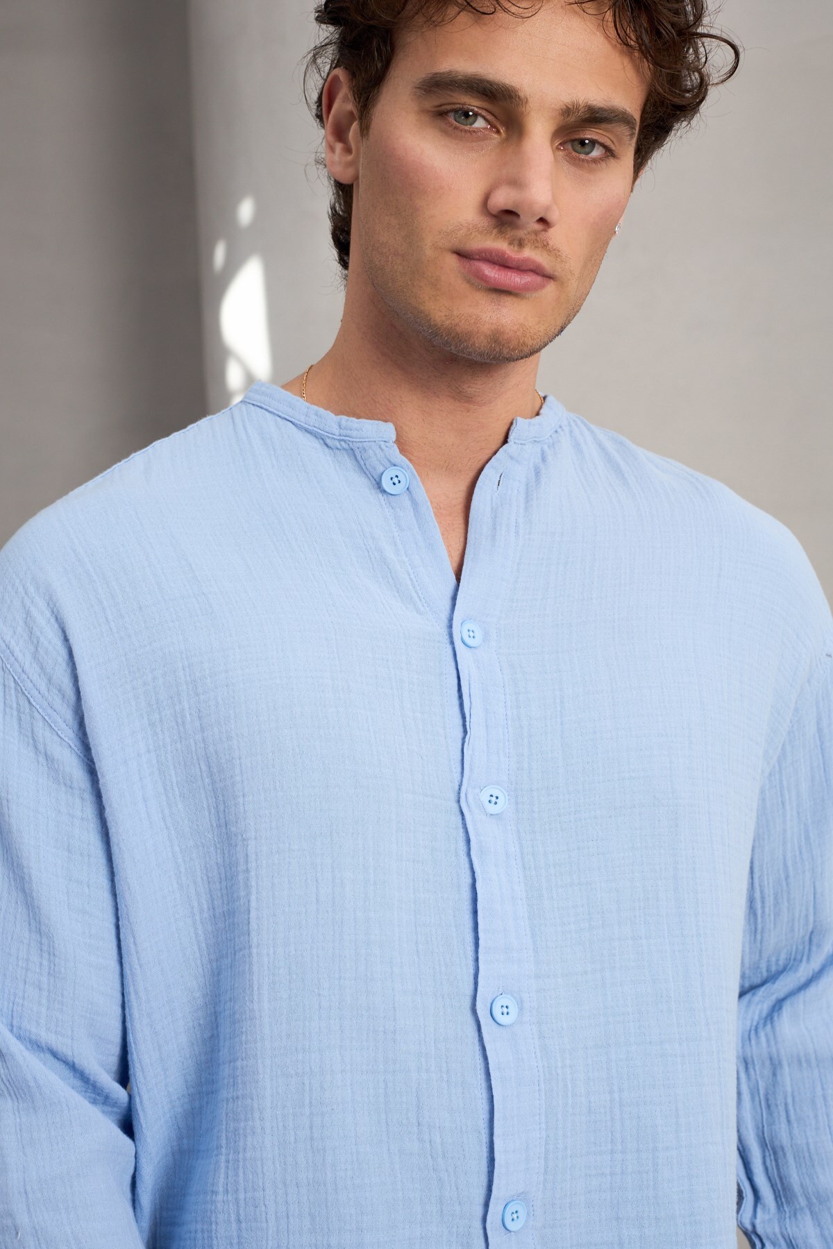 Made of breathable muslin fabric, the shirt stands out with its comfort and lightness throughout the day.