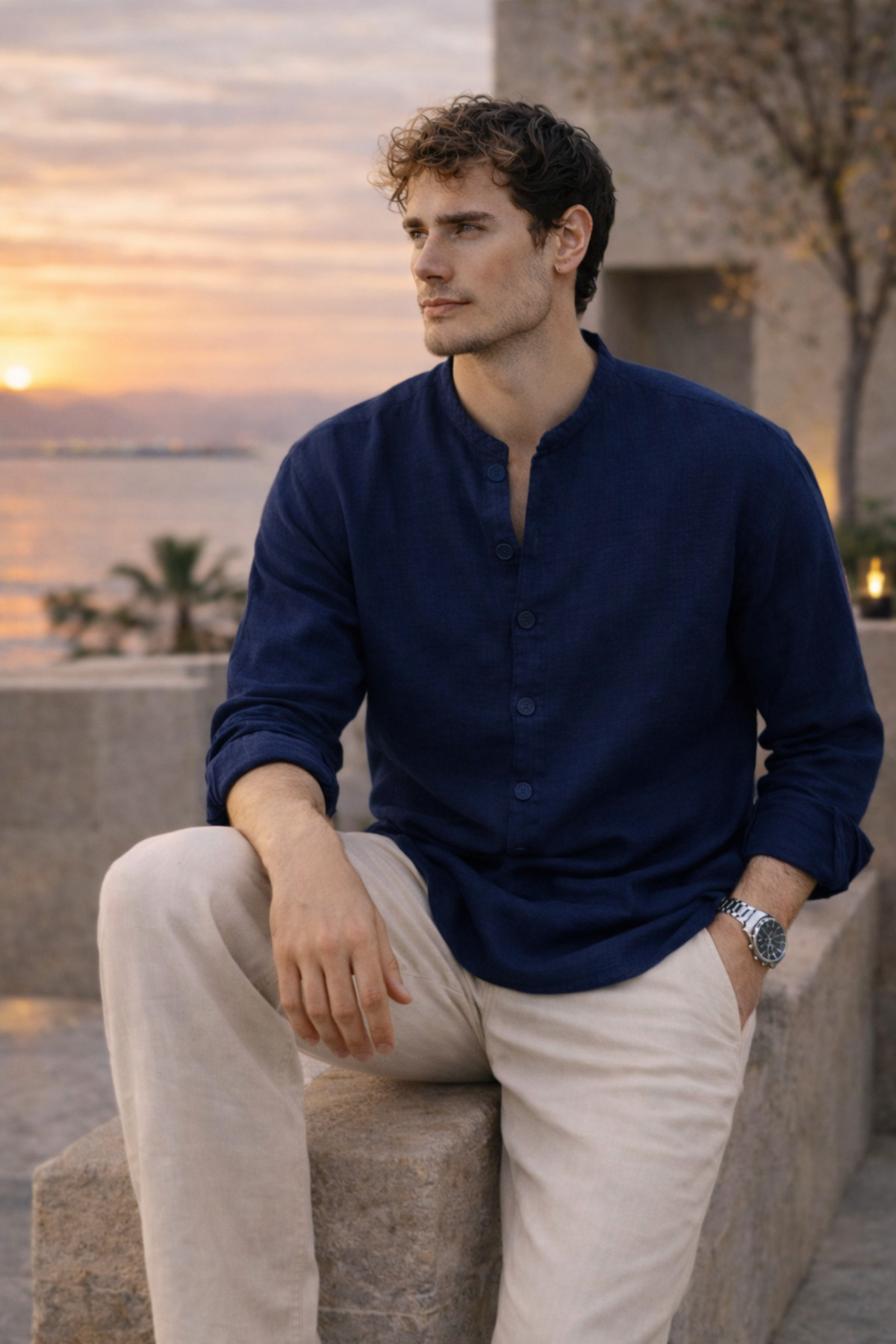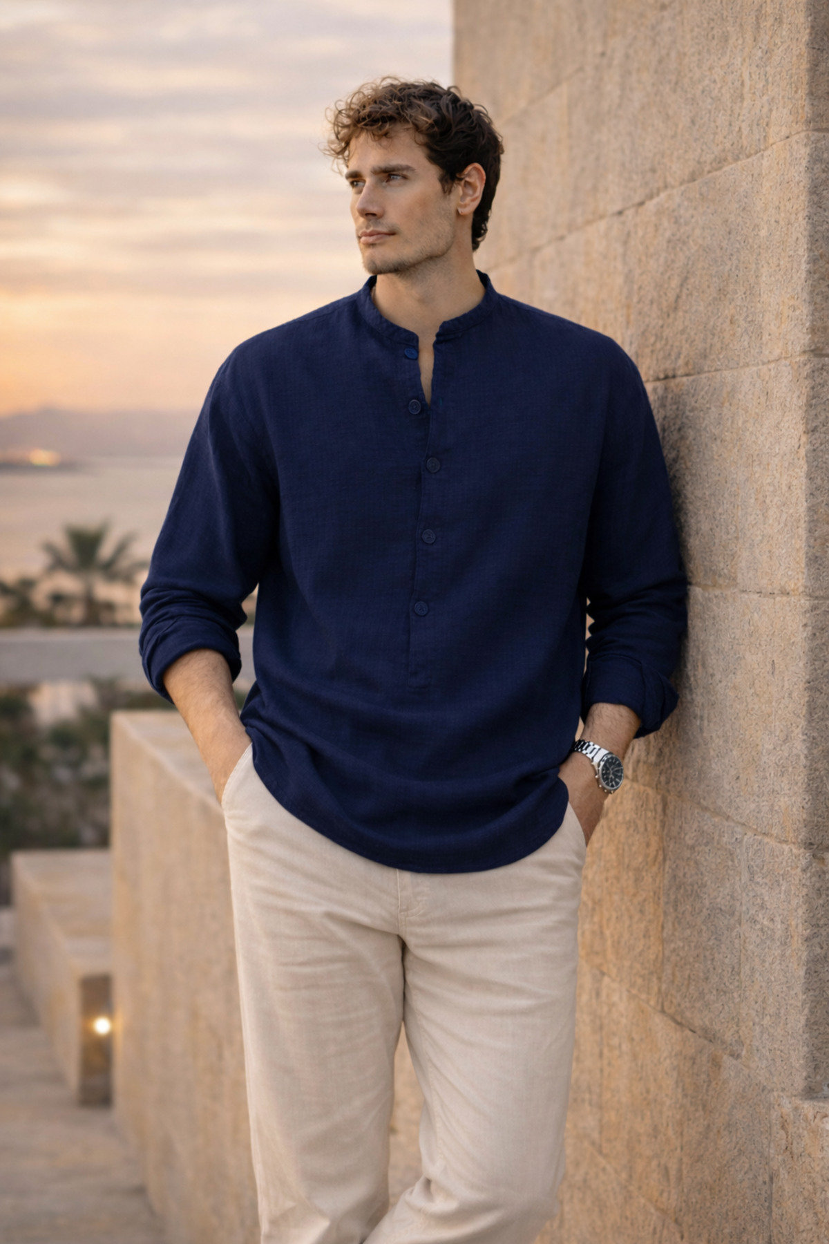 Made of breathable muslin fabric, the shirt stands out with its comfort and lightness throughout the day.