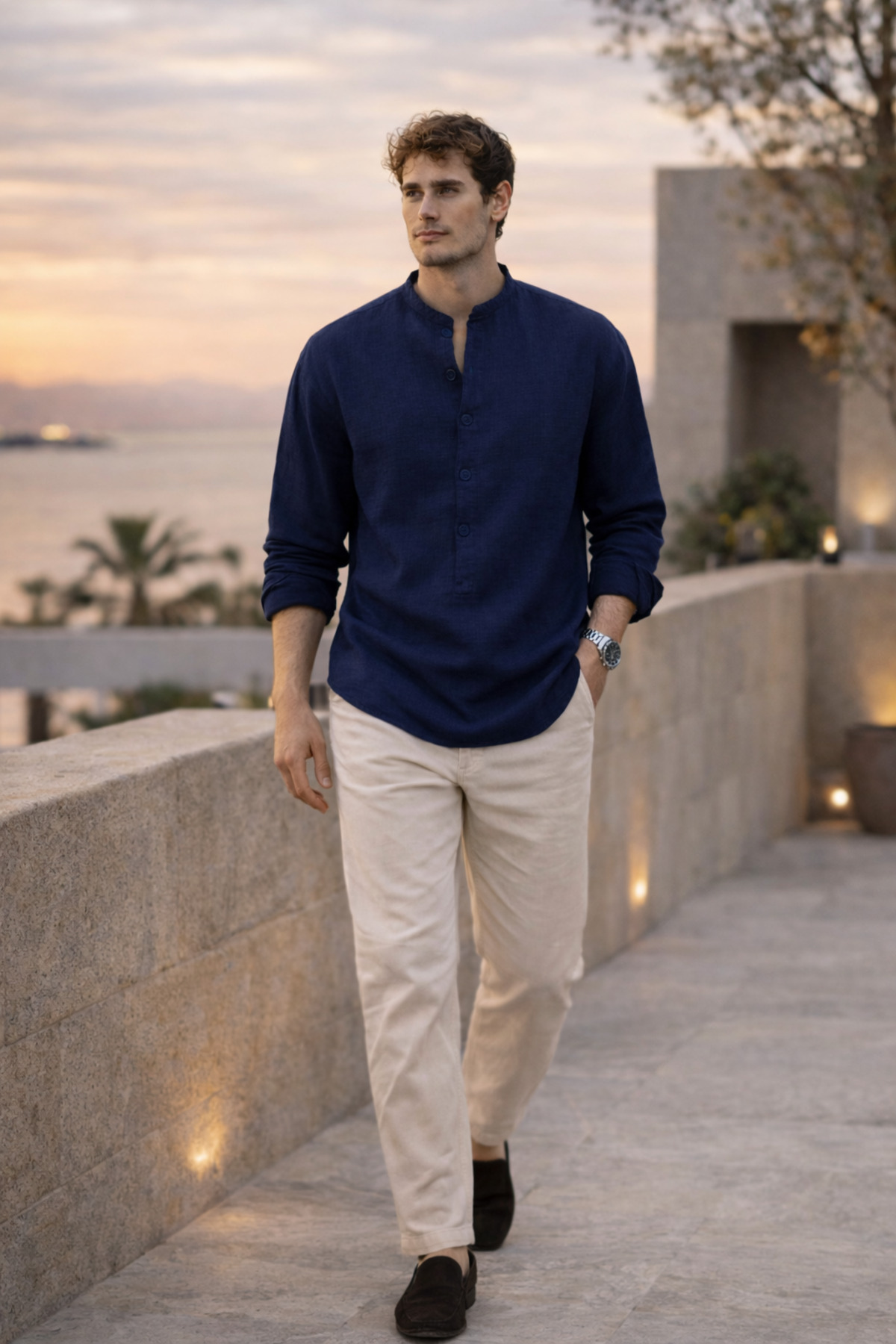 Catch elegance in every moment with the Half Pat Judge Collar Muslin Fabric Shirt, which will be an indispensable part of your wardrobe.