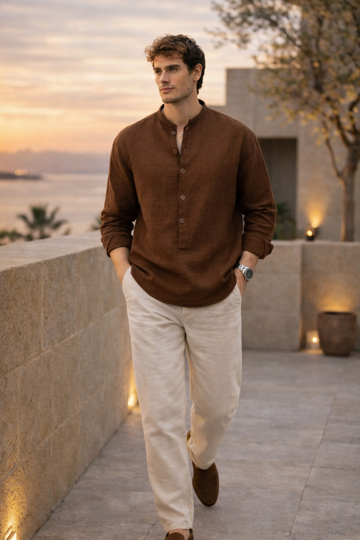 Made of breathable muslin fabric, the shirt stands out with its comfort and lightness throughout the day.
