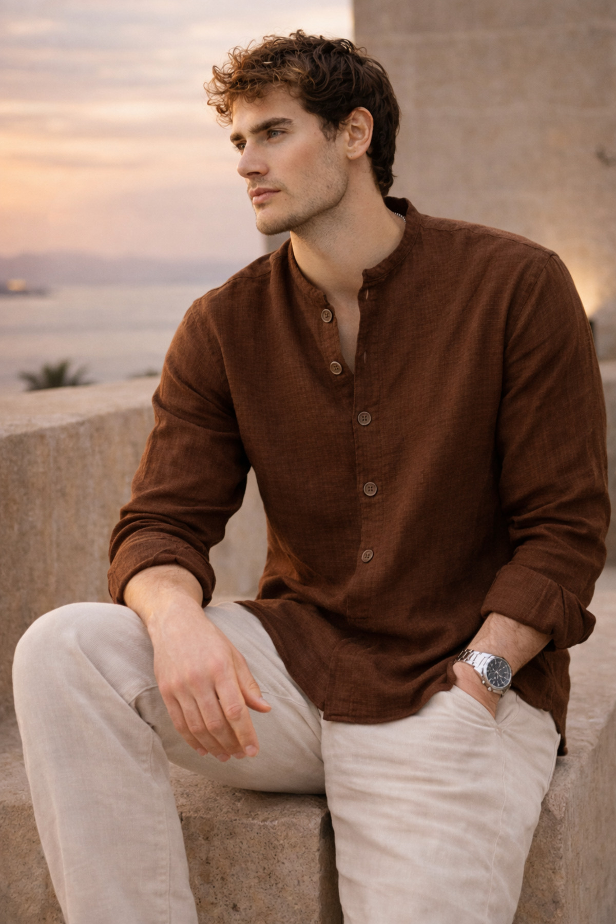 Catch elegance in every moment with the Half Pat Judge Collar Muslin Fabric Shirt, which will be an indispensable part of your wardrobe.