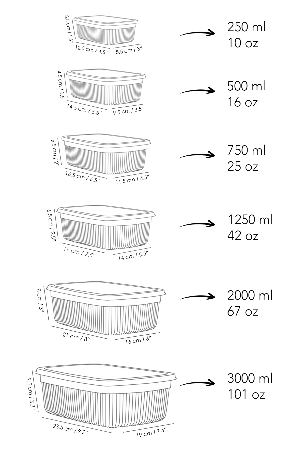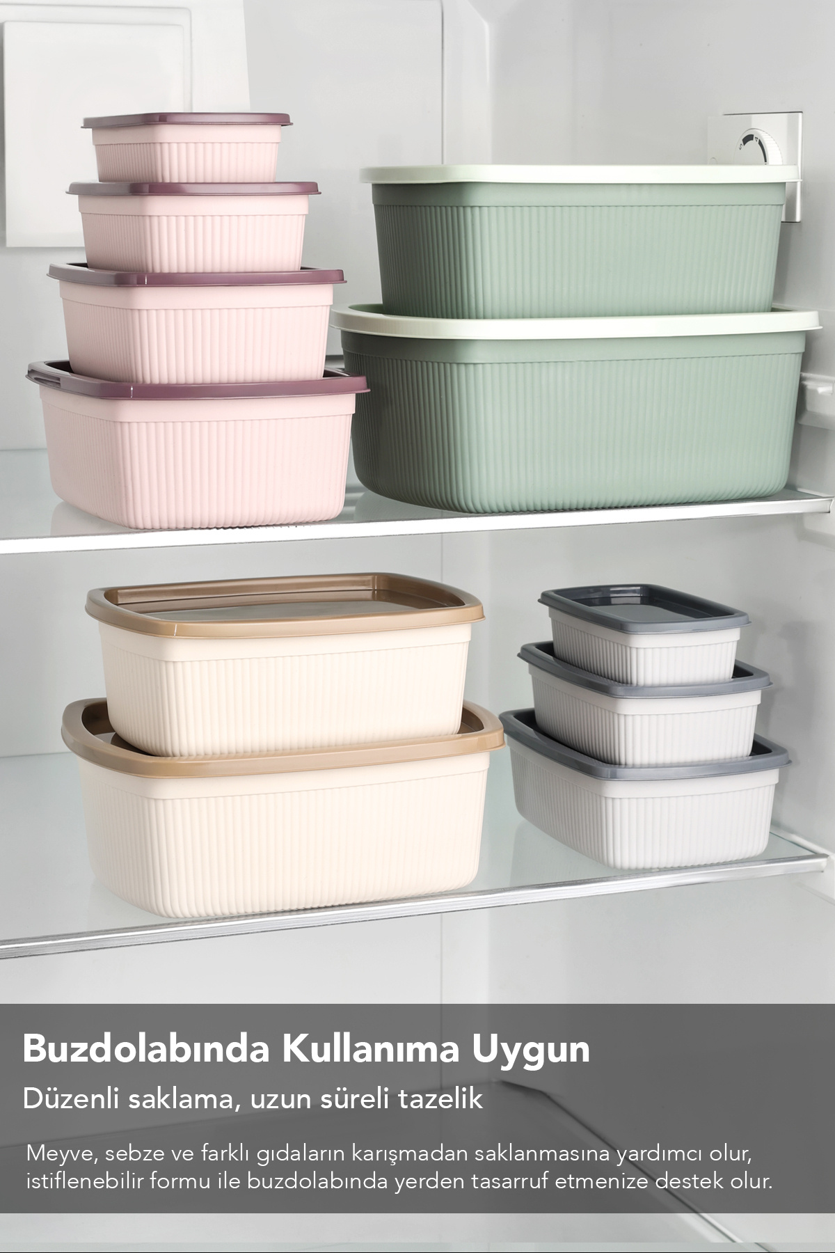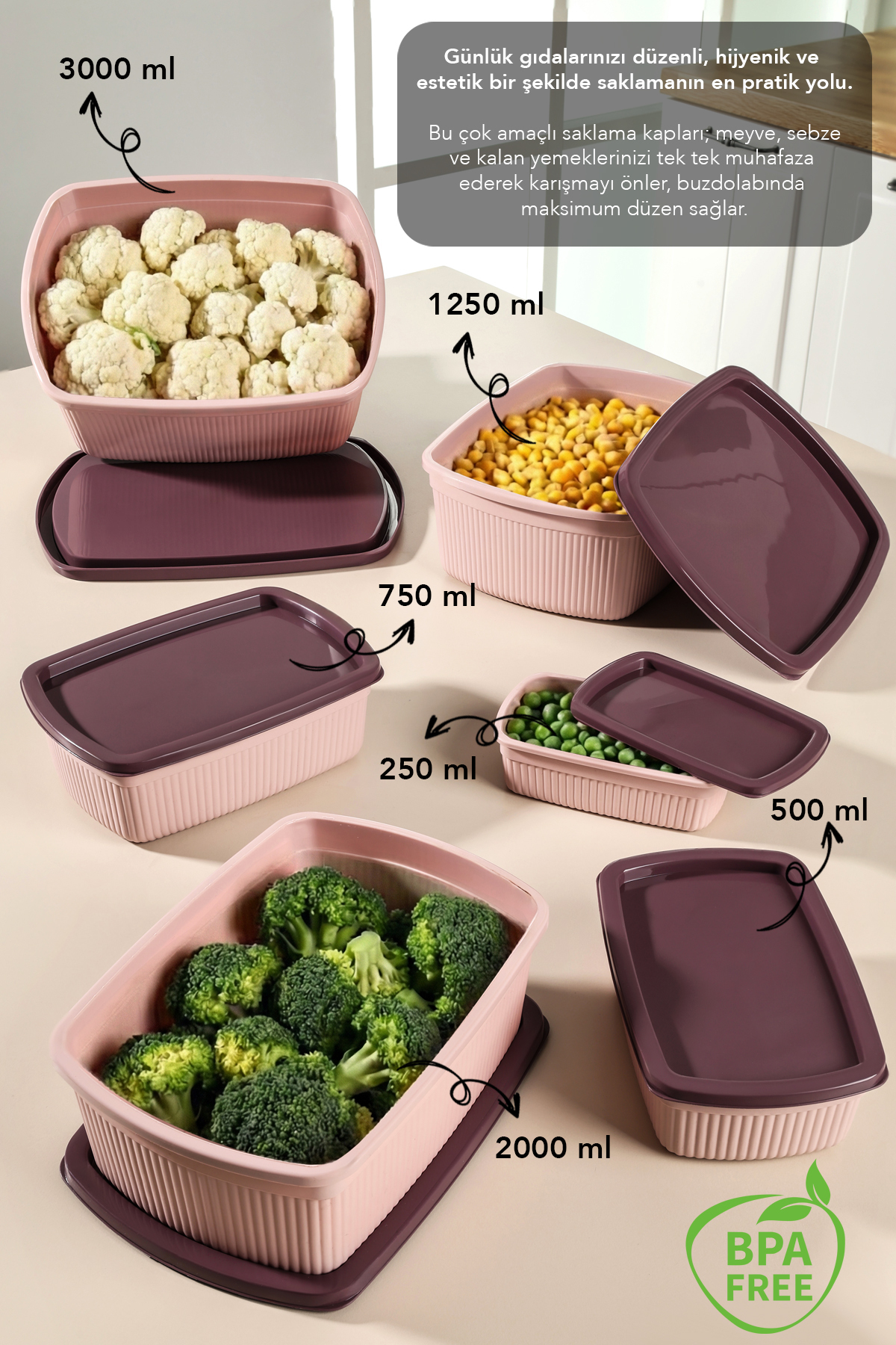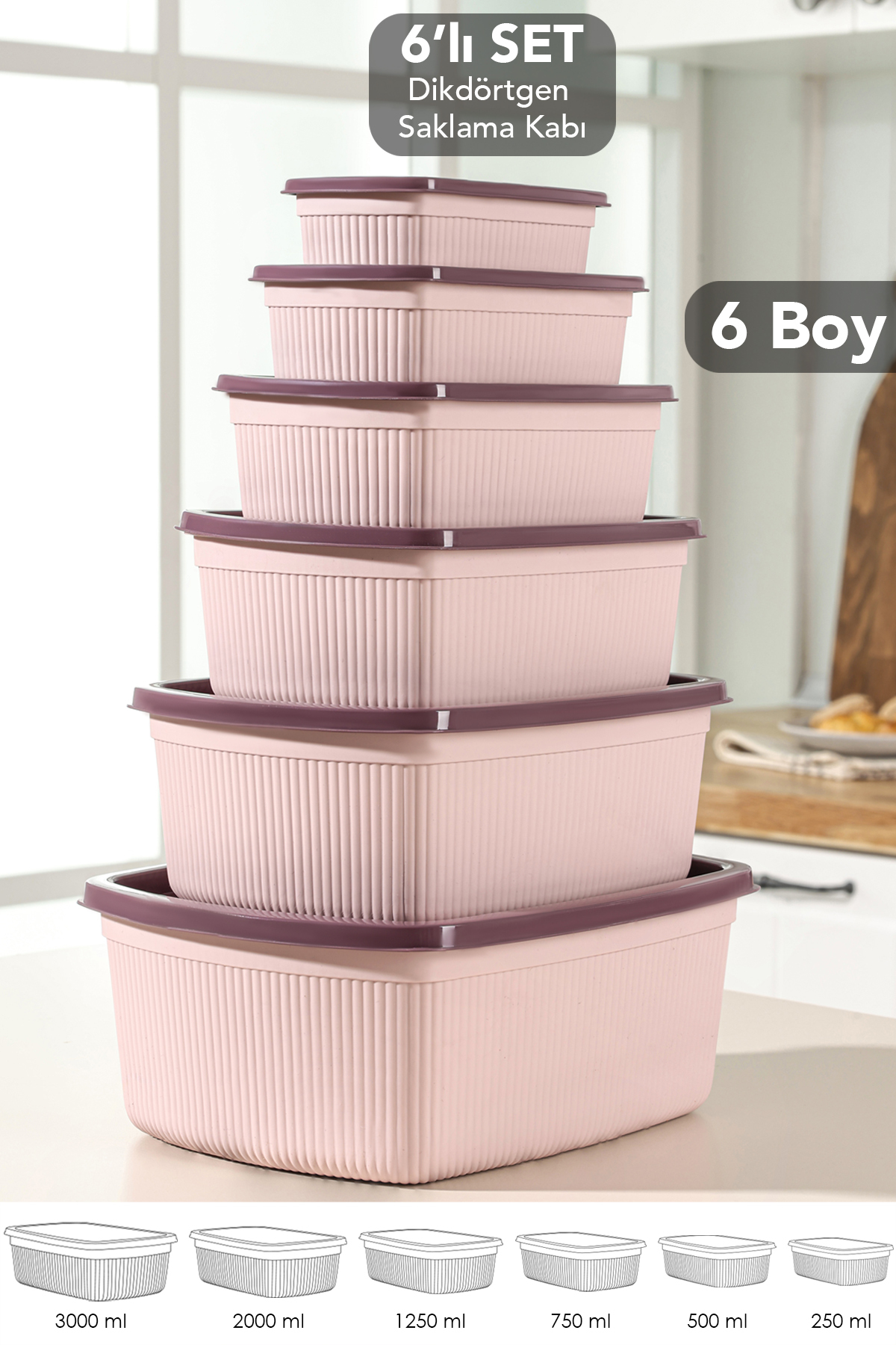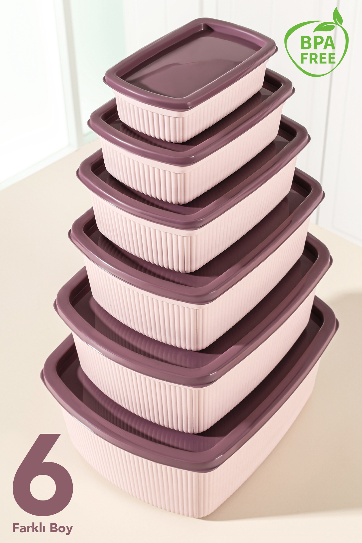 Meleni Home Set of 6 Striped Rectangular Storage Containers - Microwave Friendly 6 Size Organizer Food Container Pink | ByTR