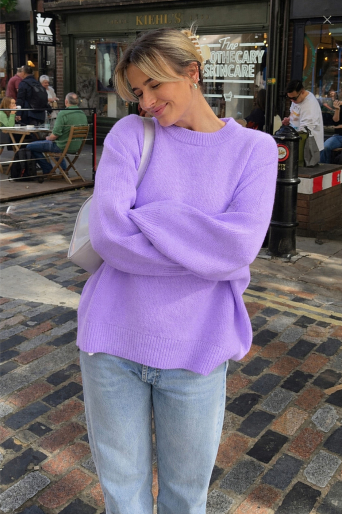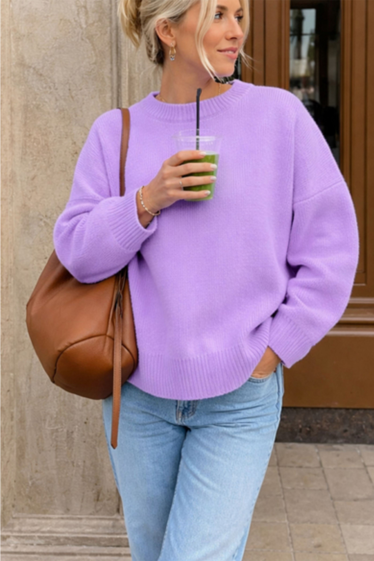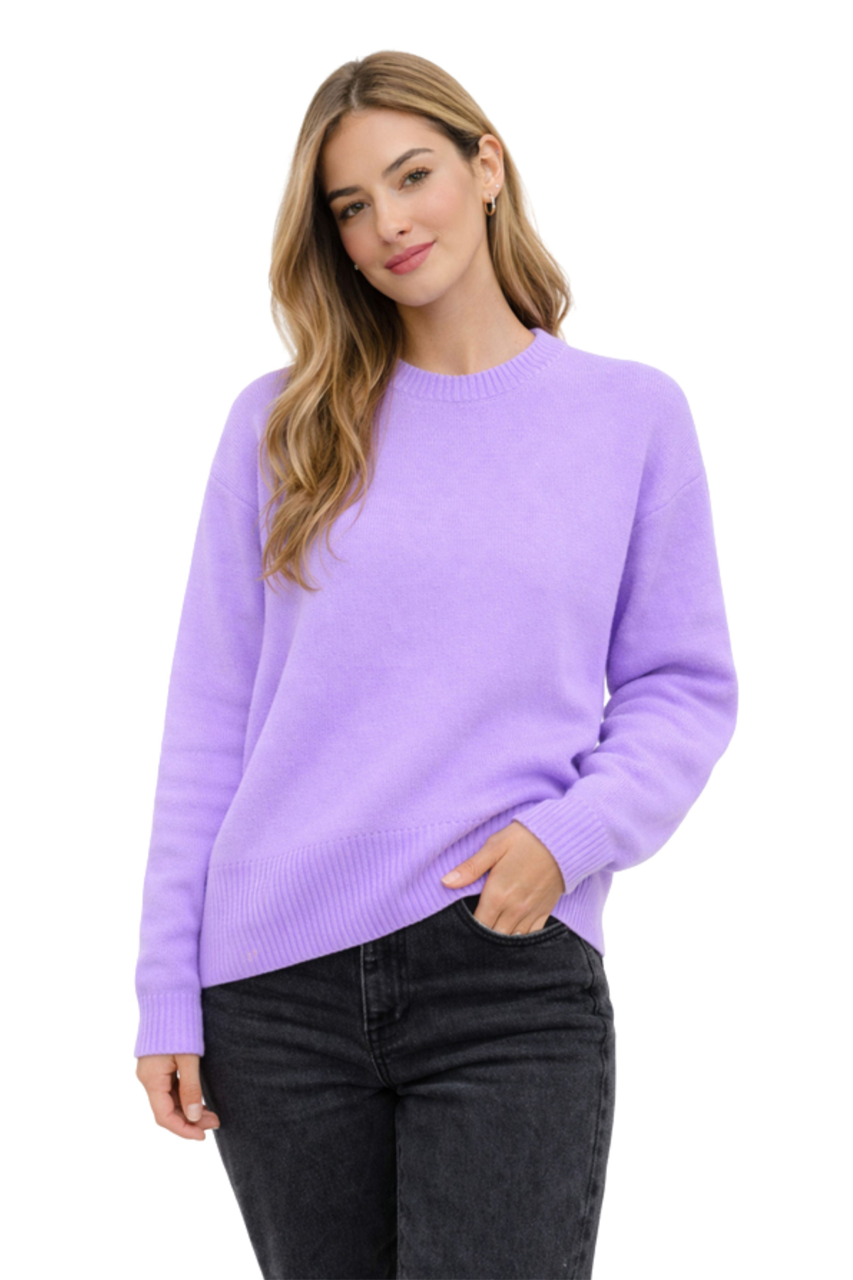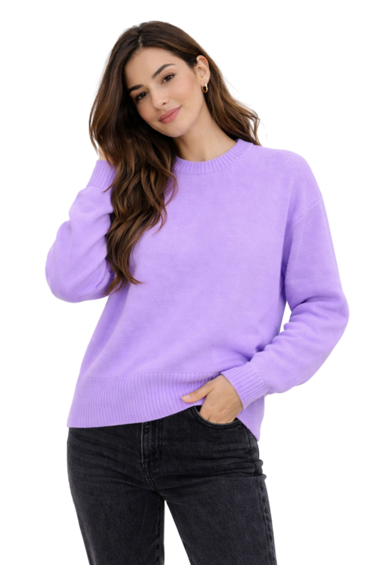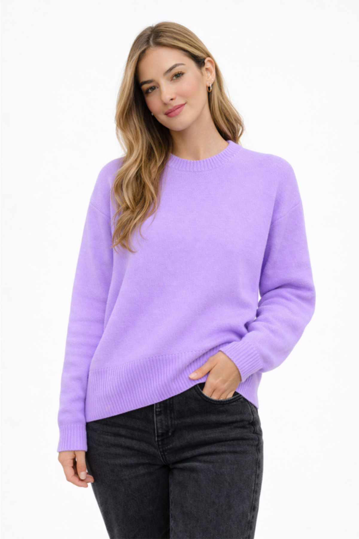 Solid lilac color provides easy combinability and timeless elegance.