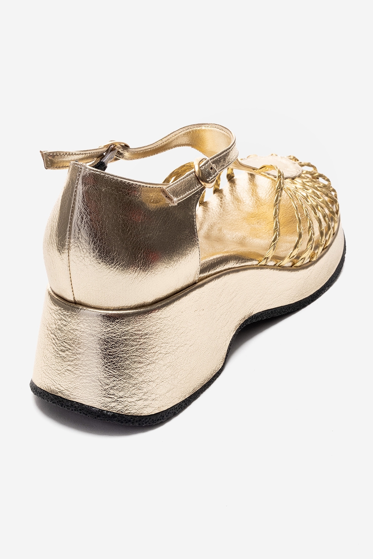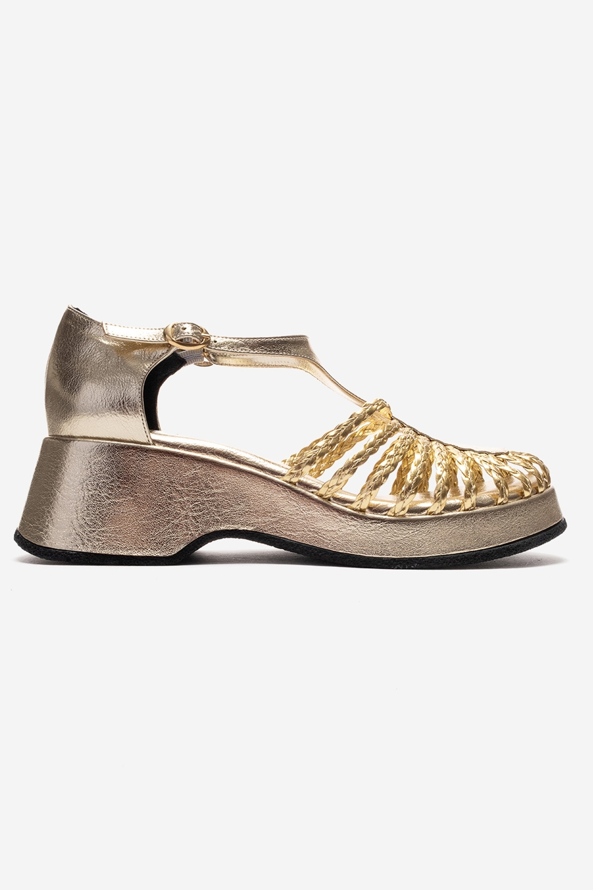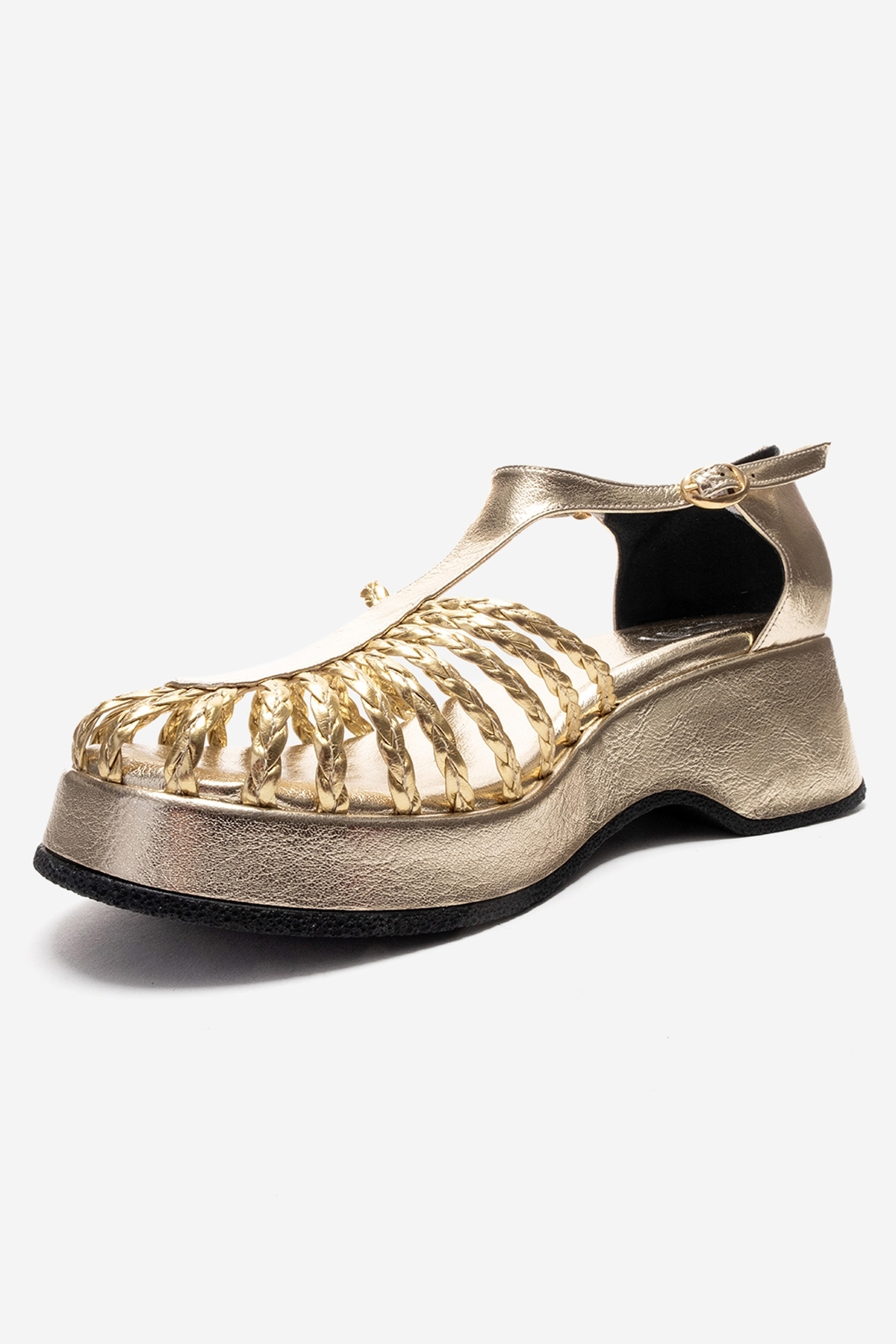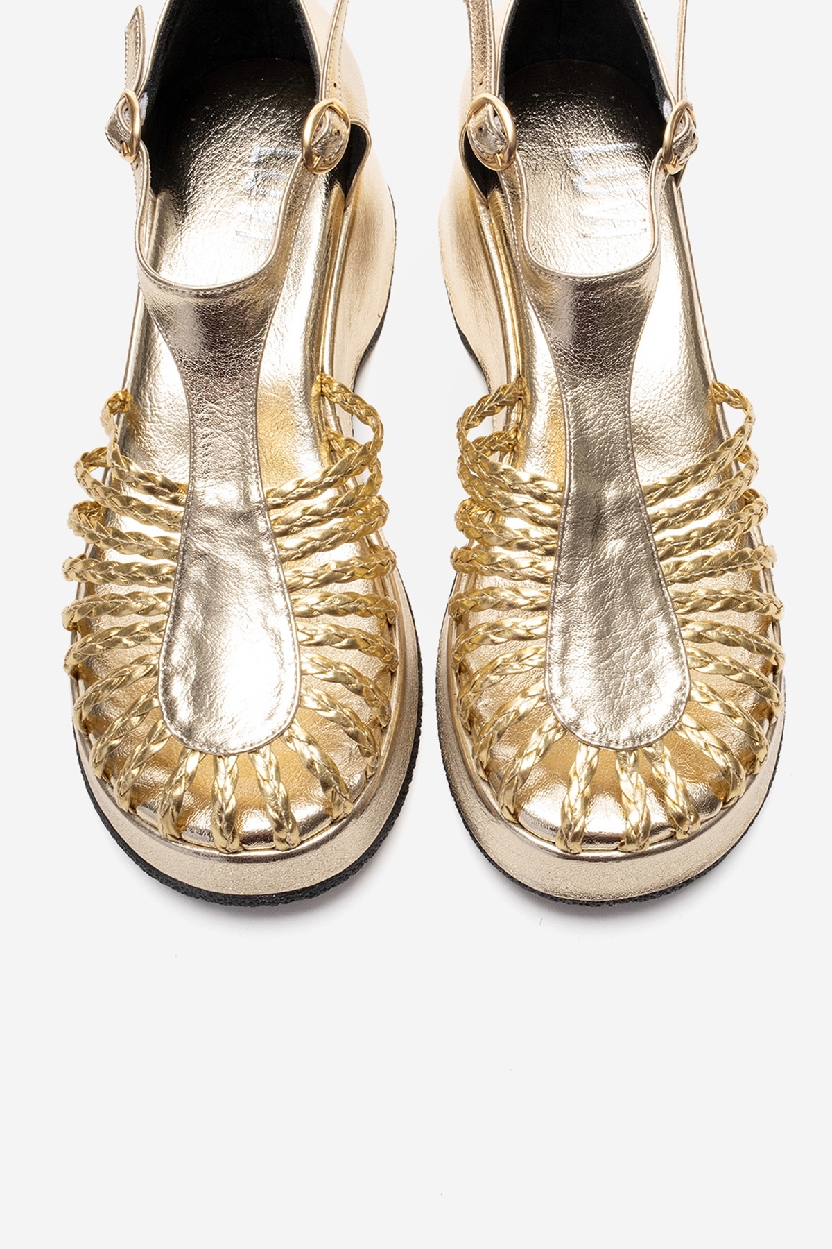LuviShoes BARRY Women's Fill Heel Sandals with Gold Knit Detail | ByTR