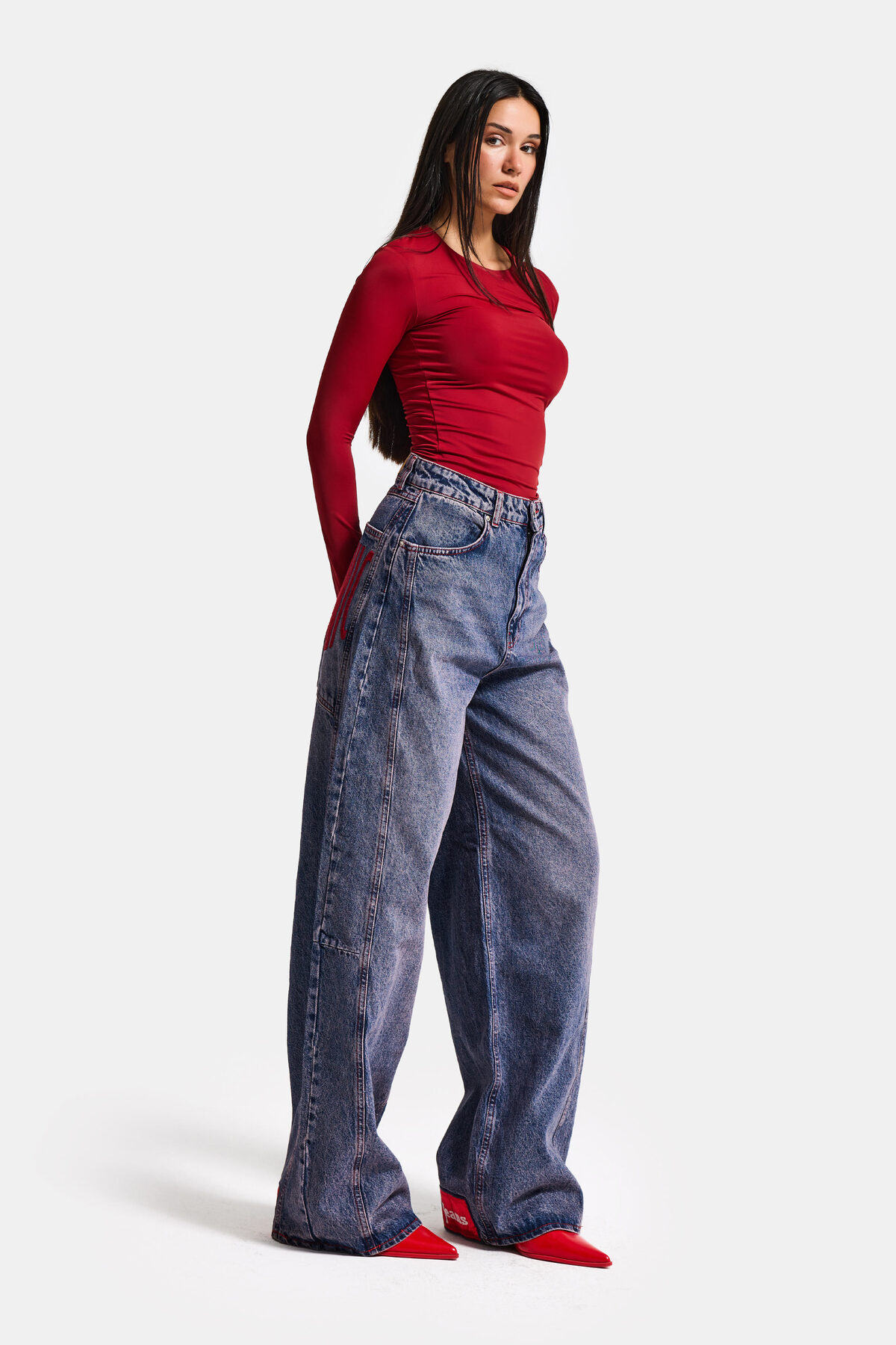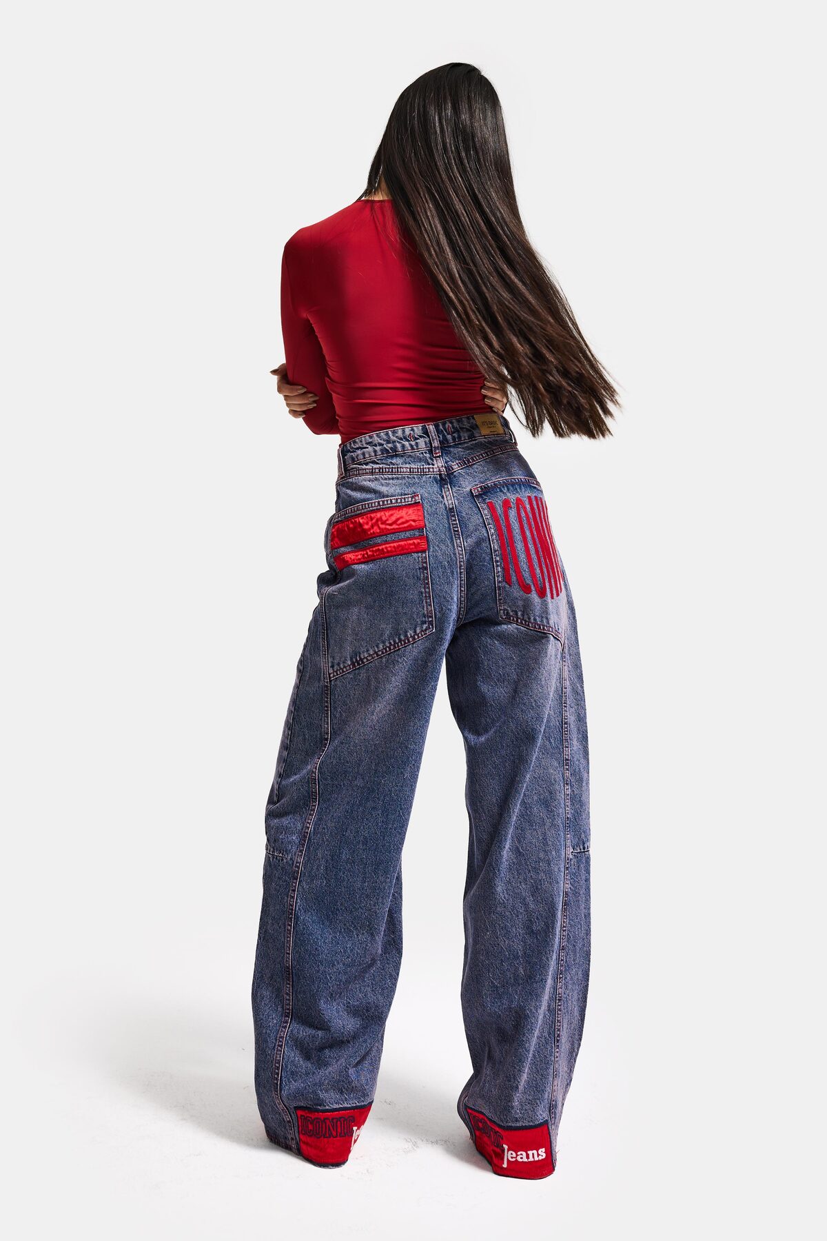 Women's Denim Color 4s6-98 Mega Baggy Fit Leg and Pocket Detail Custom Design Denim Jean