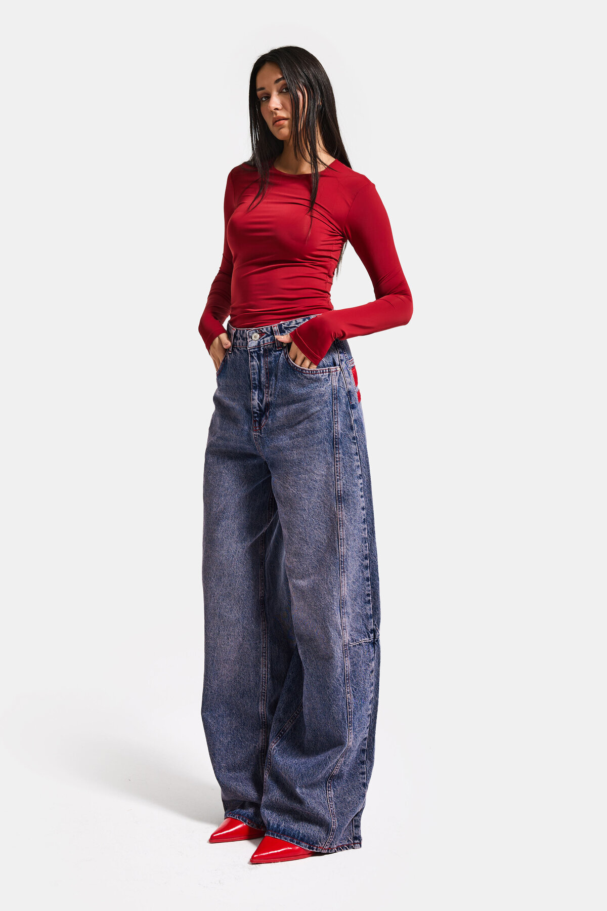 it's basic Women's Denim Color 4s6-98 Mega Baggy Fit Leg and Pocket Detail Custom Design Denim Jean | ByTR