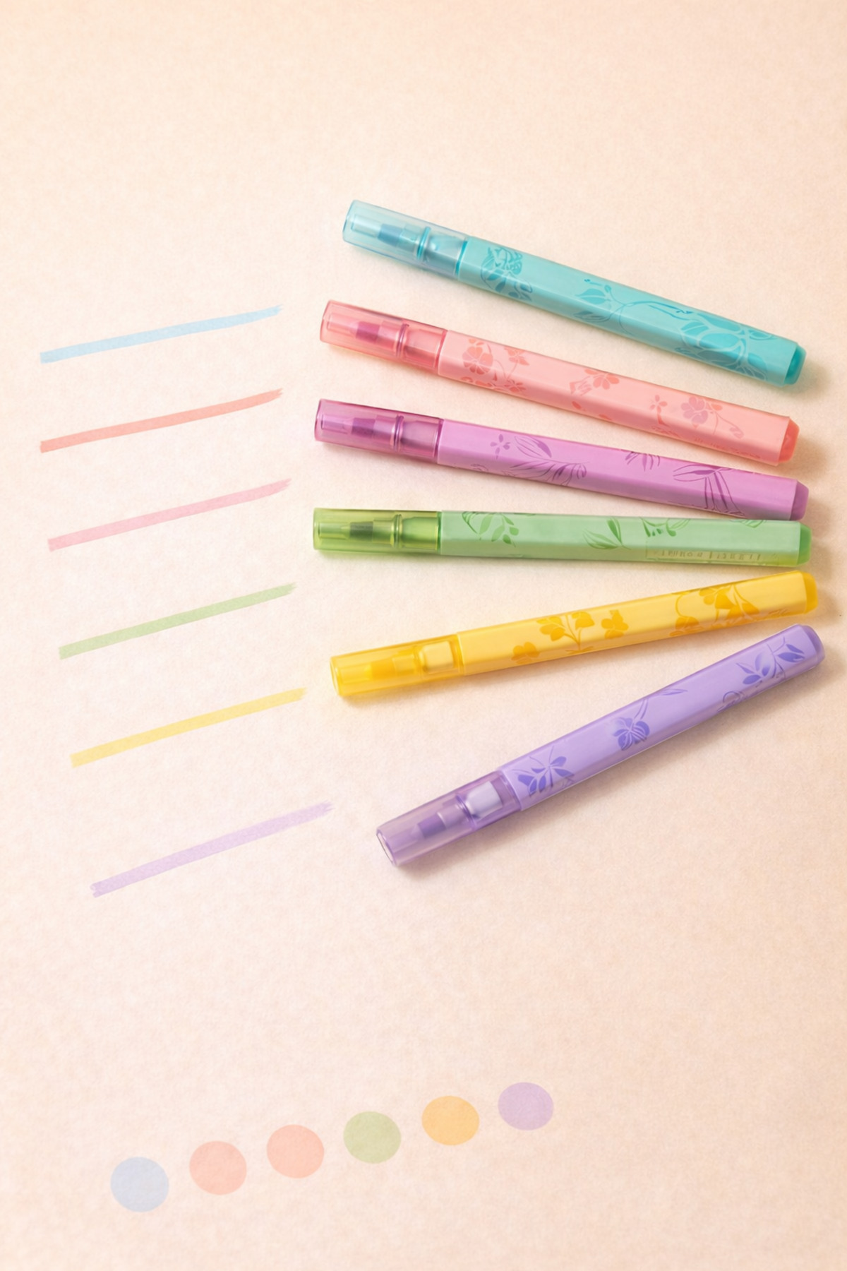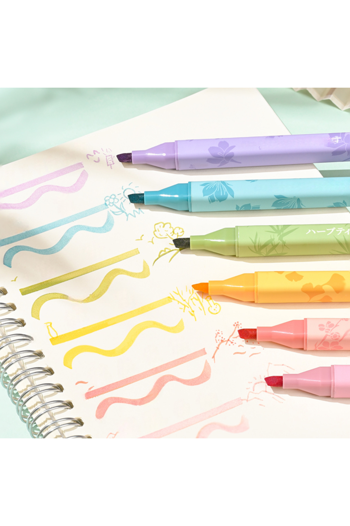 Highlighted Features 6 different pastel colors Fragrant use Soft and flowing tip Does not go behind the page Ideal for books, notebooks and diaries Suitable for daily use and long-term marking It makes a difference with its eye-catching colors and comfortable use in every field from lecture notes to planners.