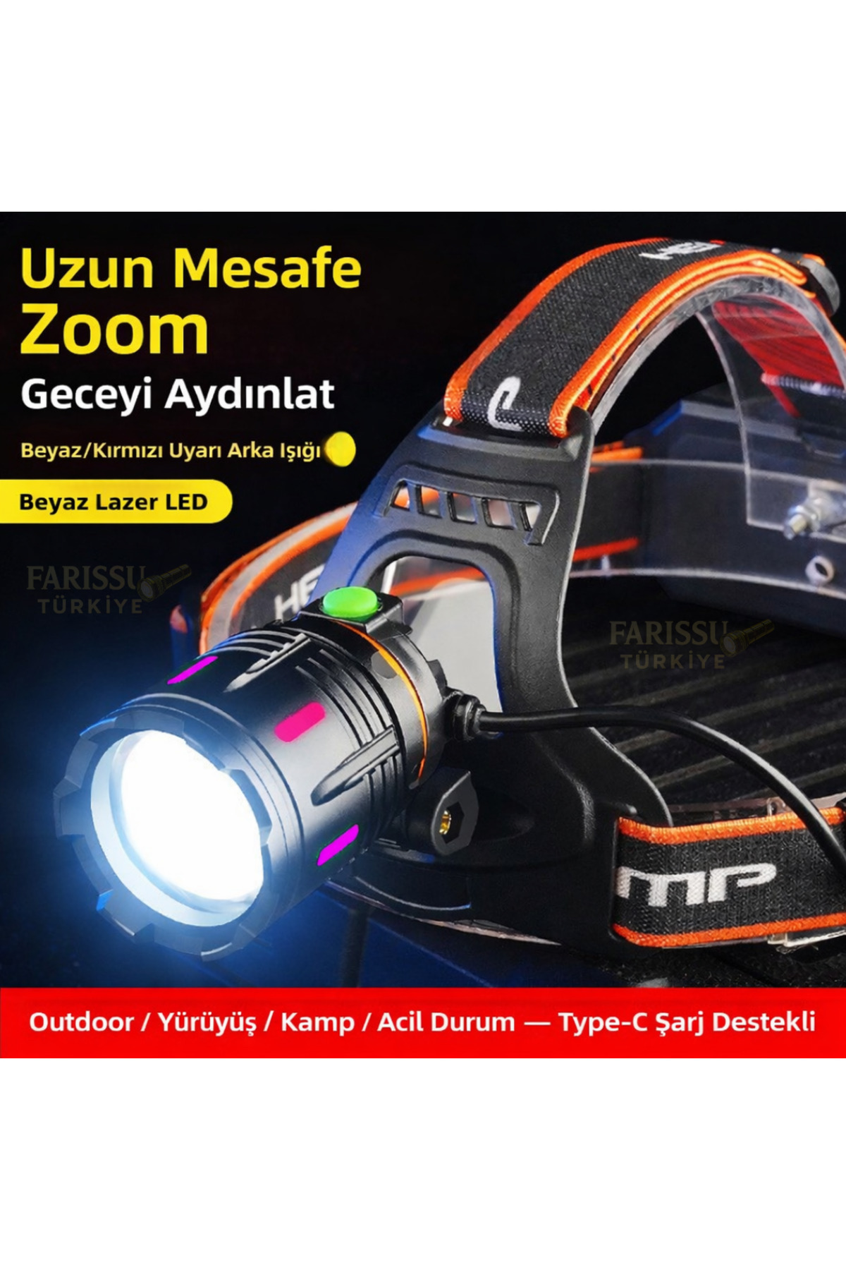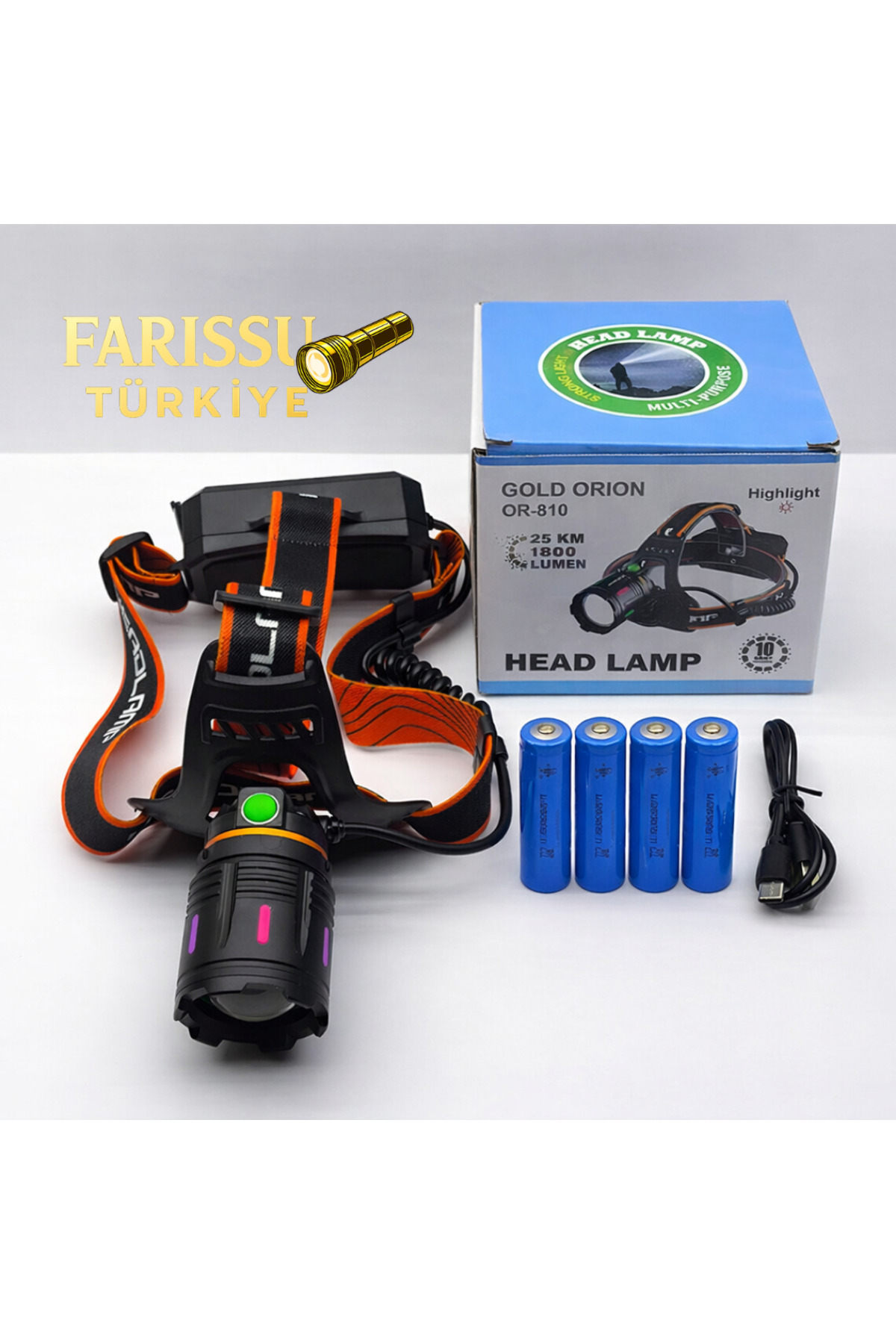 farissu Gold Orion OR-810 25W Rechargeable Head Flashlight | 1800 Lumens | 1 KM Lighting | 4 Replacement 18650 Batteries | ByTR