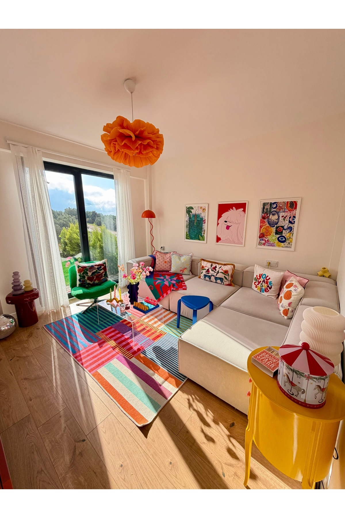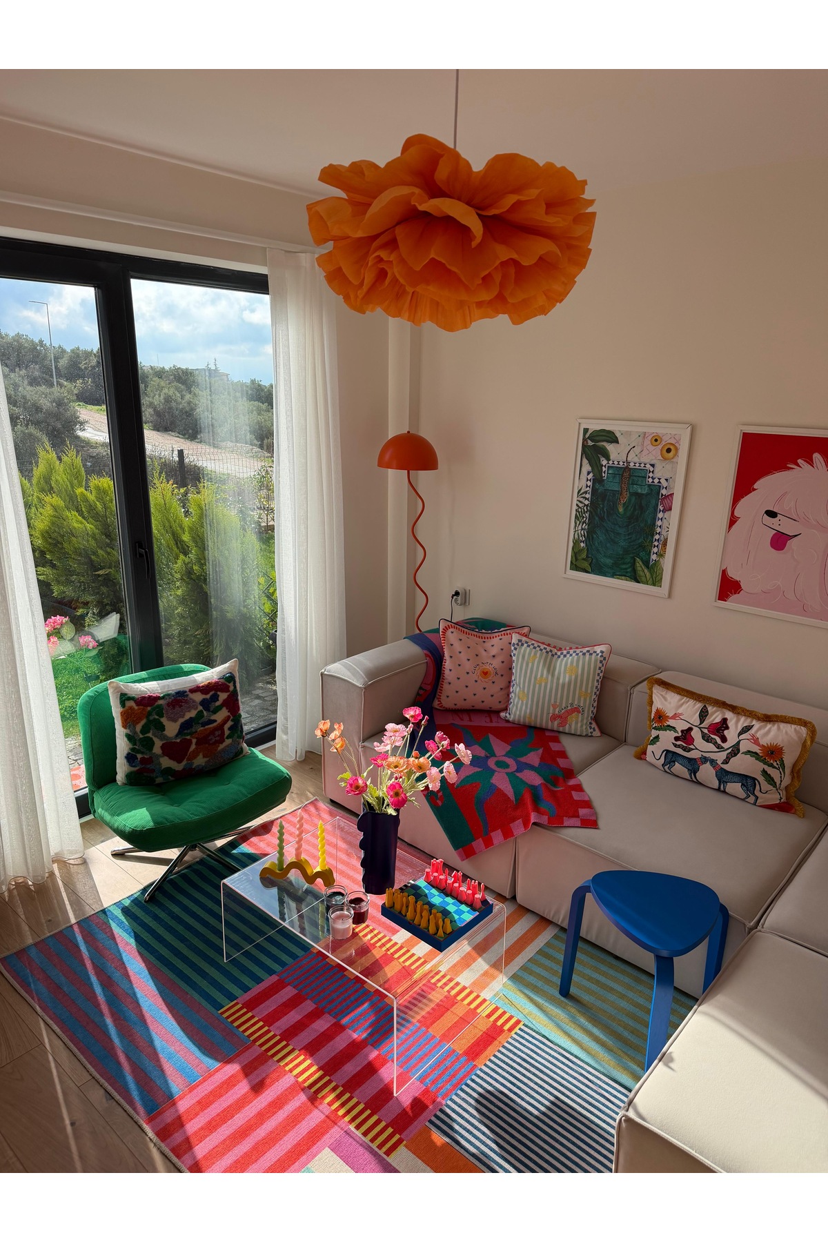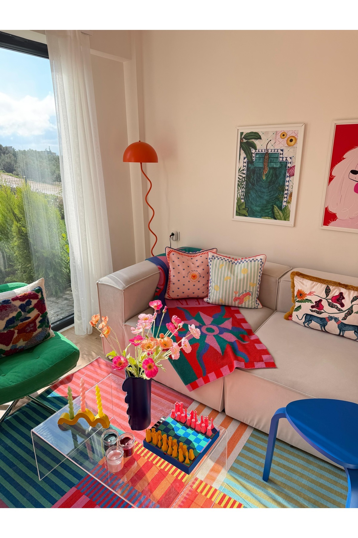 Frida, which provides a stylish look with its velvet fabric and off-white color, adapts to all kinds of decorations.