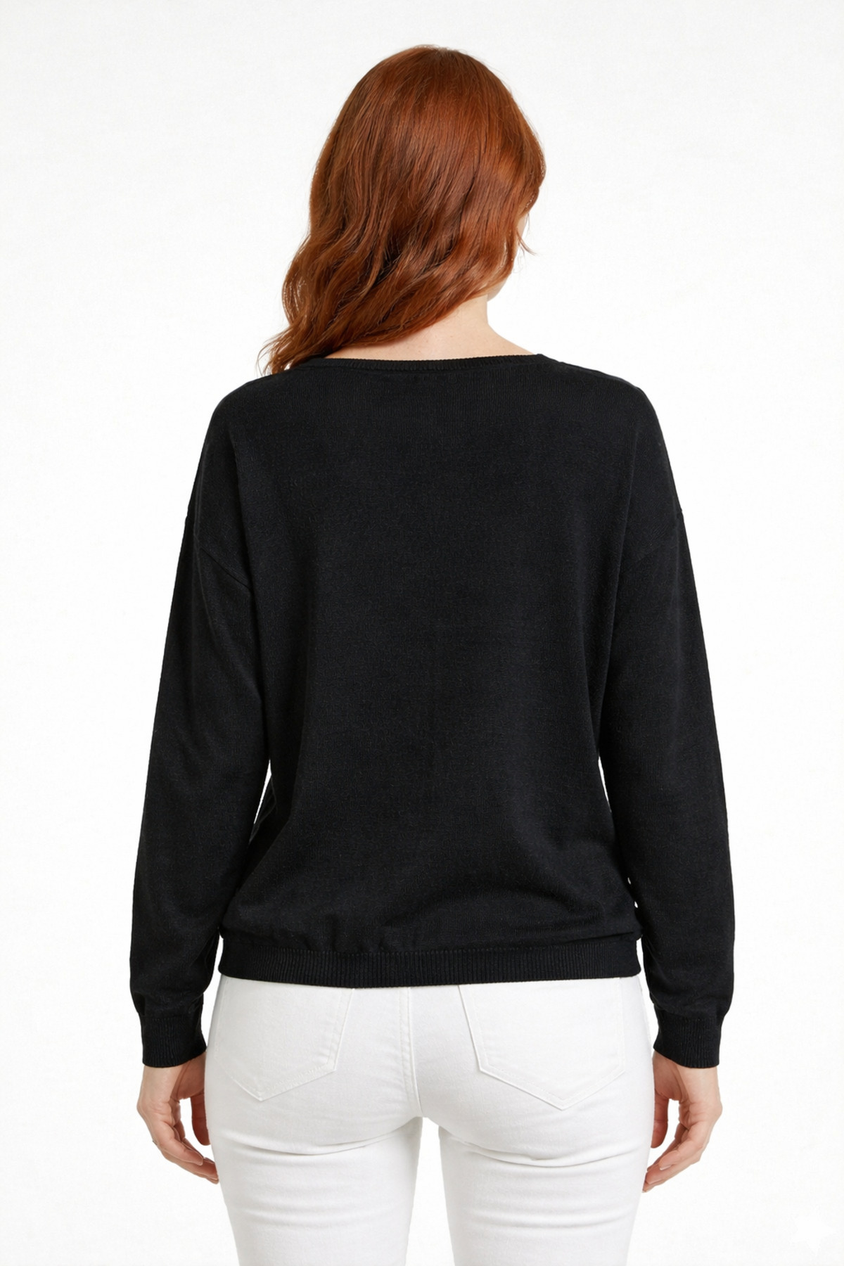 Neden Tekstil Black Crew Neck Skirt Elastic Oversized Sweater | ByTR