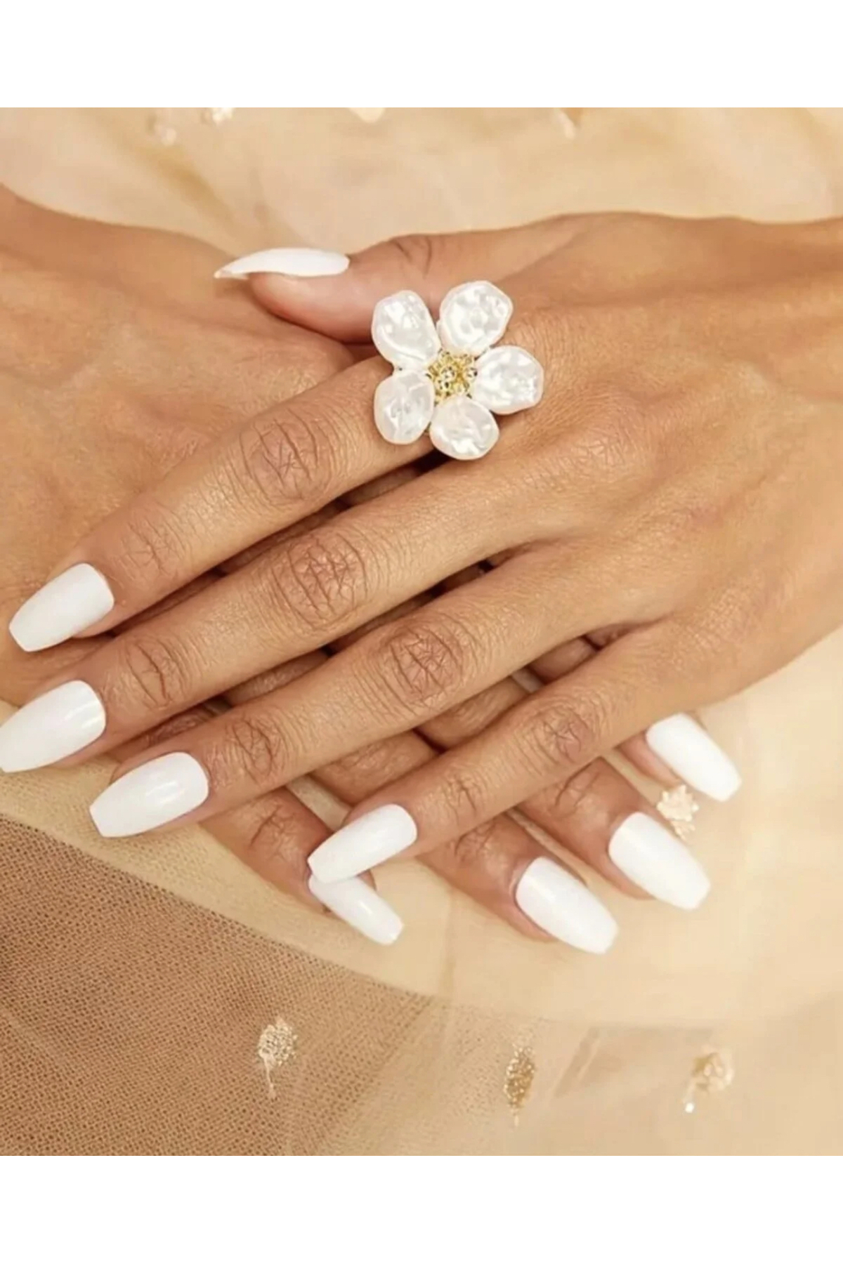 🌸 Product Features • Product Type: Women's Ring • Model: Adjustable Floral Design • Color: Ecru & Gold • Style: Elegant, modern, stylish • Usage Area: Daily use, invitation, special day, gift