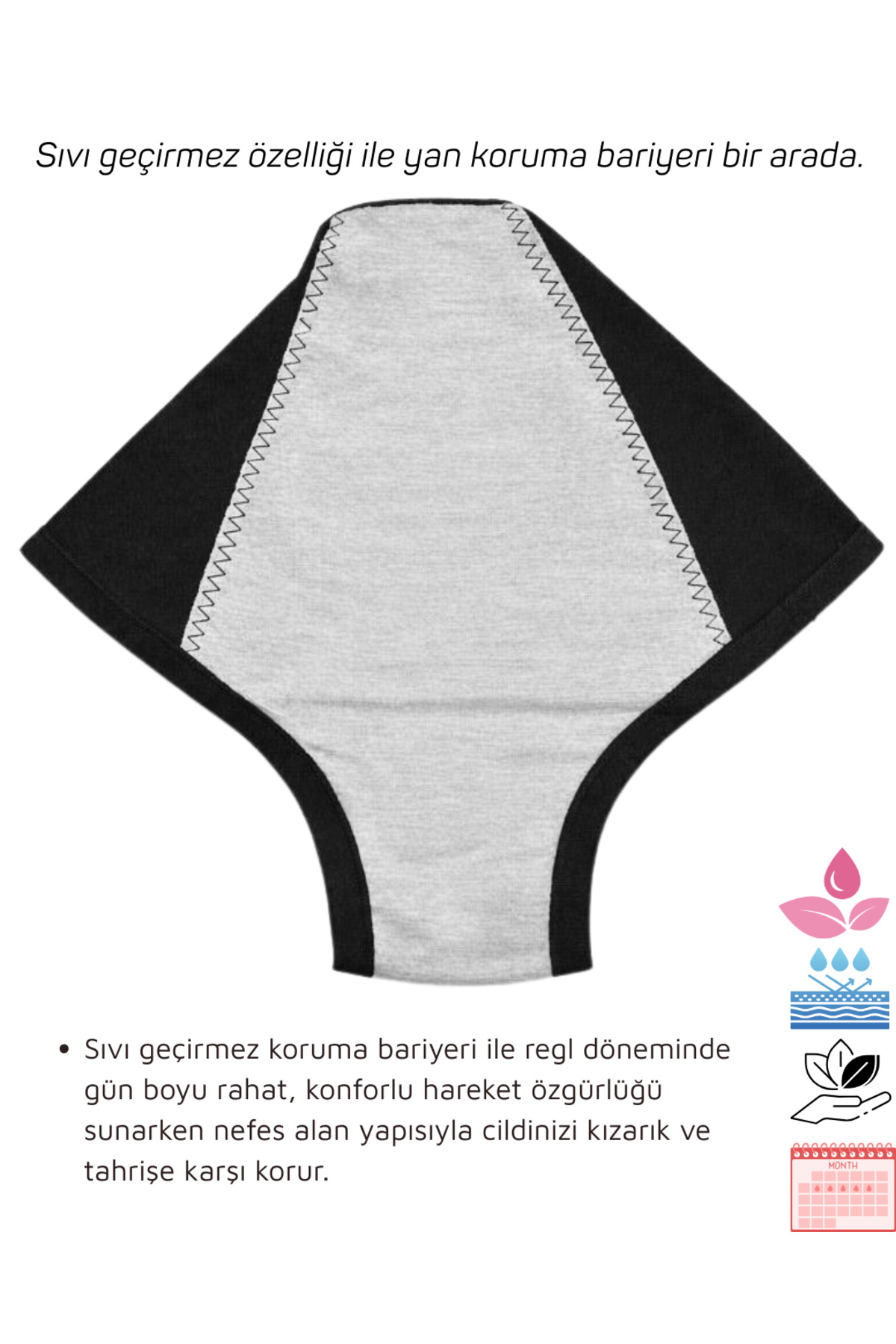 With its leak-protected structure, it provides extra safety during menstruation.