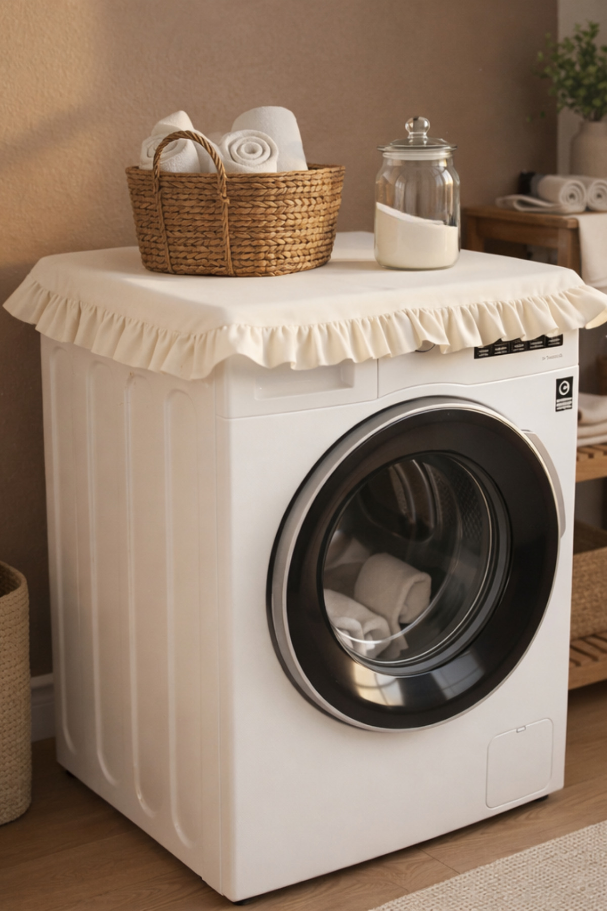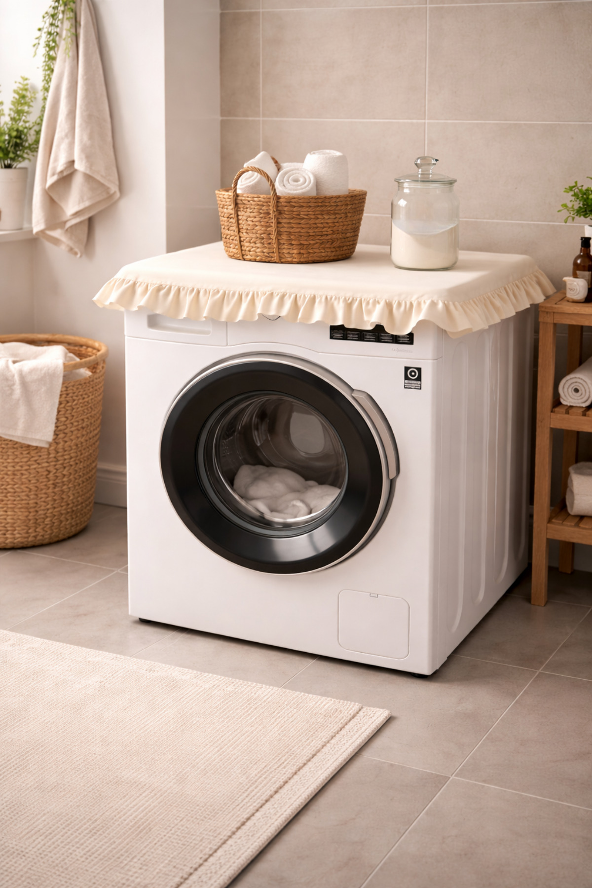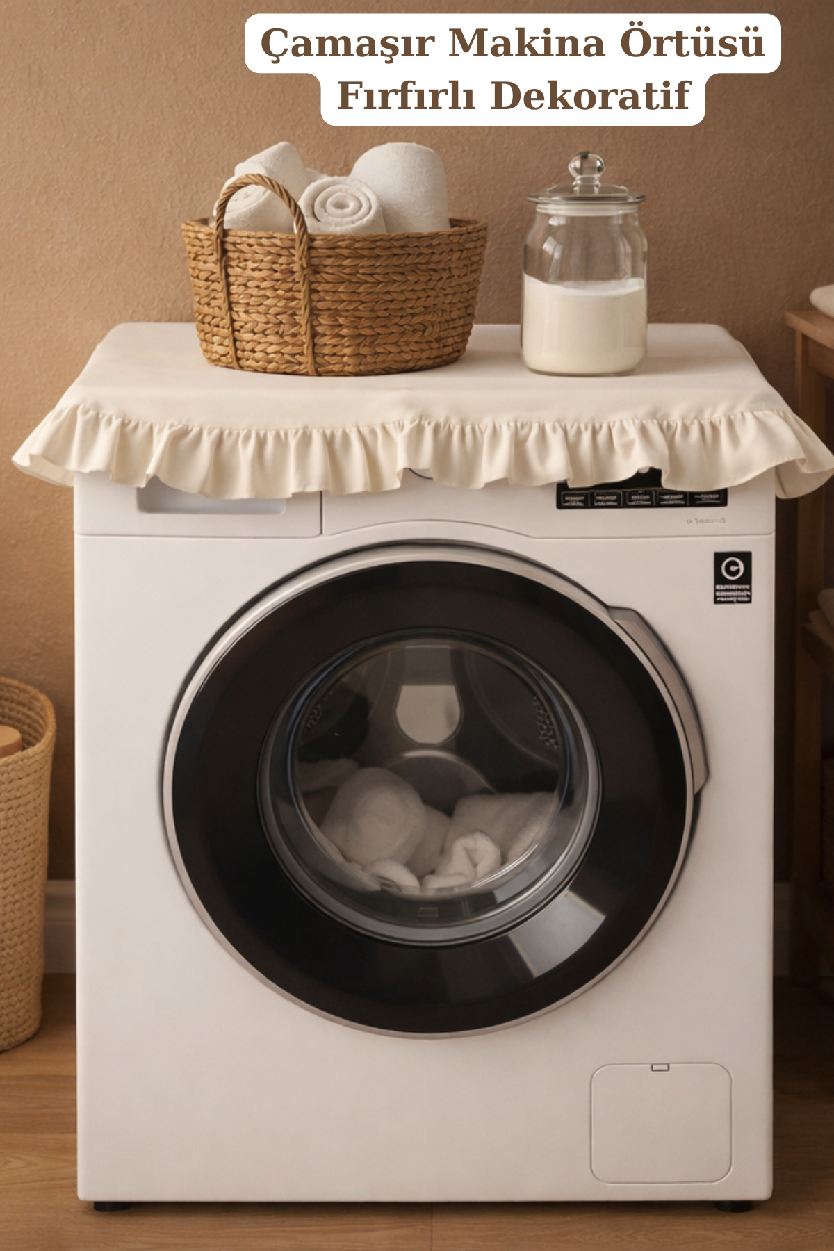 Morlay Vintage Ruffle Washing Machine Cover - Dowry Cotton Decorative Bathroom Machine Cover | ByTR