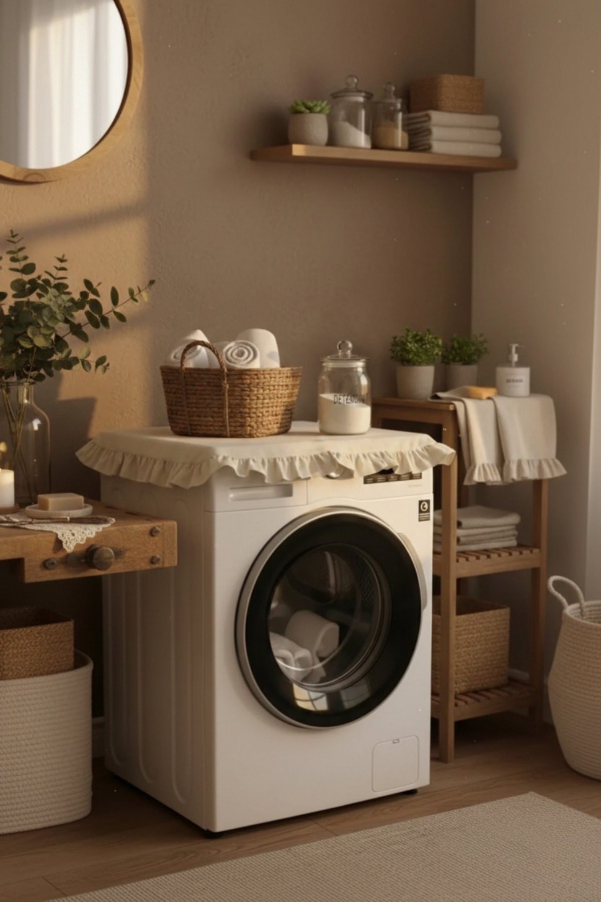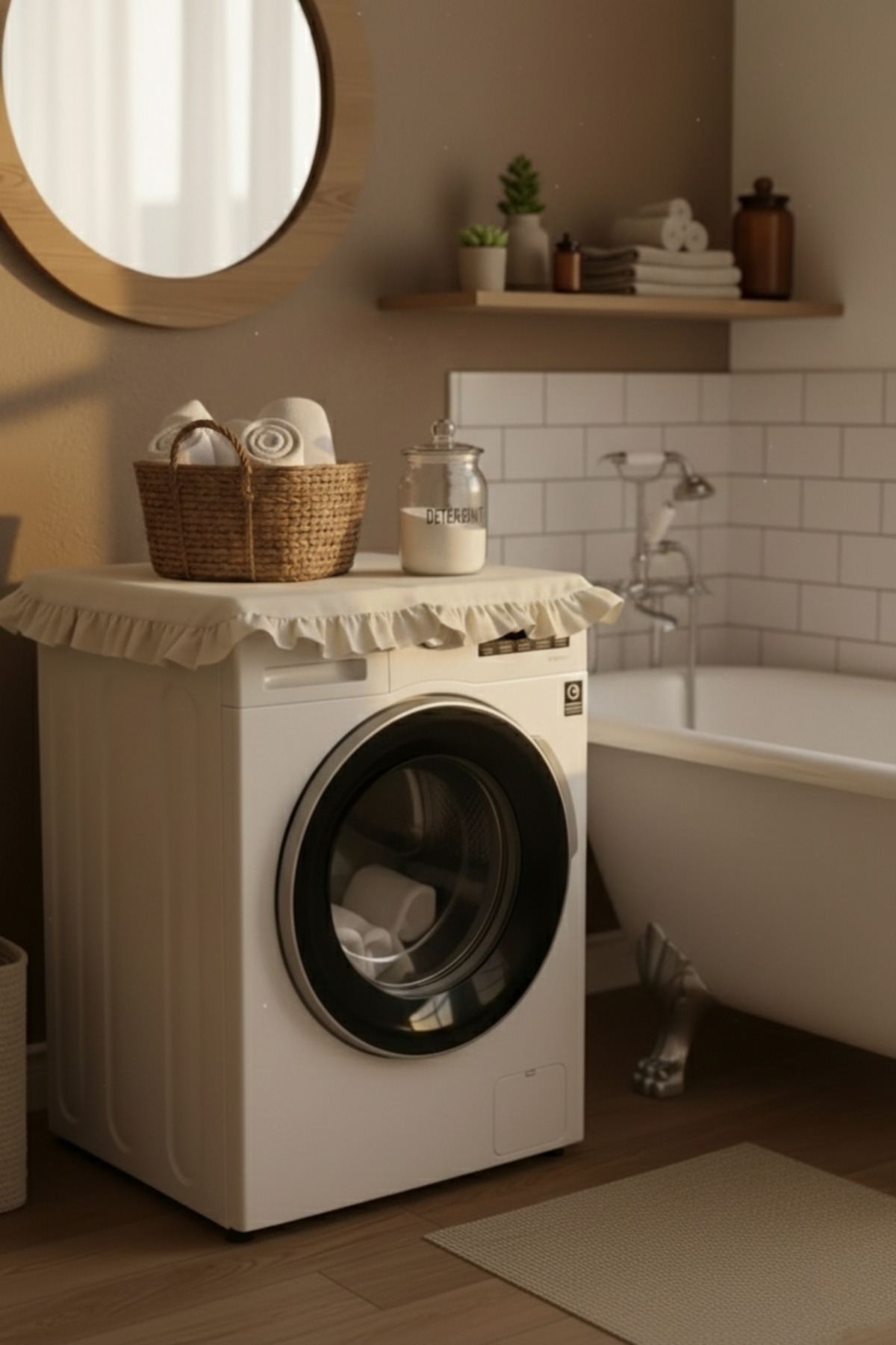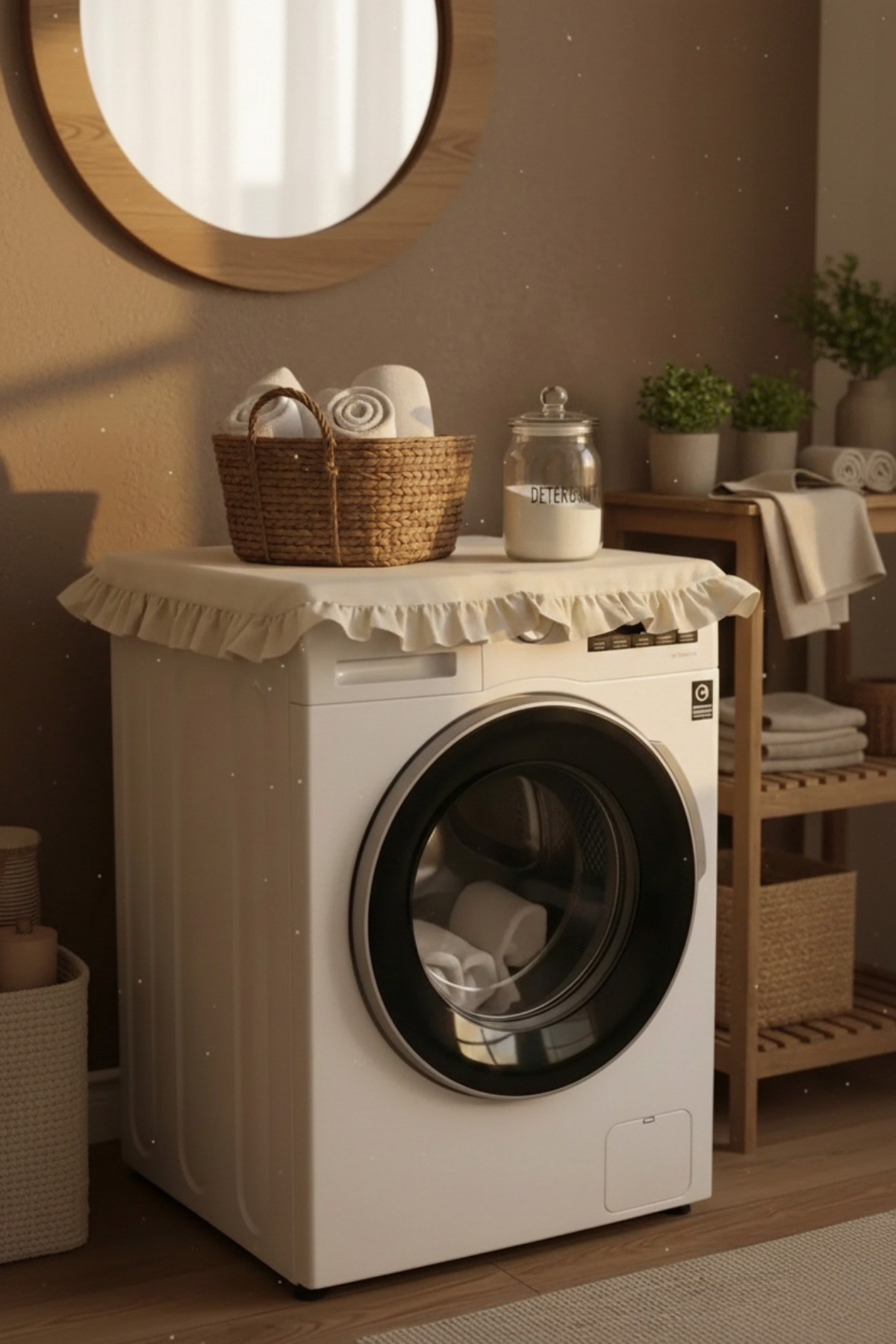 Morlay Vintage Ruffle Washing Machine Cover - Dowry Cotton Decorative Bathroom Machine Cover | ByTR