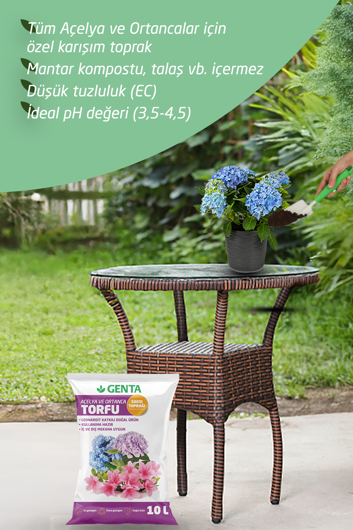 Enjoy growing flowers with 100 percent natural, azalea and hydrangea peat prepared by Genta for the healthy growth of your azaleas and hydrangeas.